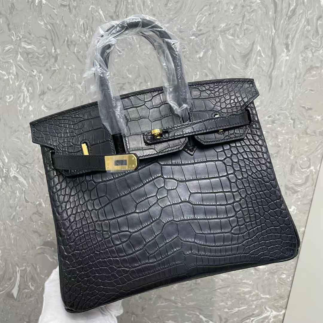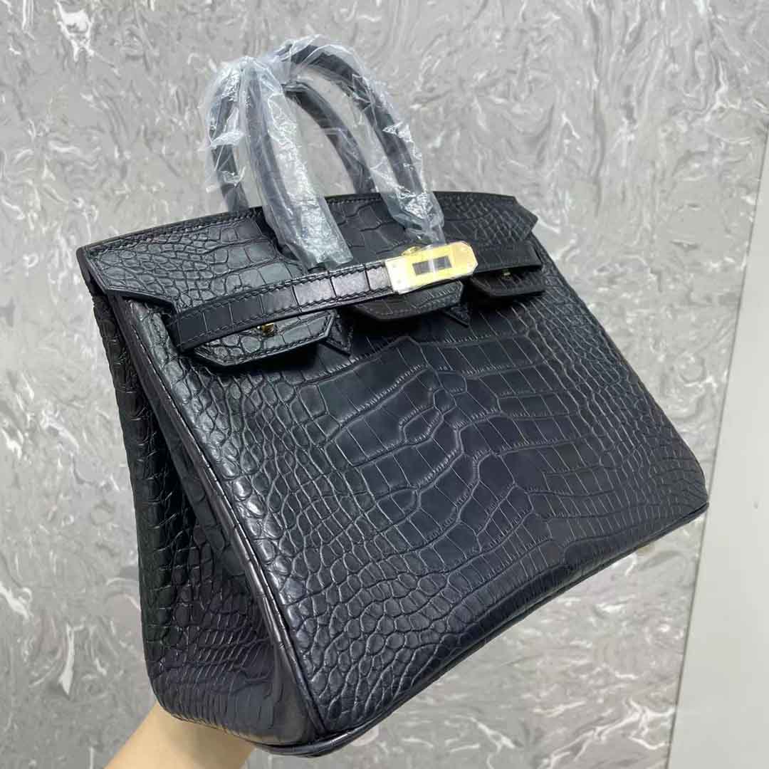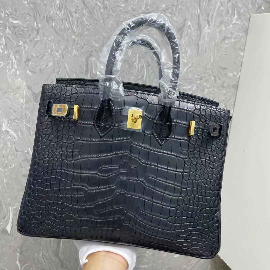 黑色美洲鳄鱼皮女士手提包定做工厂