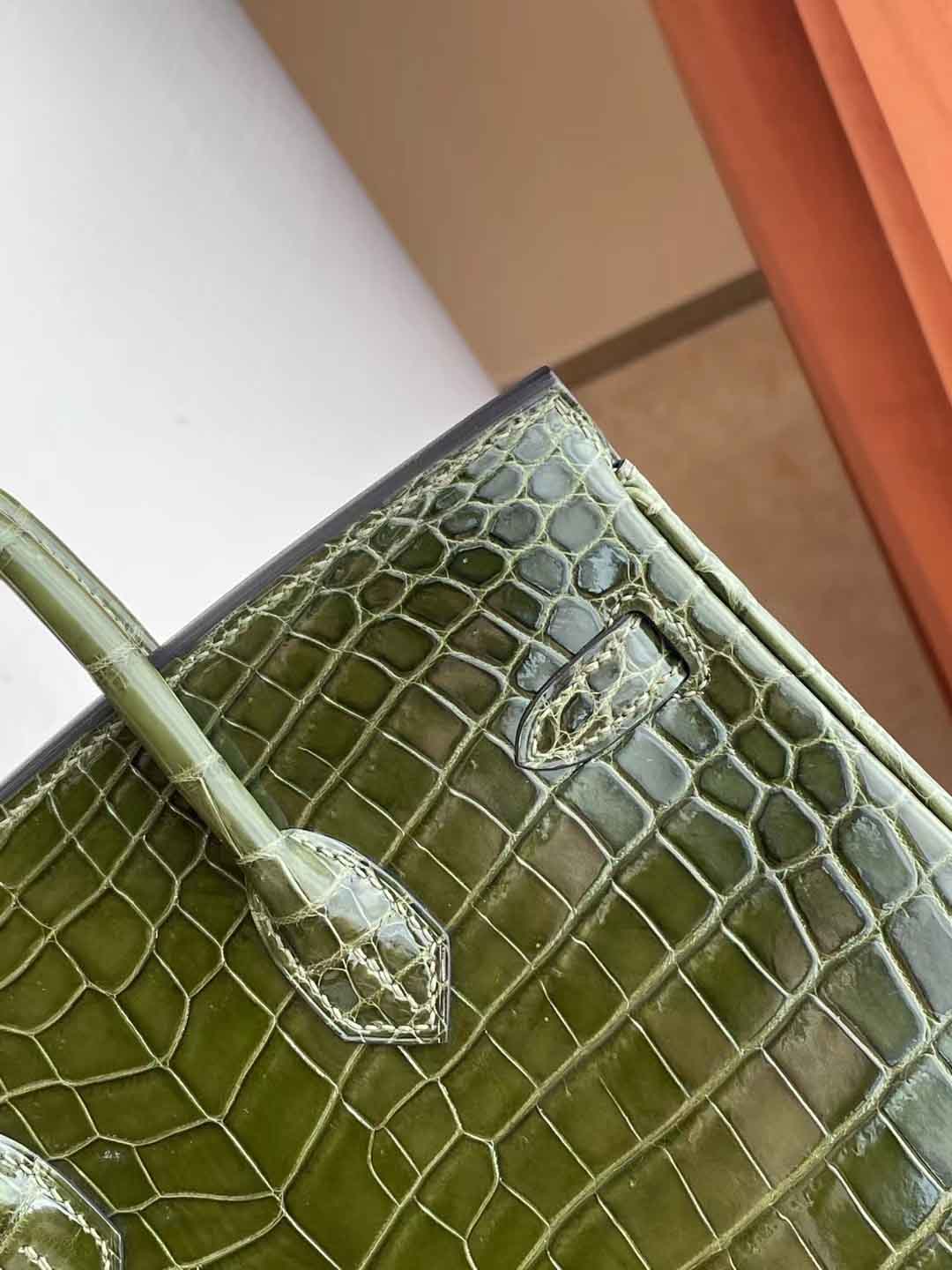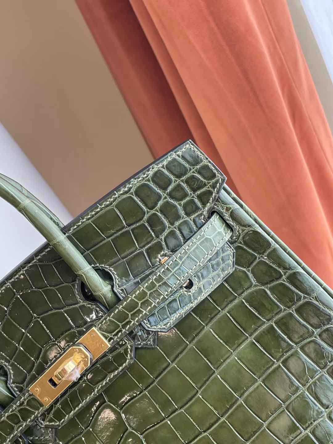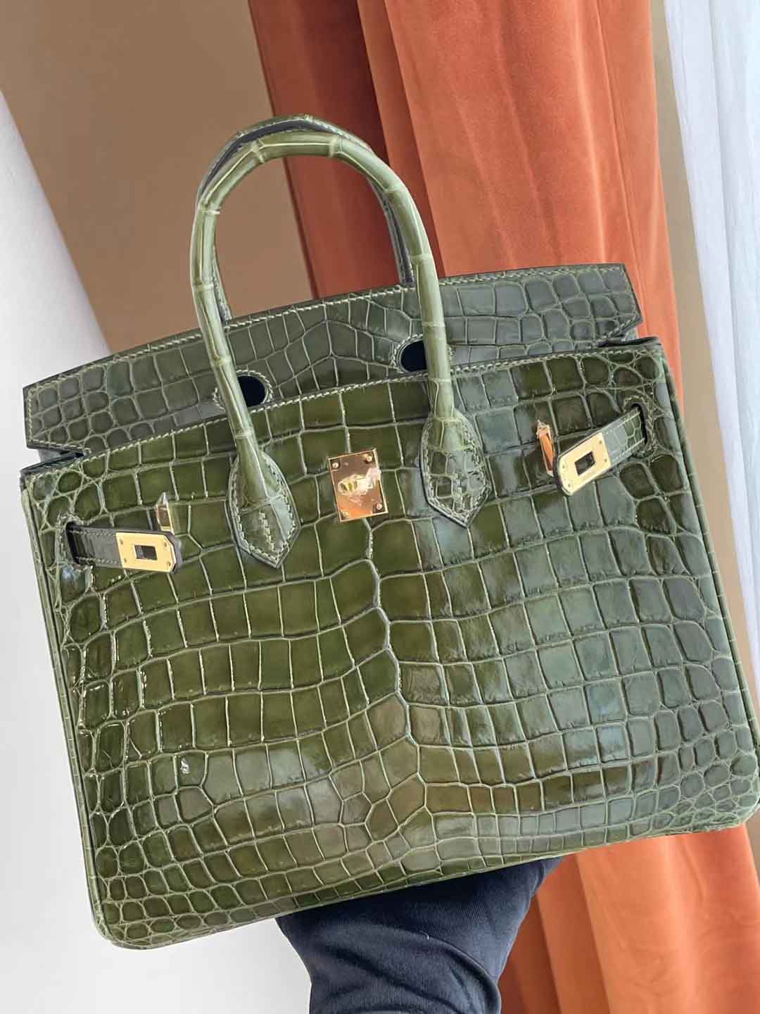 BK 橄榄绿 25cm 金扣 亮面尼罗鳄