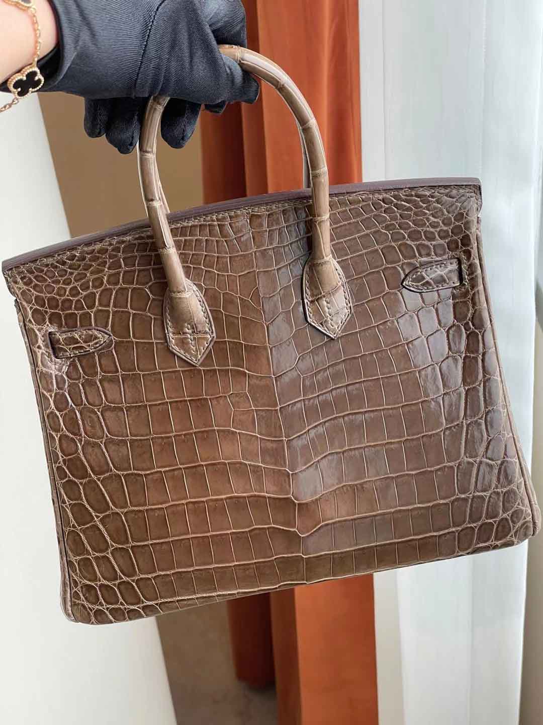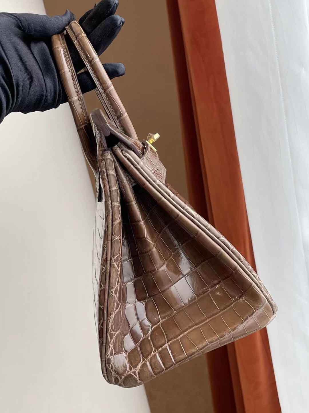 Bk25 深灰色 金扣 亮面尼罗鳄 纯手工蜡线 现货一只 in stock...
