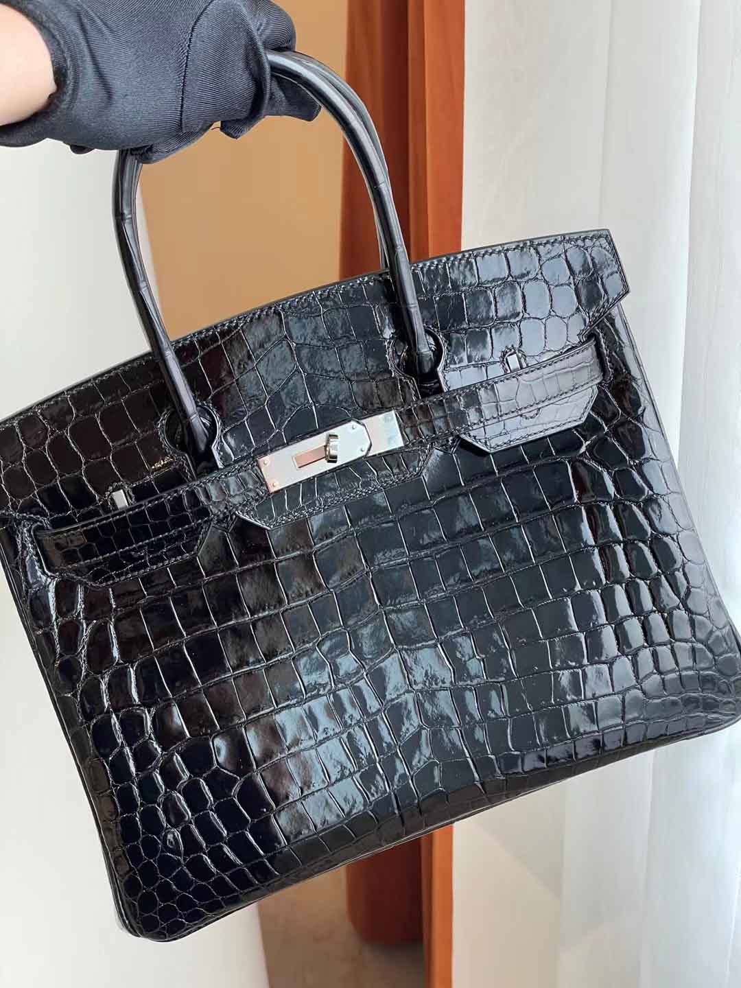 BK 89 黑色 Noir 30cm 尼罗鳄 银扣