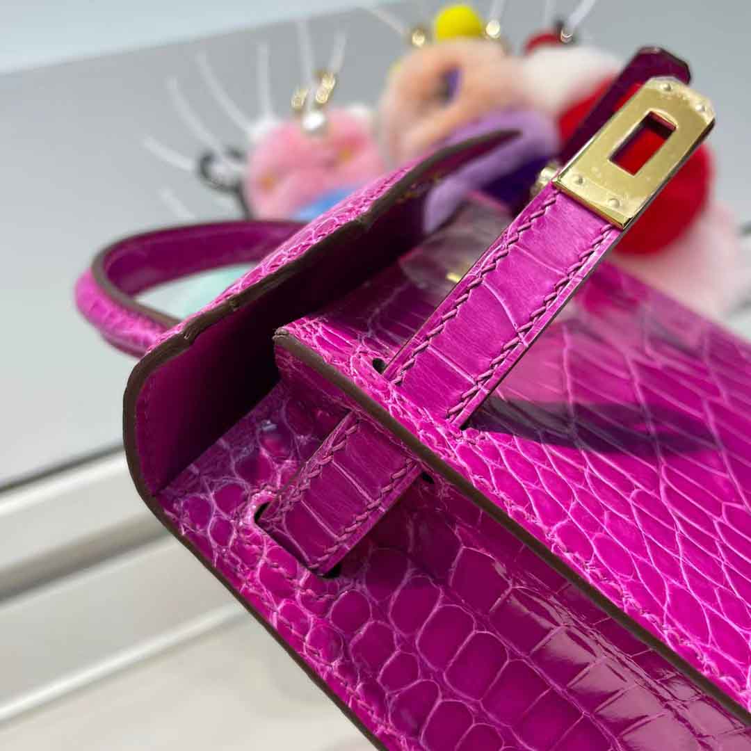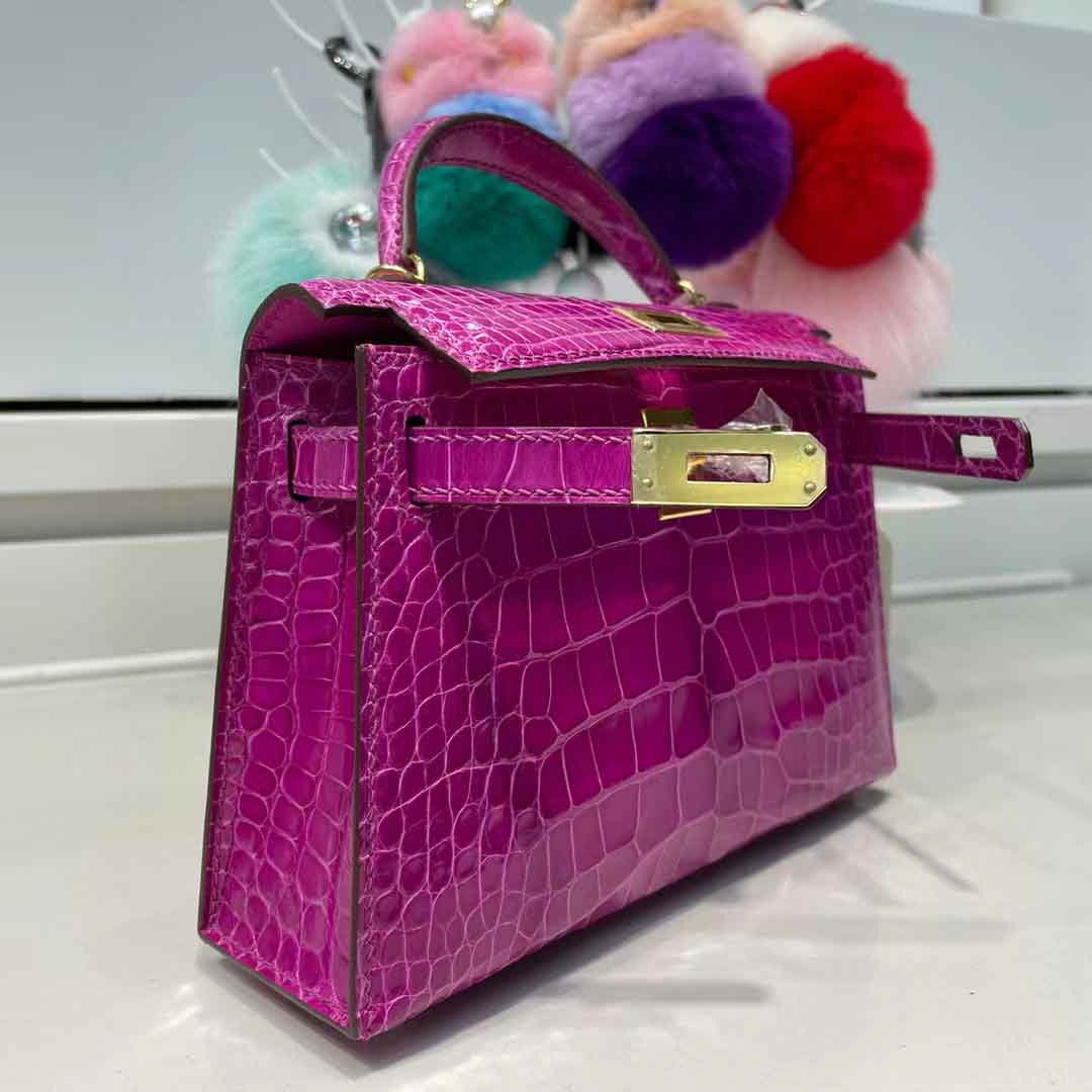 玫红色和斑鸠灰高光鳄鱼皮女士晚宴包订做工厂,奢侈品私人定做工作室 微信 95506803