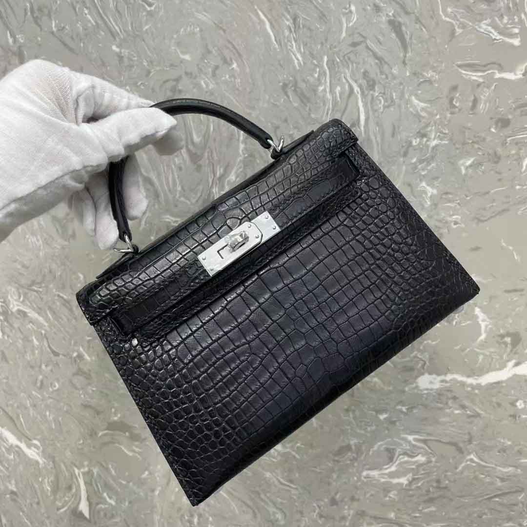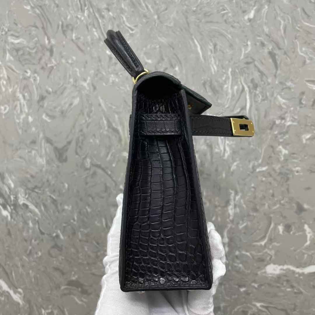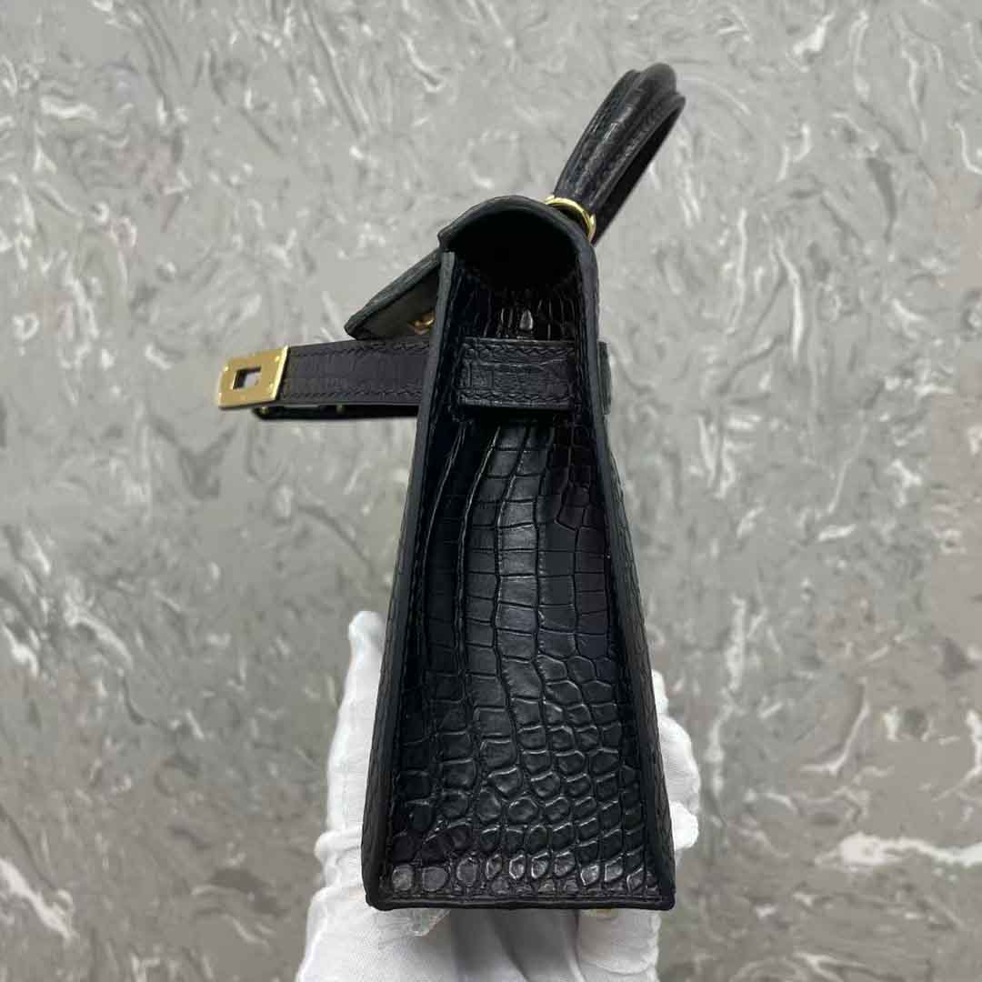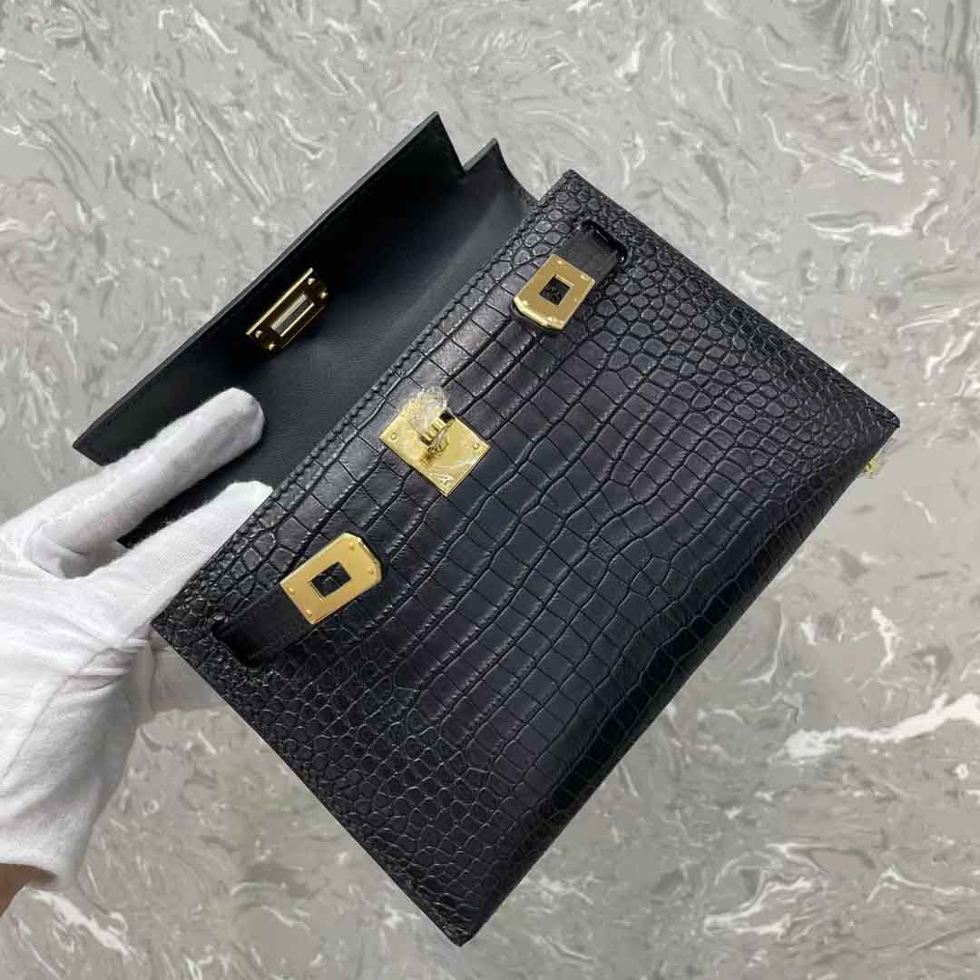 凯丽kl二代mini女士晚宴包订做工厂,湾鳄二代黑色金扣银扣奢侈品订制工作室