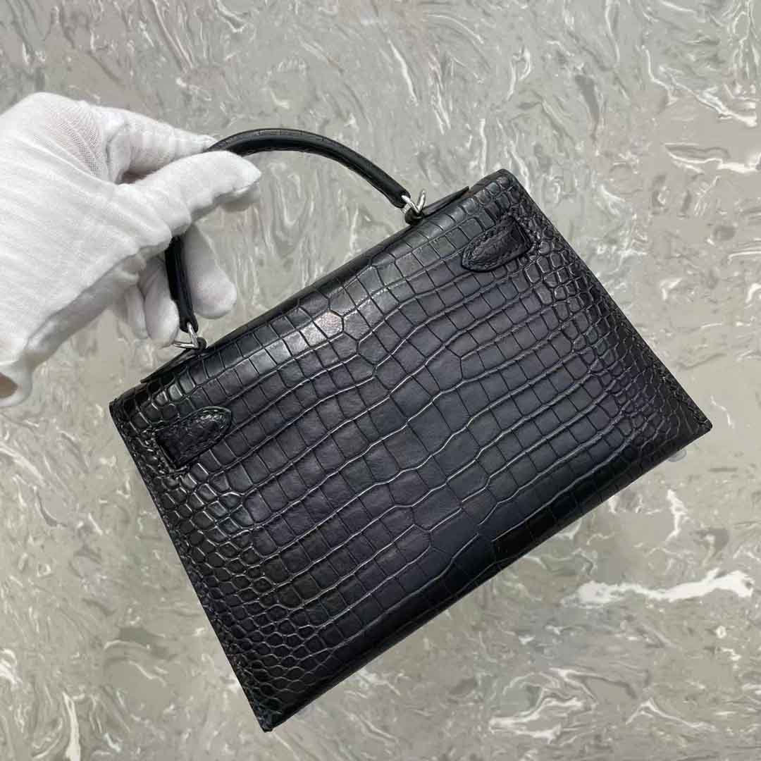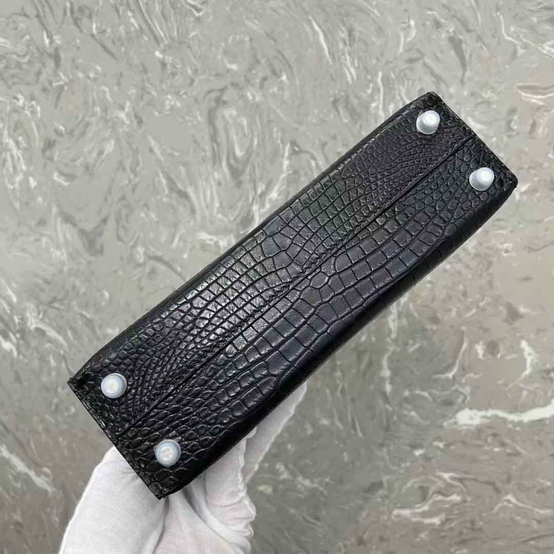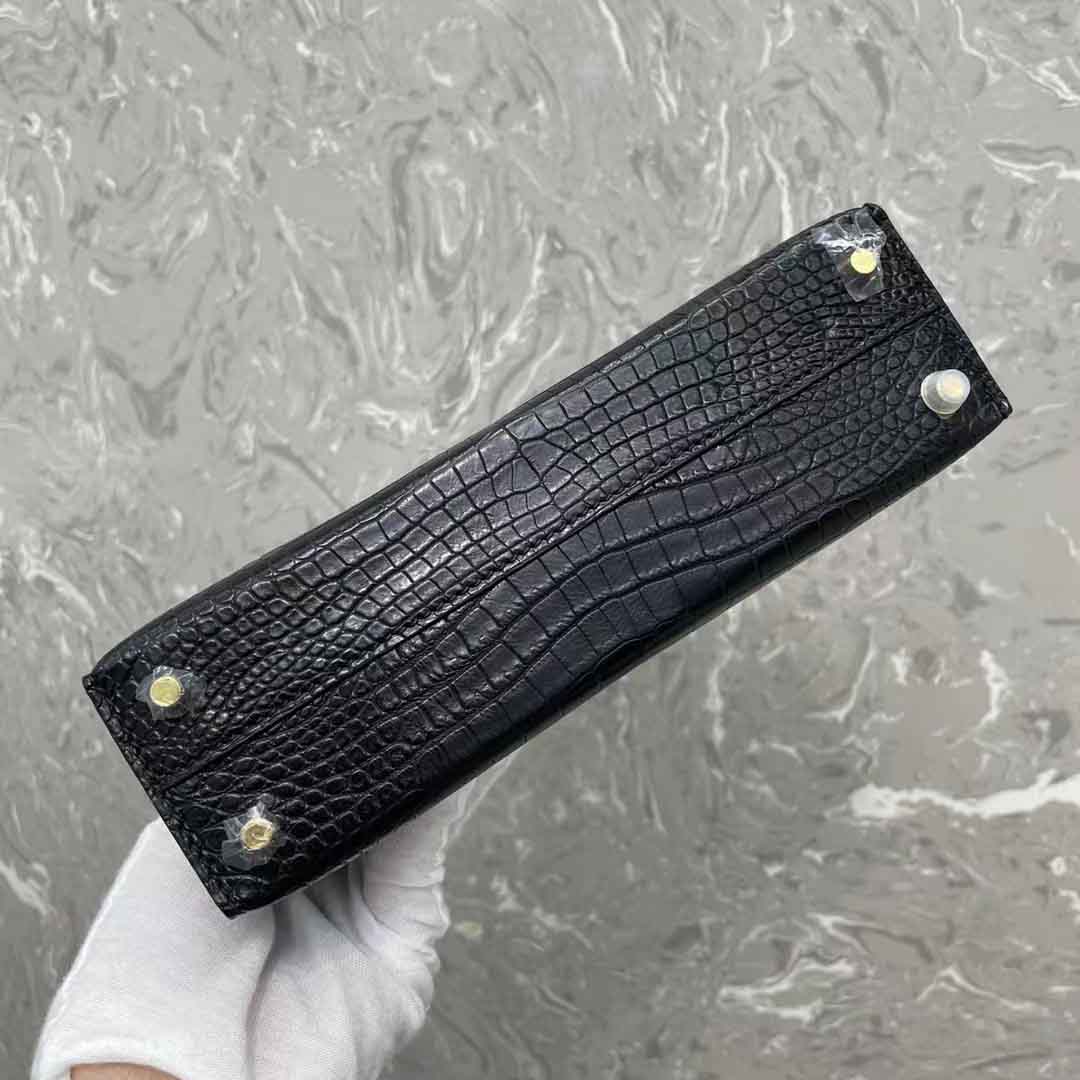 kelly二代19cm湾鳄肚皮女士包,手缝蜡线