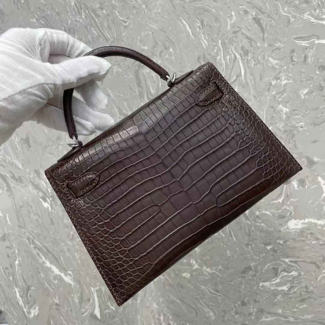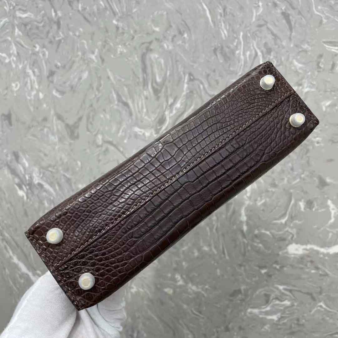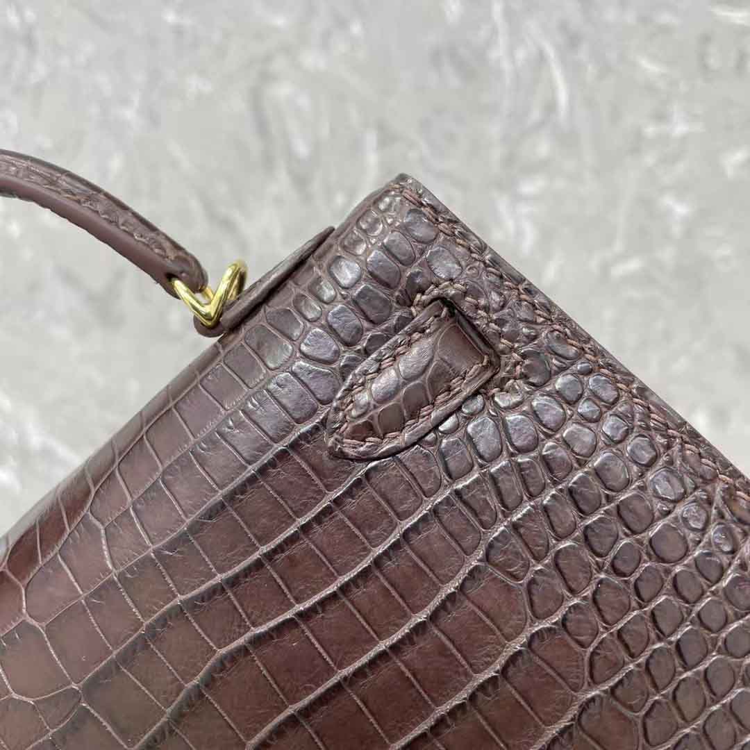 kelly二代19cm湾鳄肚皮女士包,手缝蜡线