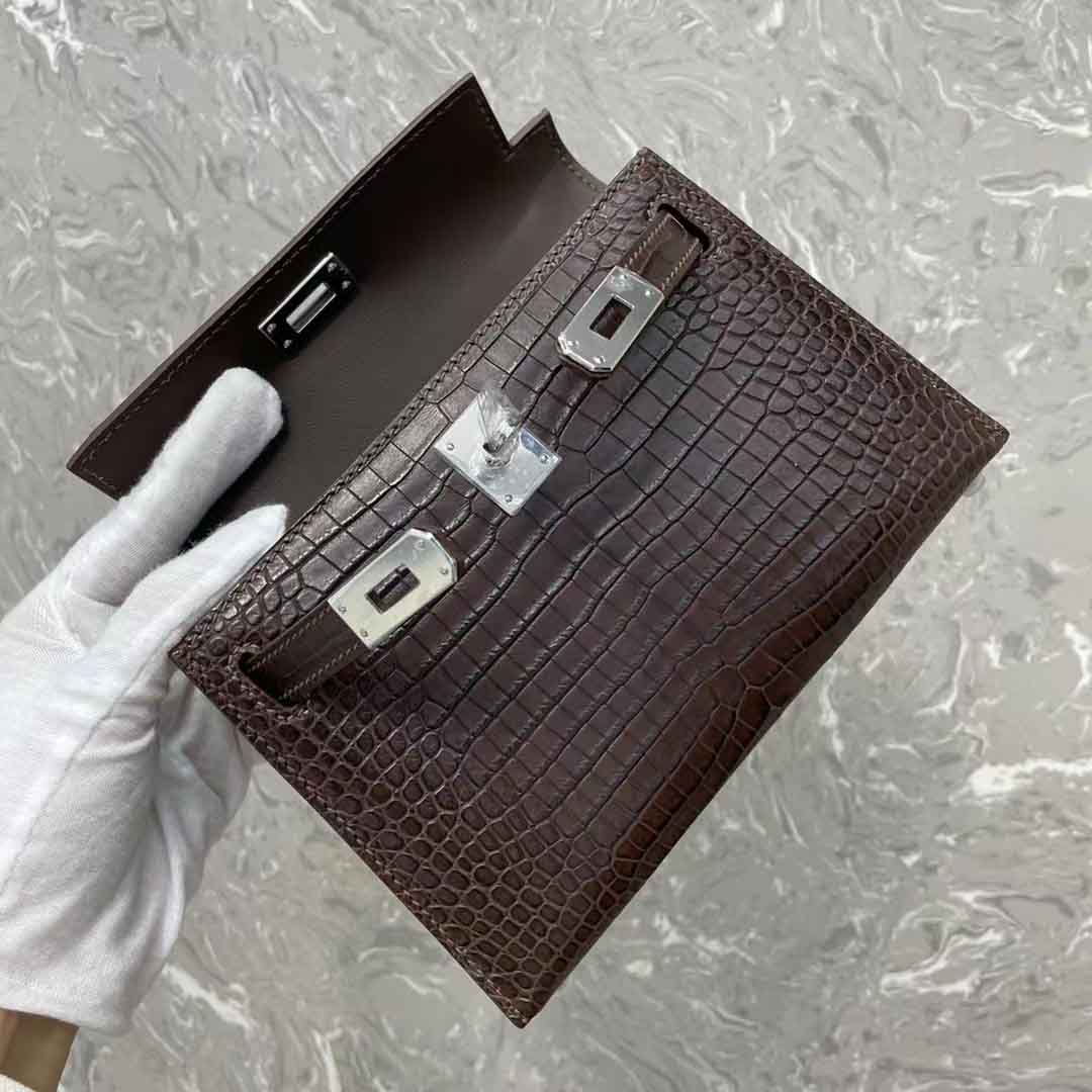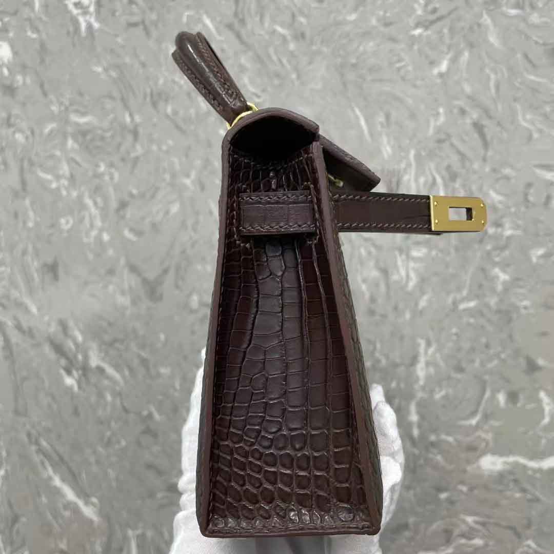凯丽kl二代mini女士晚宴包订做工厂,湾鳄二代咖色金扣银扣奢侈品订制工作室