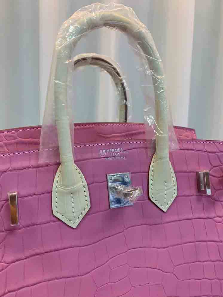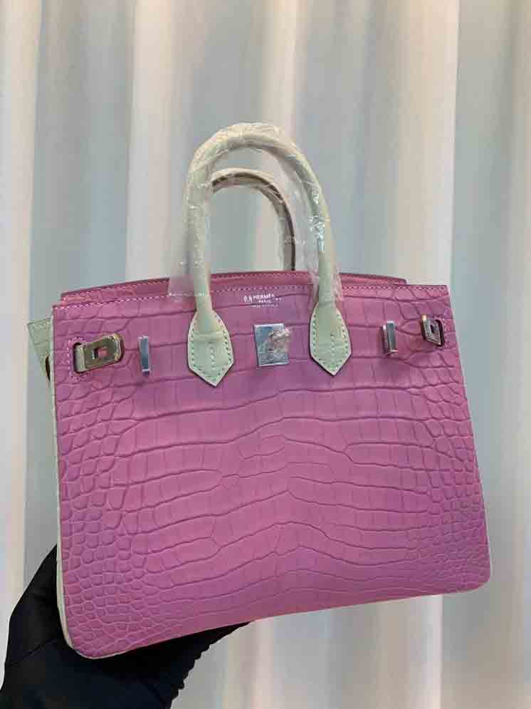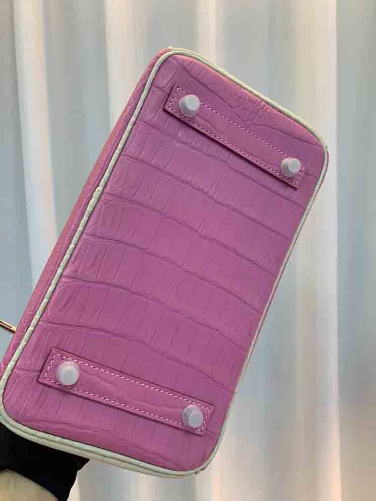 大象灰樱花拼色美洲鳄鱼皮女包订制工厂