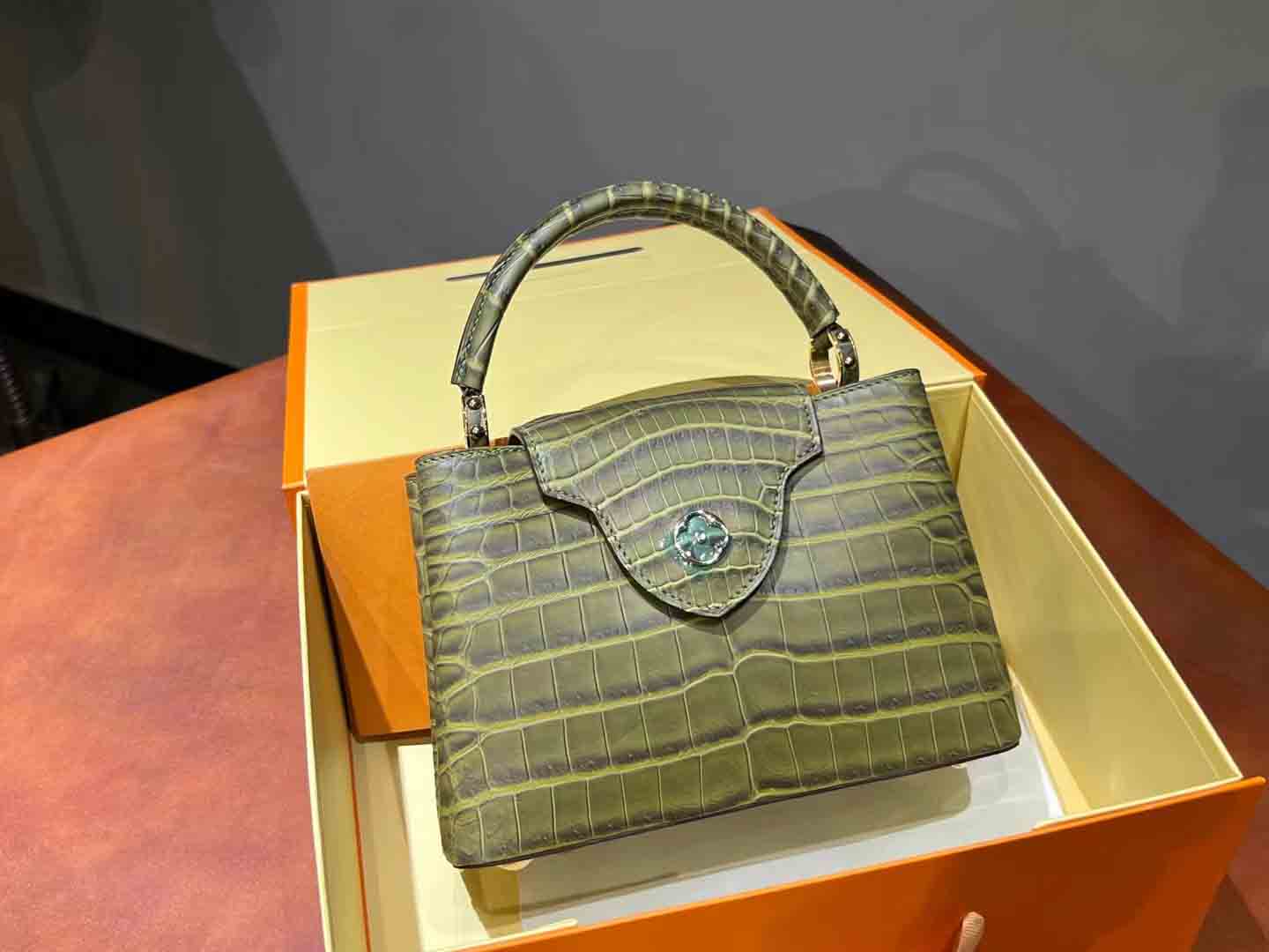 客订 LV mini capucines 橄榄绿 鳄鱼皮女包。