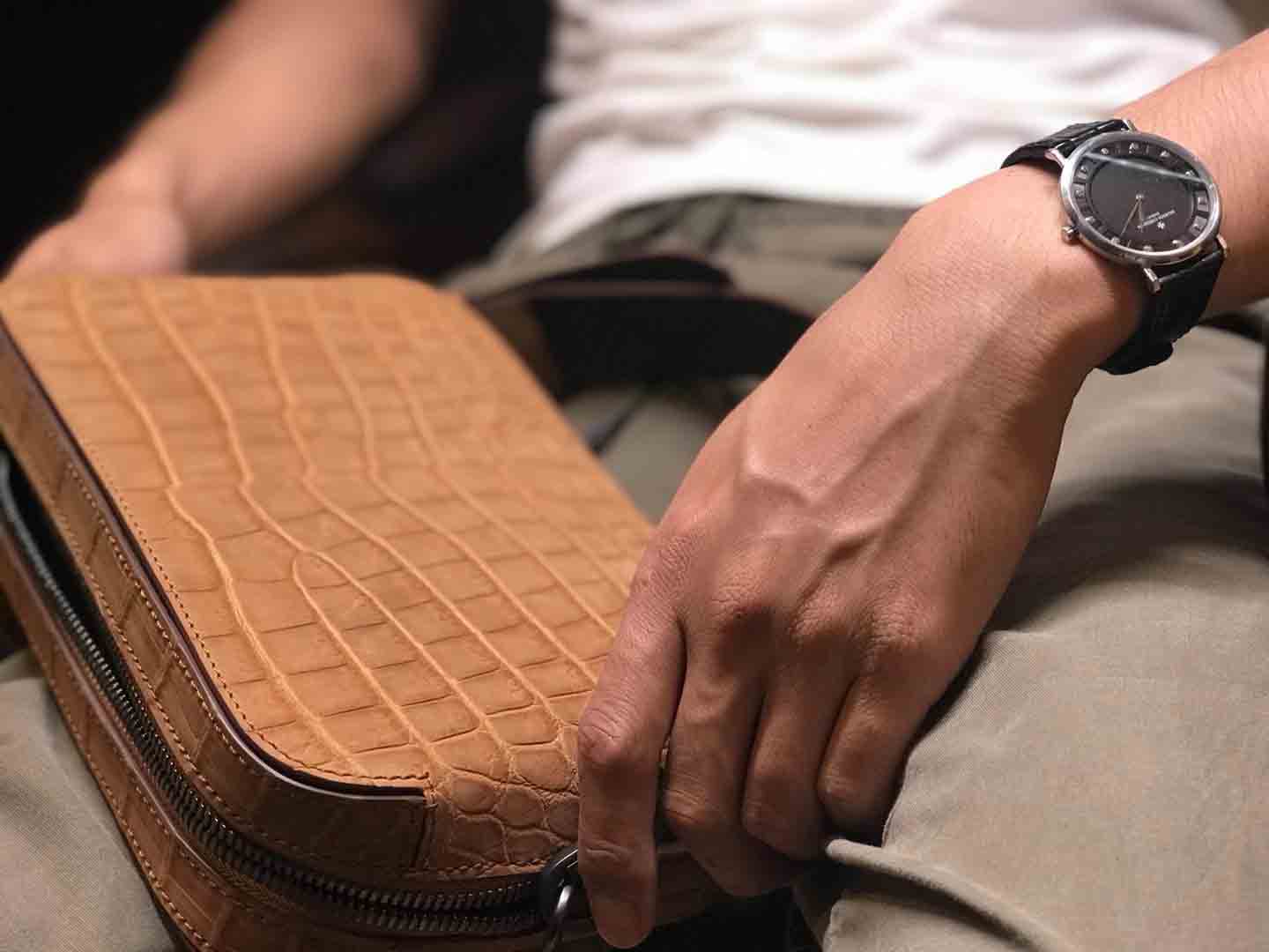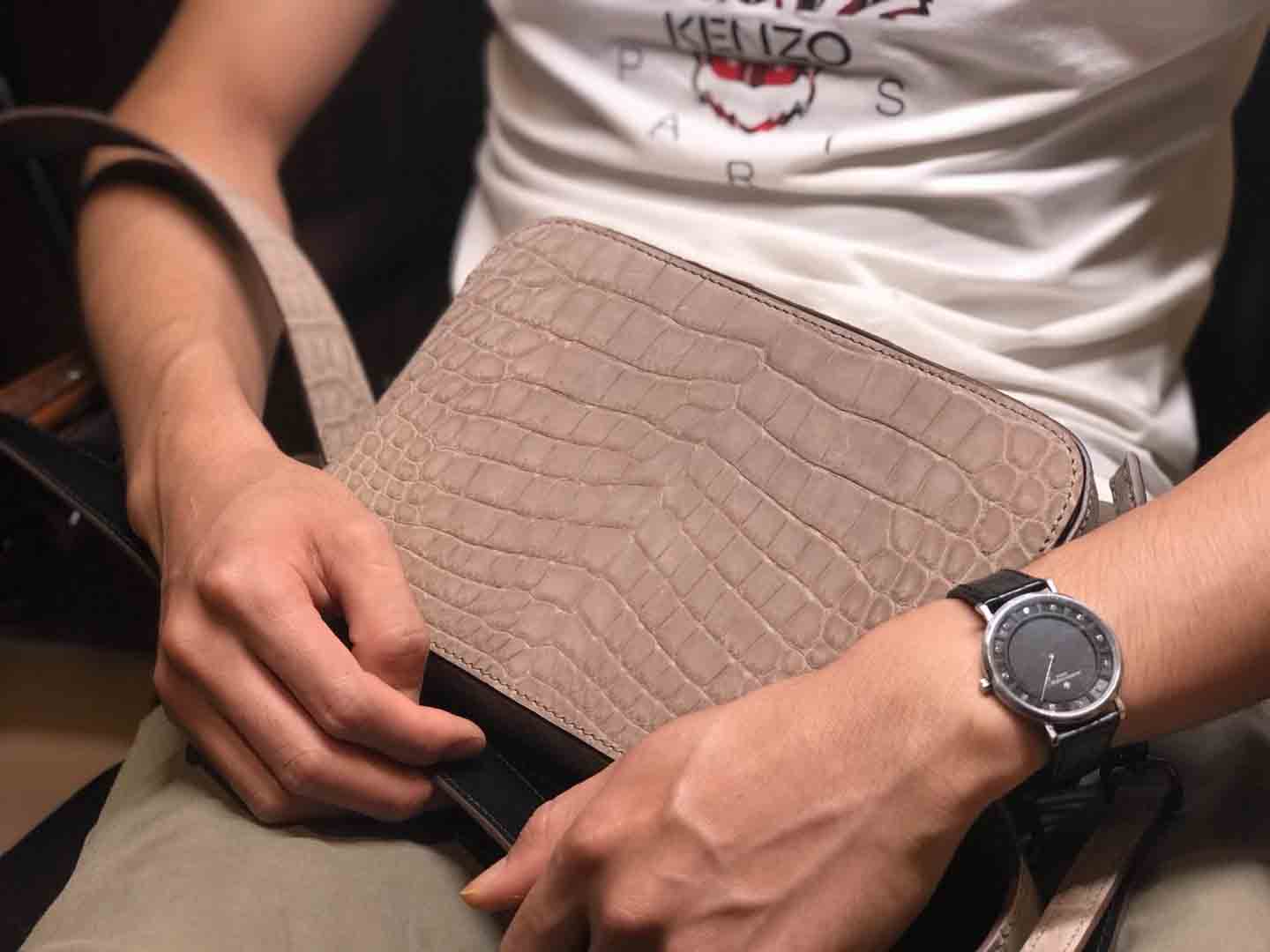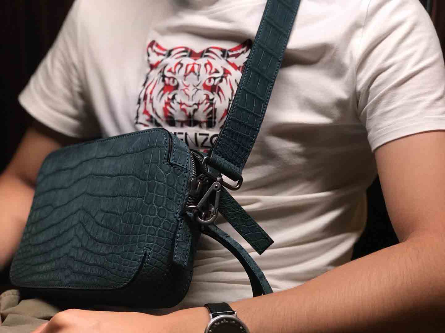 爆款-磨砂鳄鱼皮#mini邮差包男款客人寄来的正品版#既可以用作商务洽谈的手拿包,又可以作为时尚博主的街拍神器,规格-24-16-6