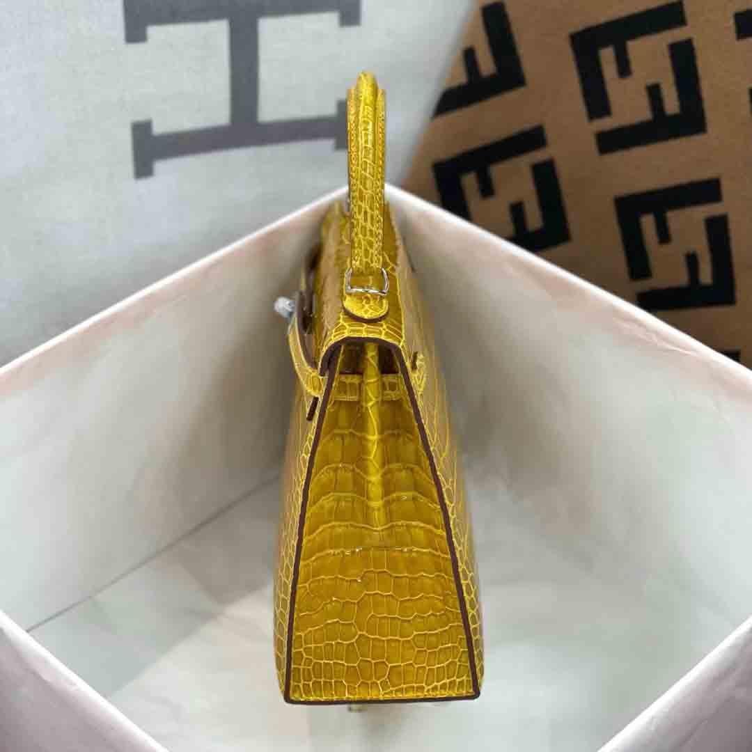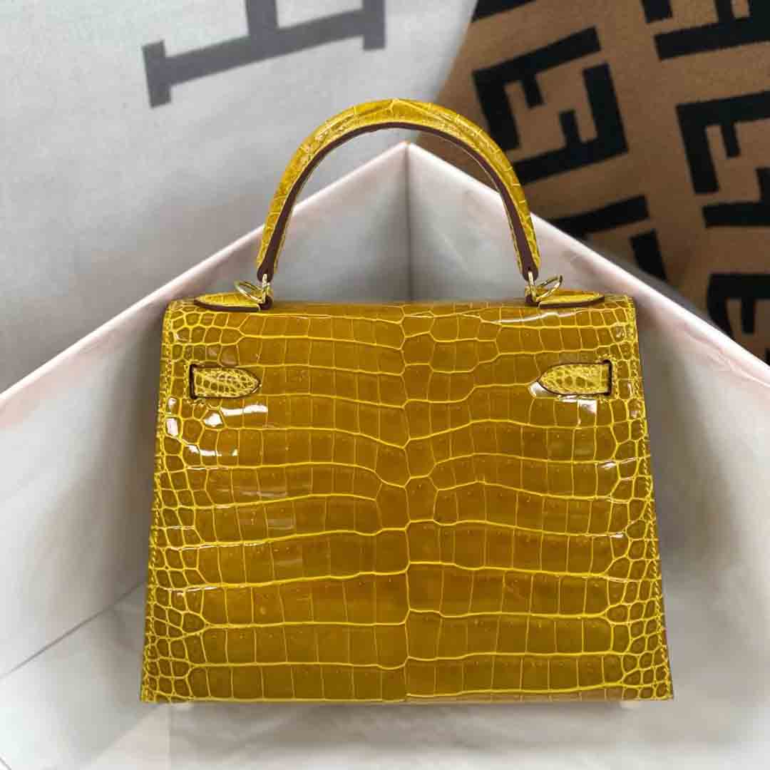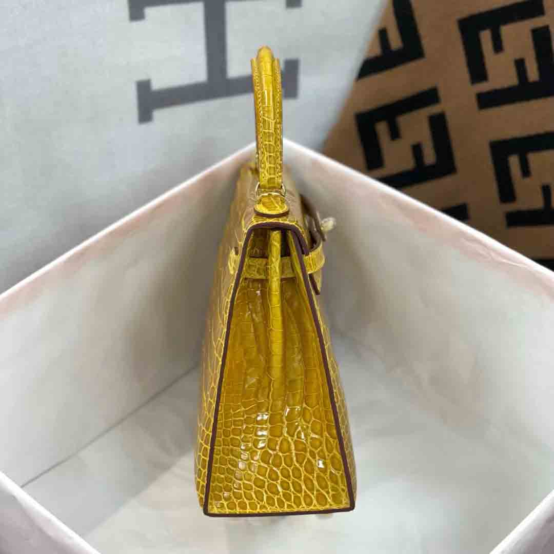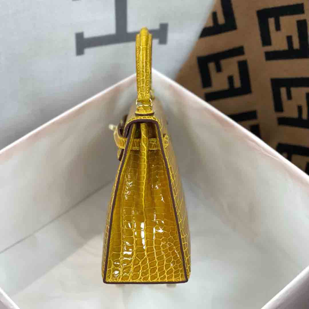 凯莉25~高光湾鳄、对版工艺,鳄鱼皮女手提包工厂批发