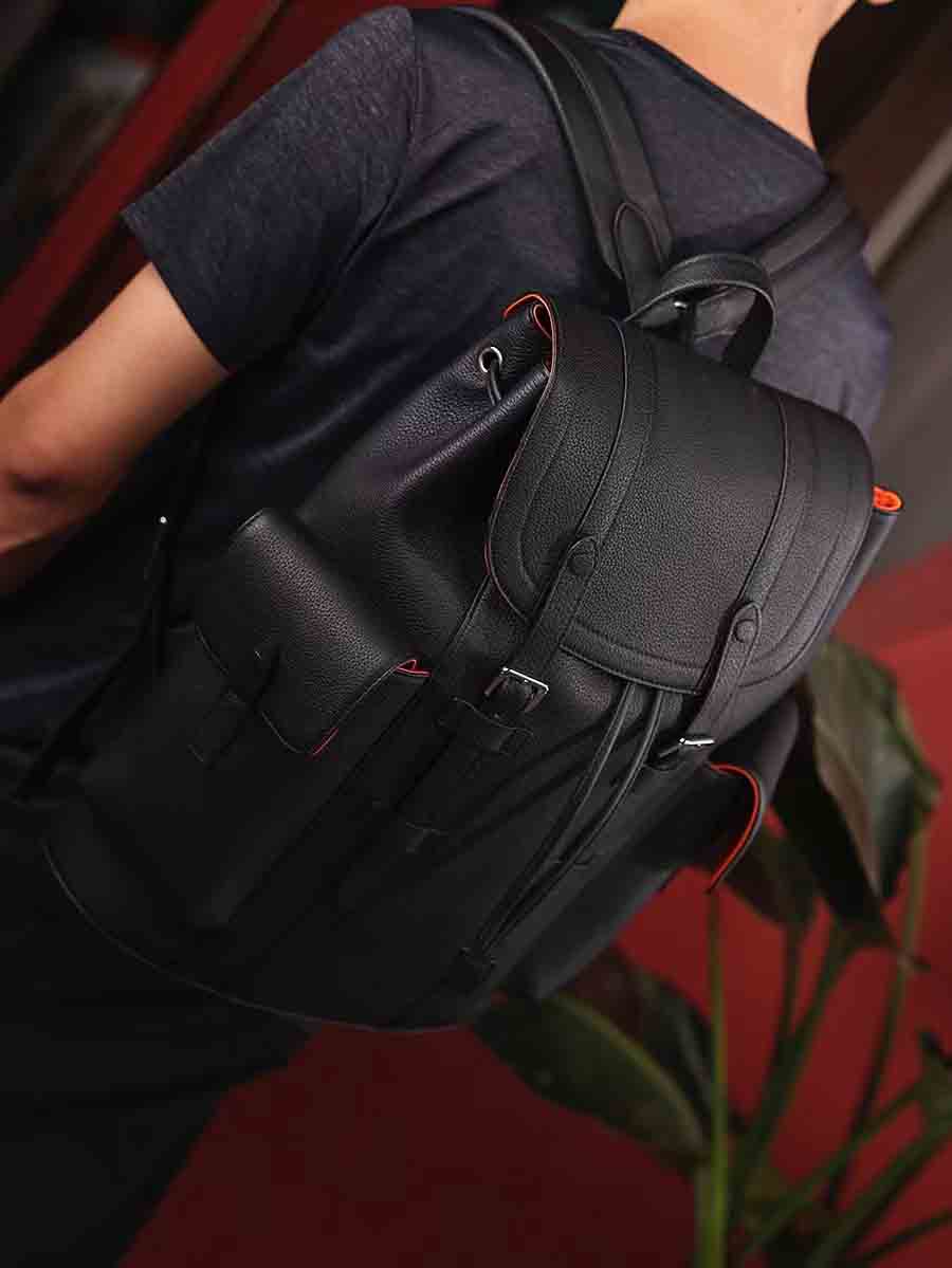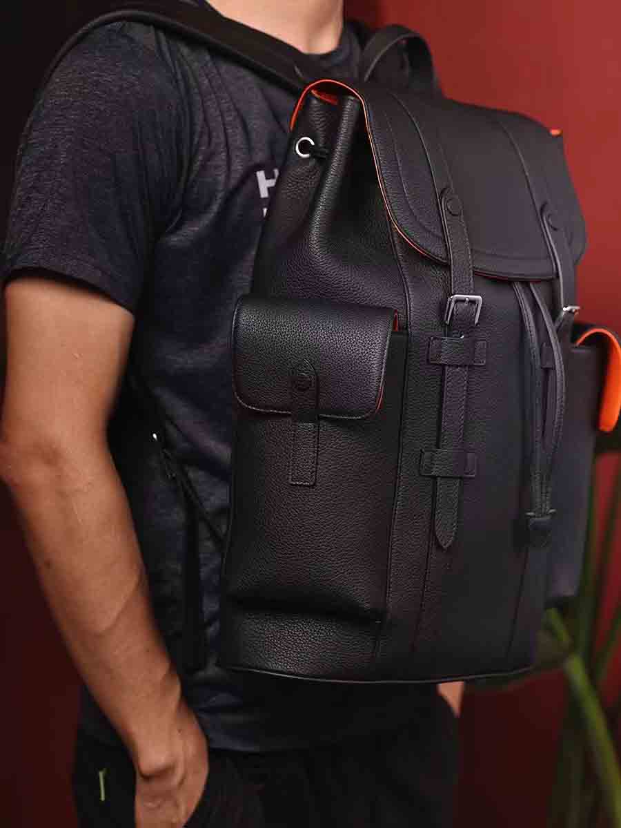经典荔枝纹Togo牛皮双肩背包 拼色设计 客订