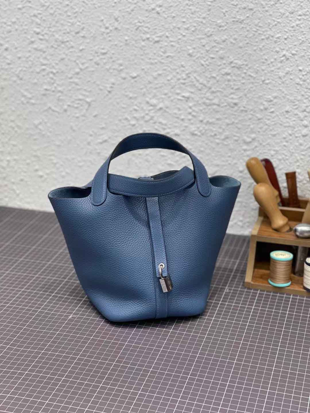 据说设计灵感是来自喂马的桶, 看上去像一只菜篮子,因此也被大家亲切的称呼为“菜篮子”。许多人喜欢在包包上系一条洋气的丝巾,增加个性与优雅。这个包包容纳性高,色号多,相对其他款来说价格也比较便宜,因此成为一款大热包包。有人尝试塞下水杯,笔记本,钱包,手表,充电器,唇膏,纸巾都没问题呢,不过缺点就是不能肩背而且敞开式不太安全。
