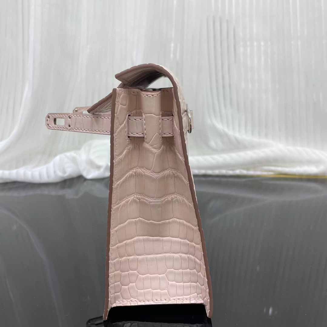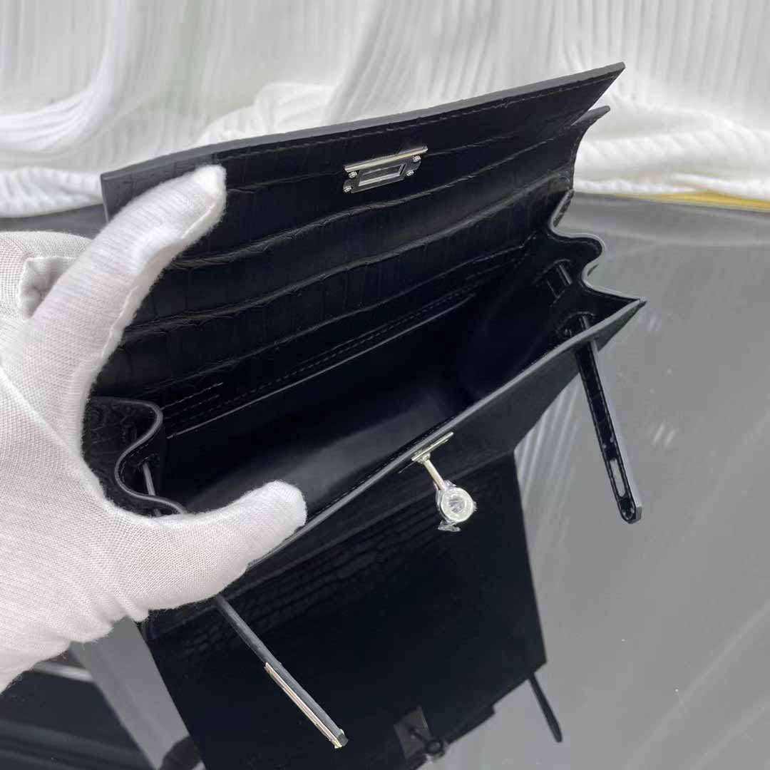 进口美洲鳄鱼雾面,跳舞包尺寸;22X17X7。里皮为法羊皮。美洲鳄属较大型的淡水鳄鱼,其皮质饱满,花纹富丽