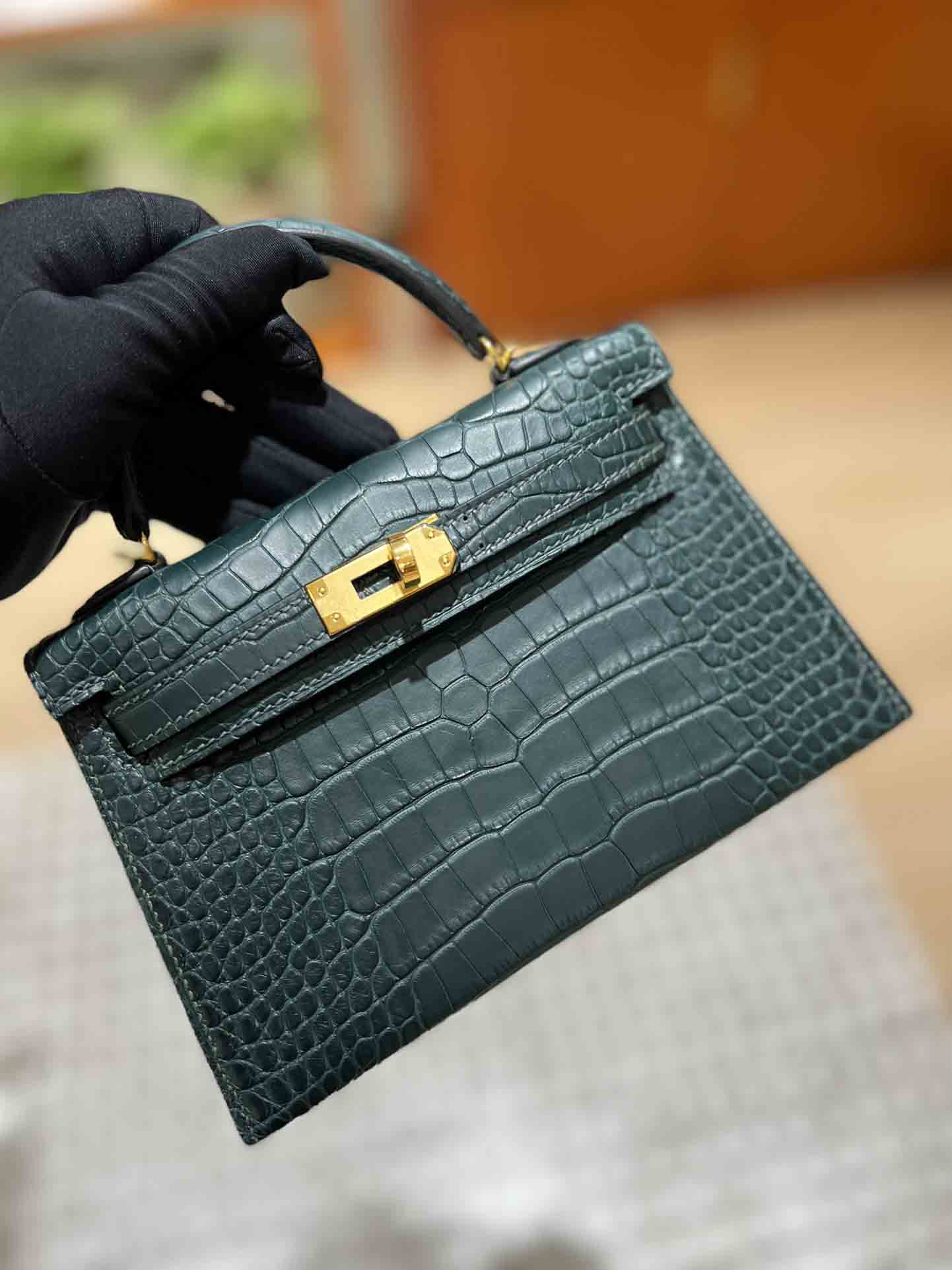 Hermes 爱马仕kellymini 二代 美洲鳄鱼皮批发厂家。 雾面鳄鱼 金扣 大极品 超级少。