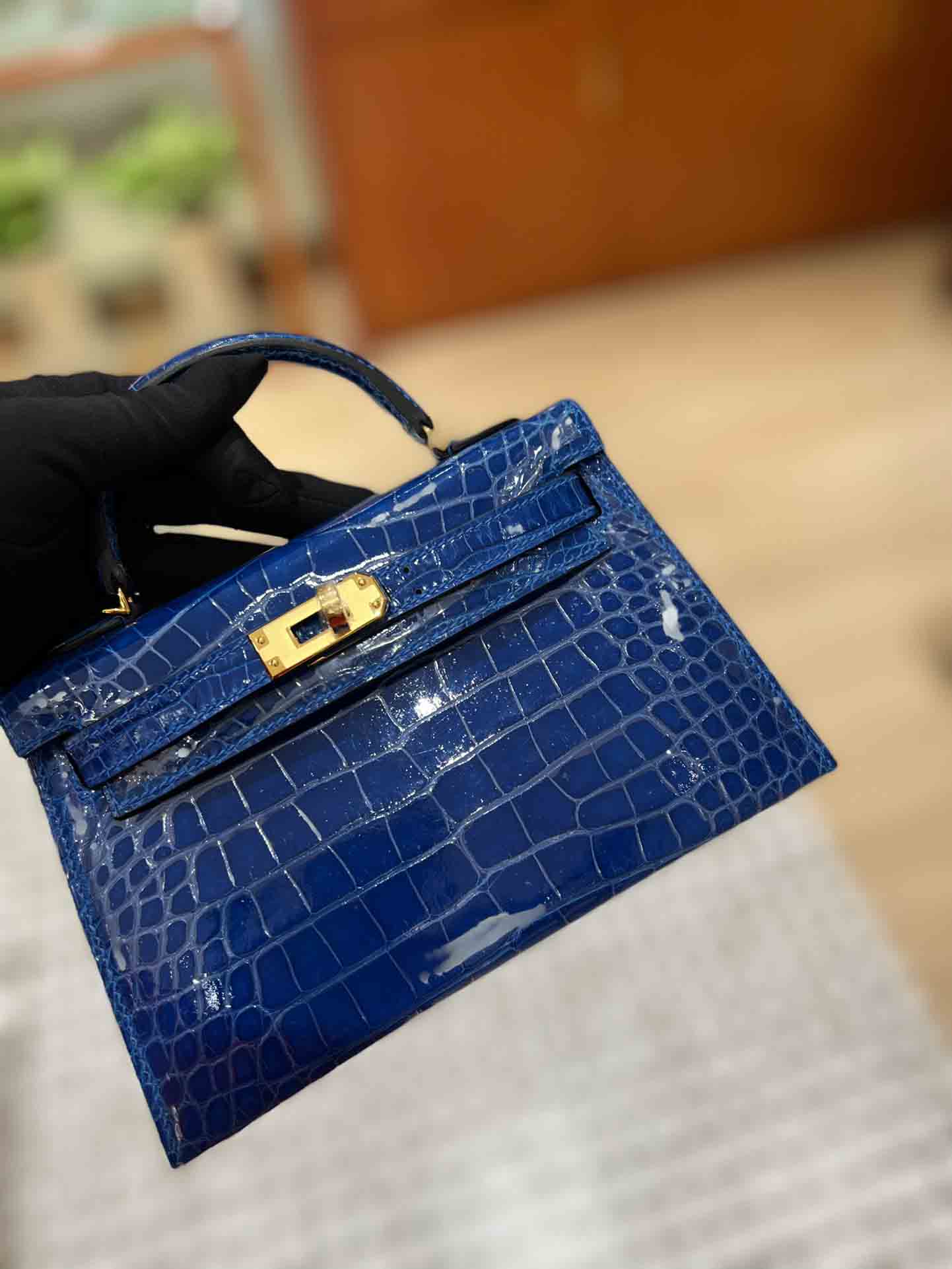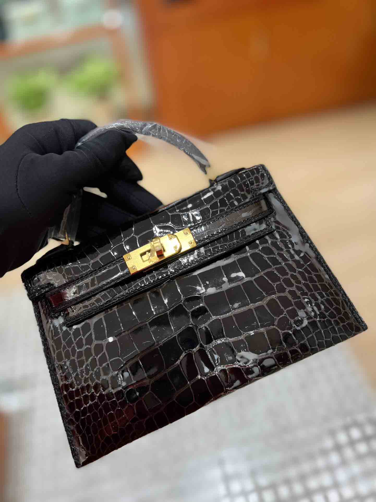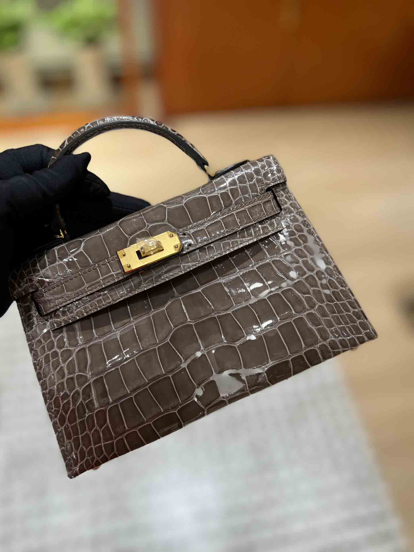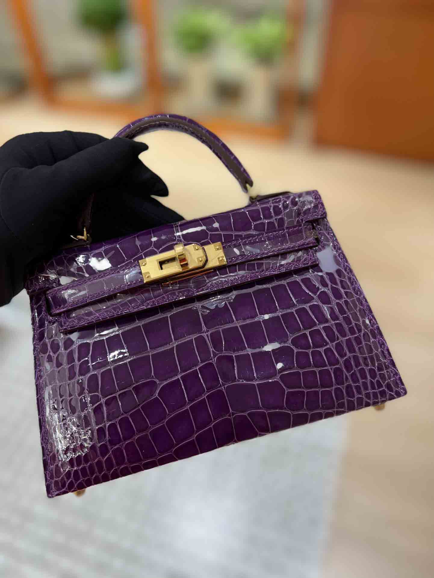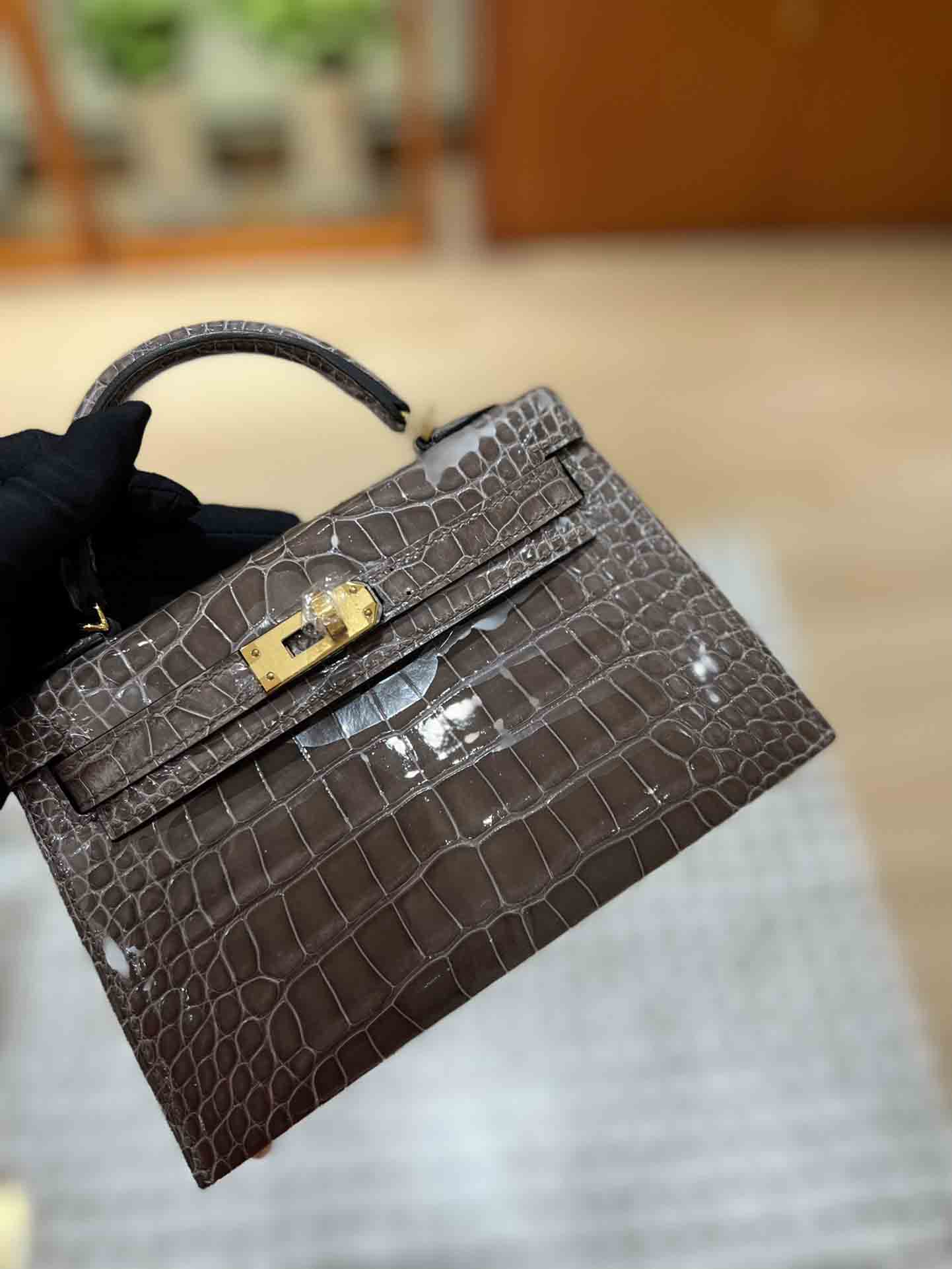 kelly二代美洲鳄,自然光下实拍 爱马仕Kelly二代采用的是进口兴隆鳄鱼皮,这种皮也是爱马仕常用皮。