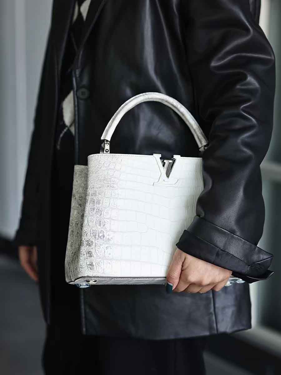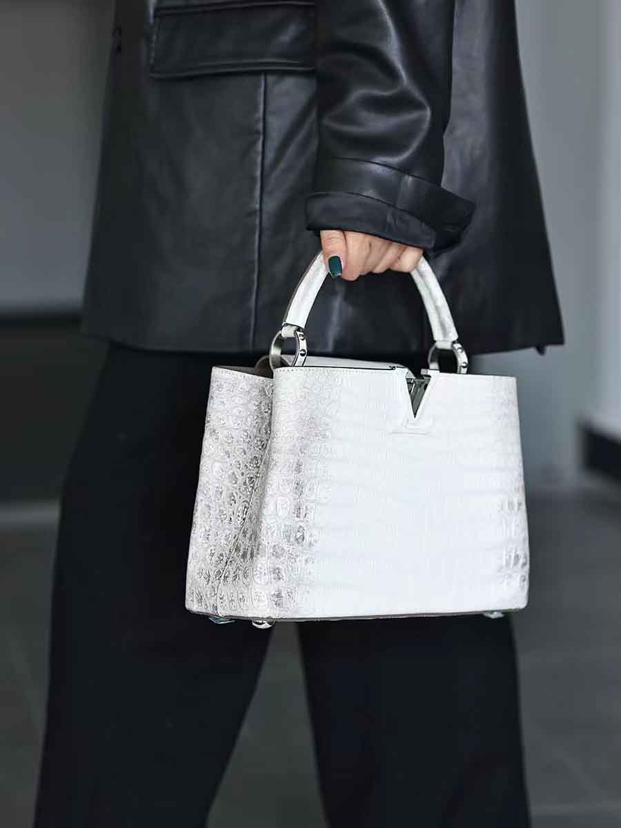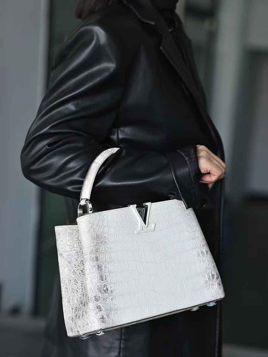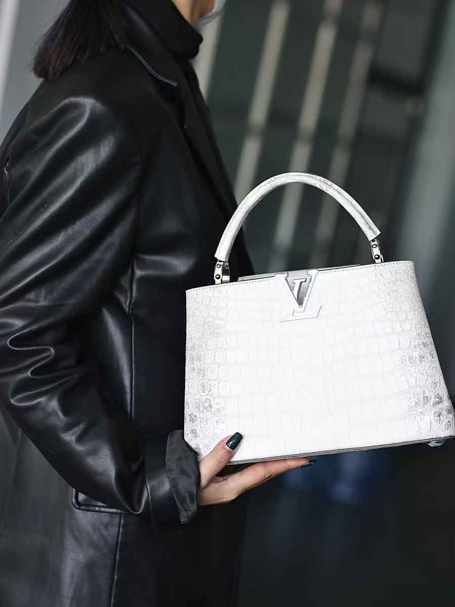 Capucines27,喜马拉雅鳄鱼皮,实拍现货。鳄鱼皮女单肩包订制工厂,手拎包定制厂家。