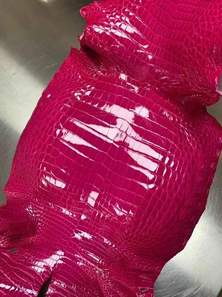 进口尼罗光亮鳄鱼皮玫瑰红色