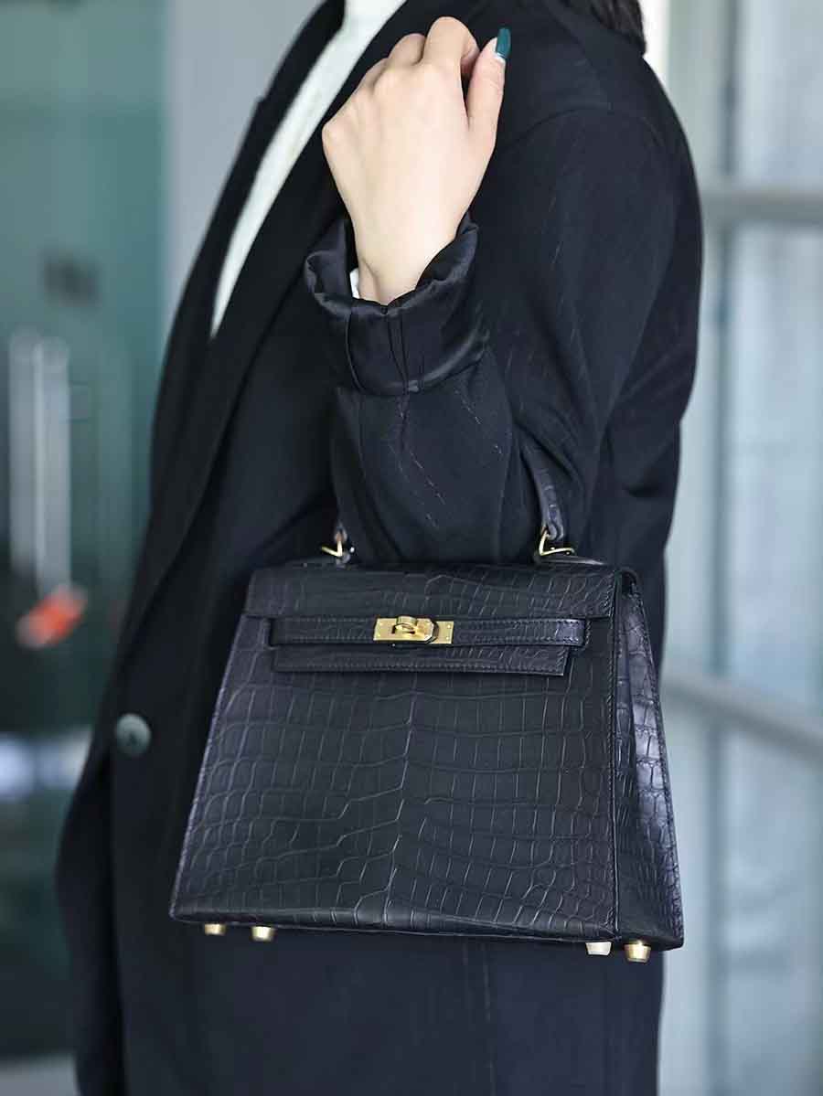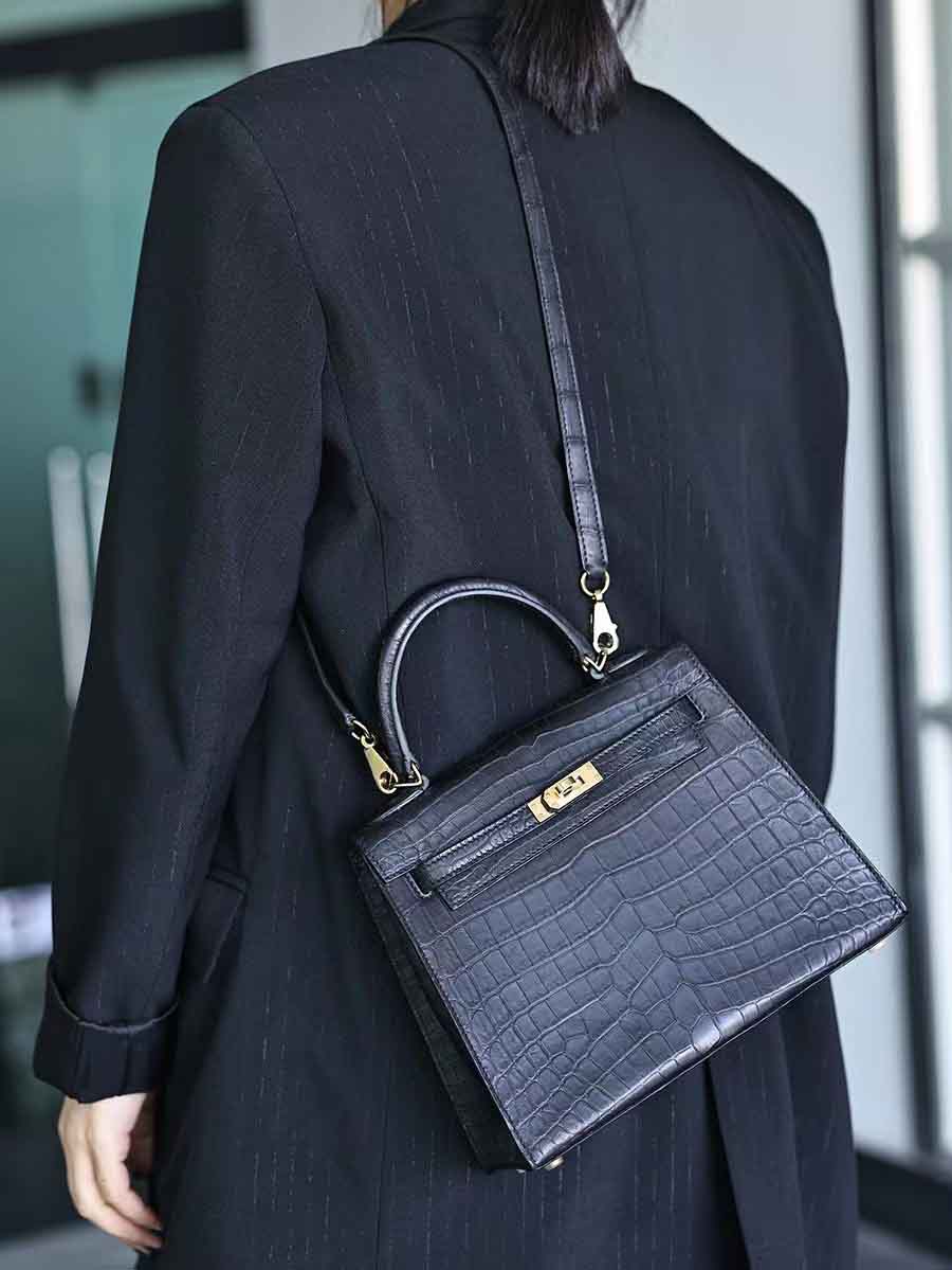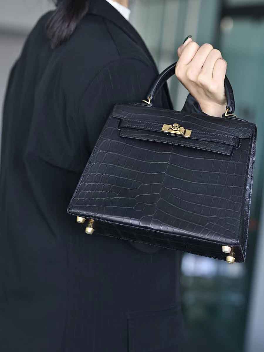 雾面无涂尼罗鳄 Kelly25,水染鳄鱼皮女手提包定制厂家。