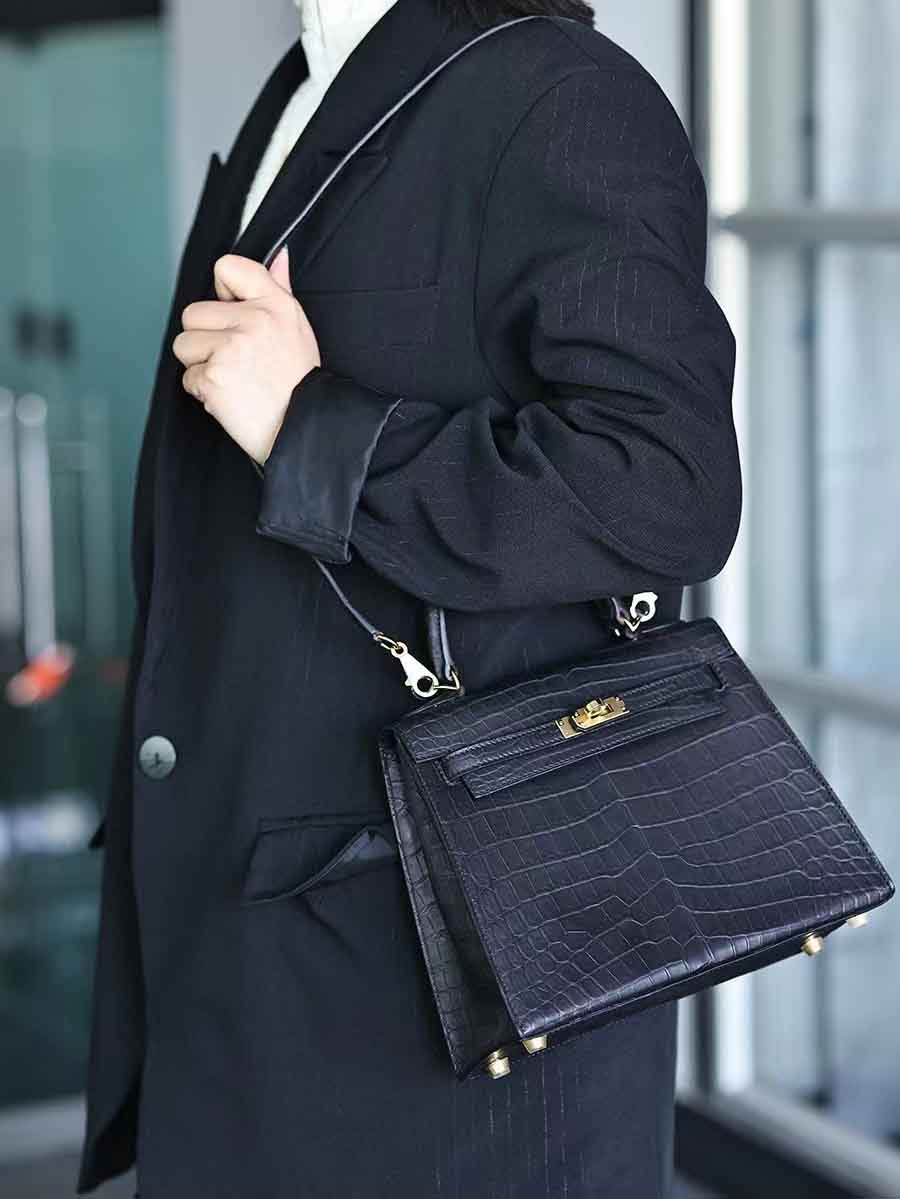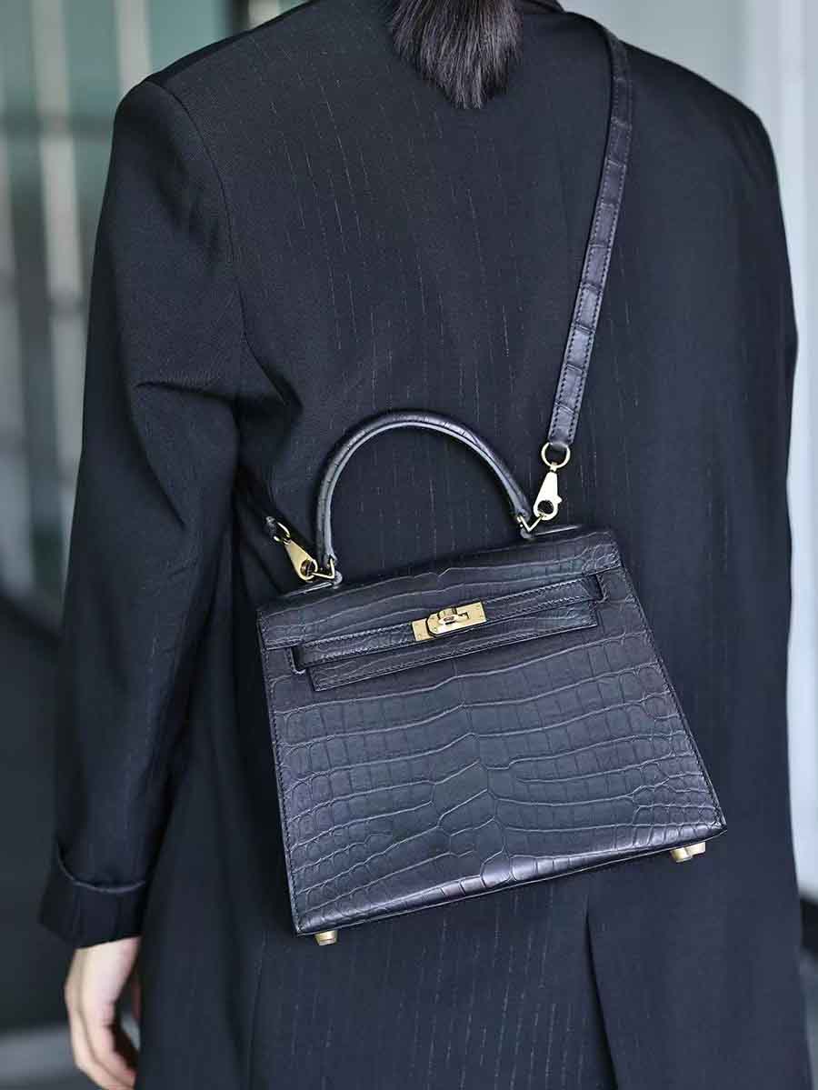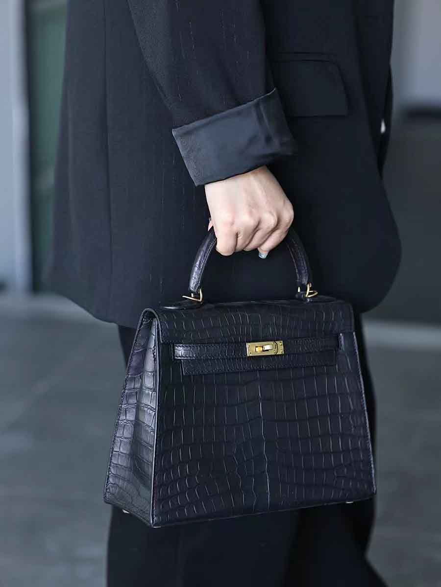 雾面无涂尼罗鳄 Kelly25,水染鳄鱼皮女手提包定制厂家。