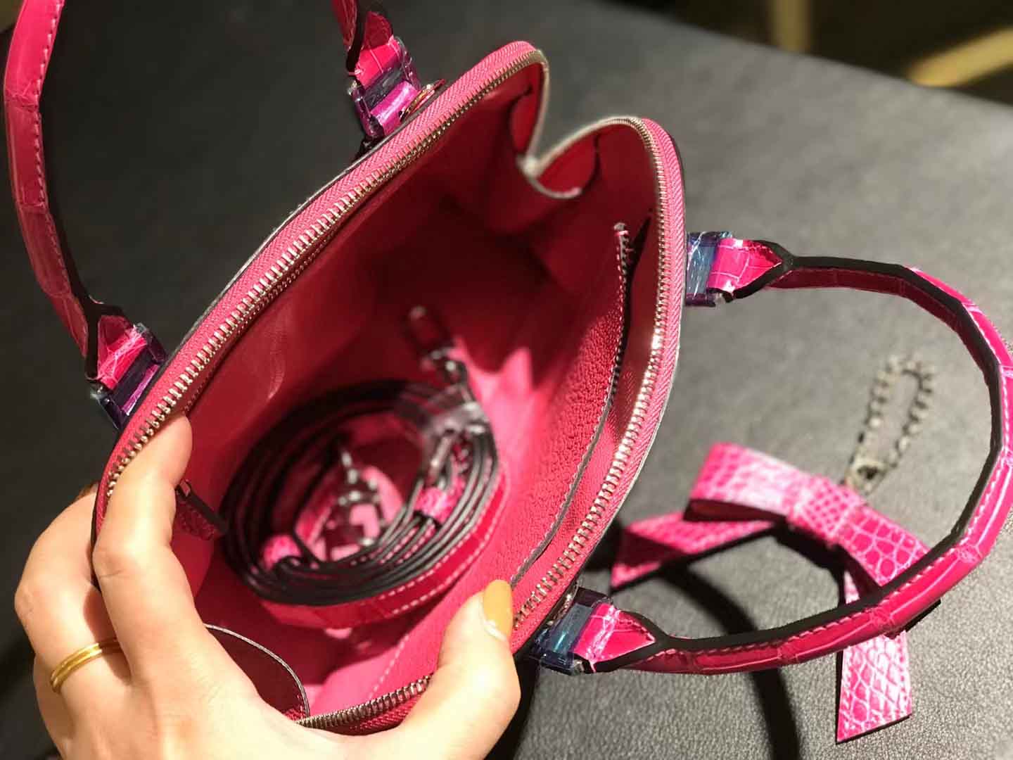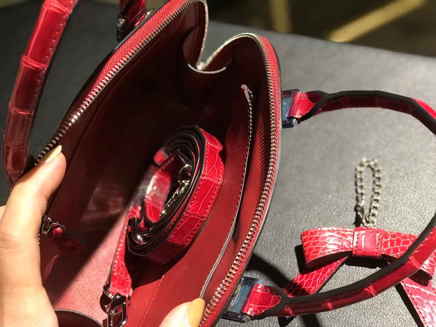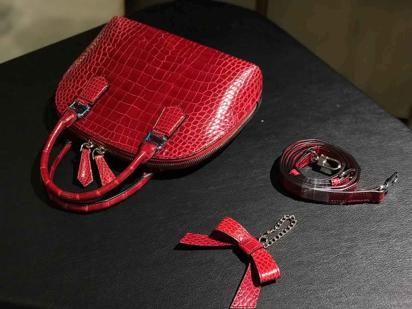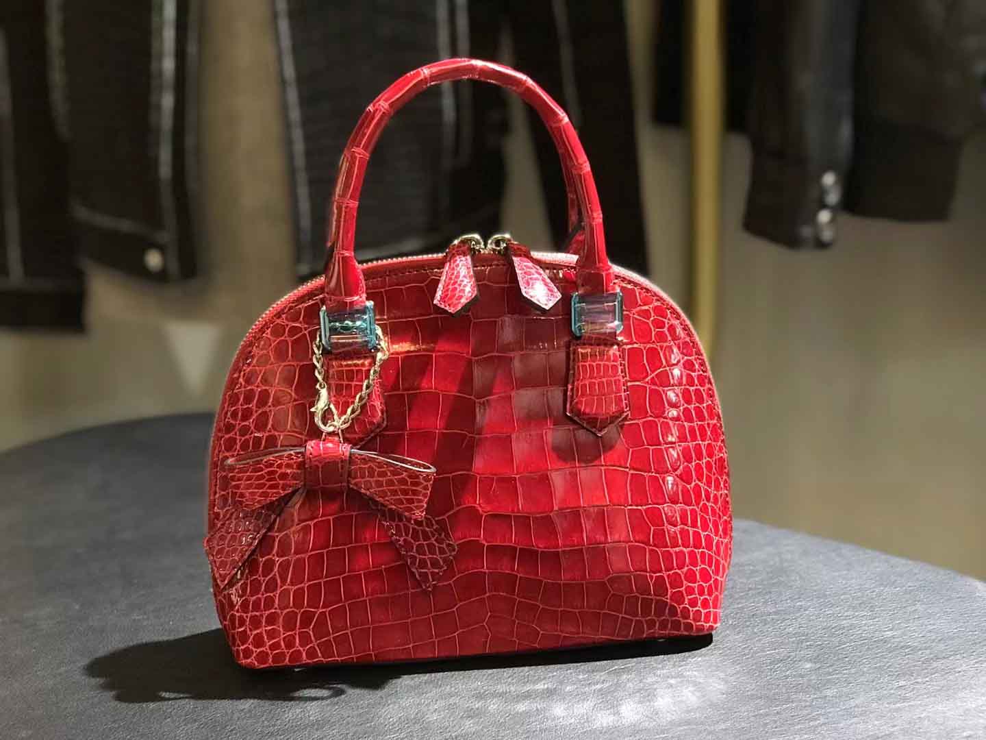 高光鳄鱼皮 女士贝壳包/手拎斜挎,鳄鱼皮牌蝴蝶结挂坠很可爱