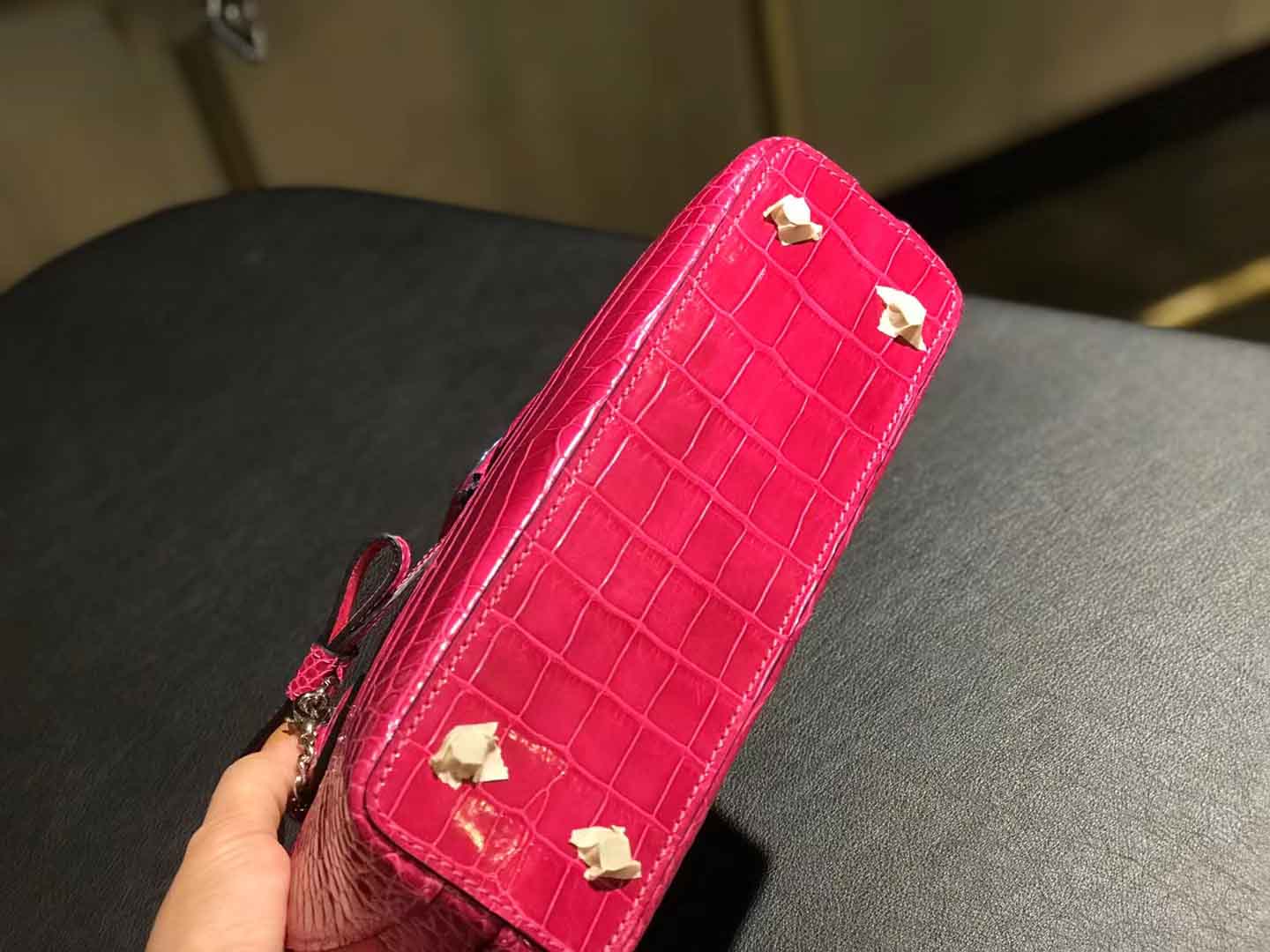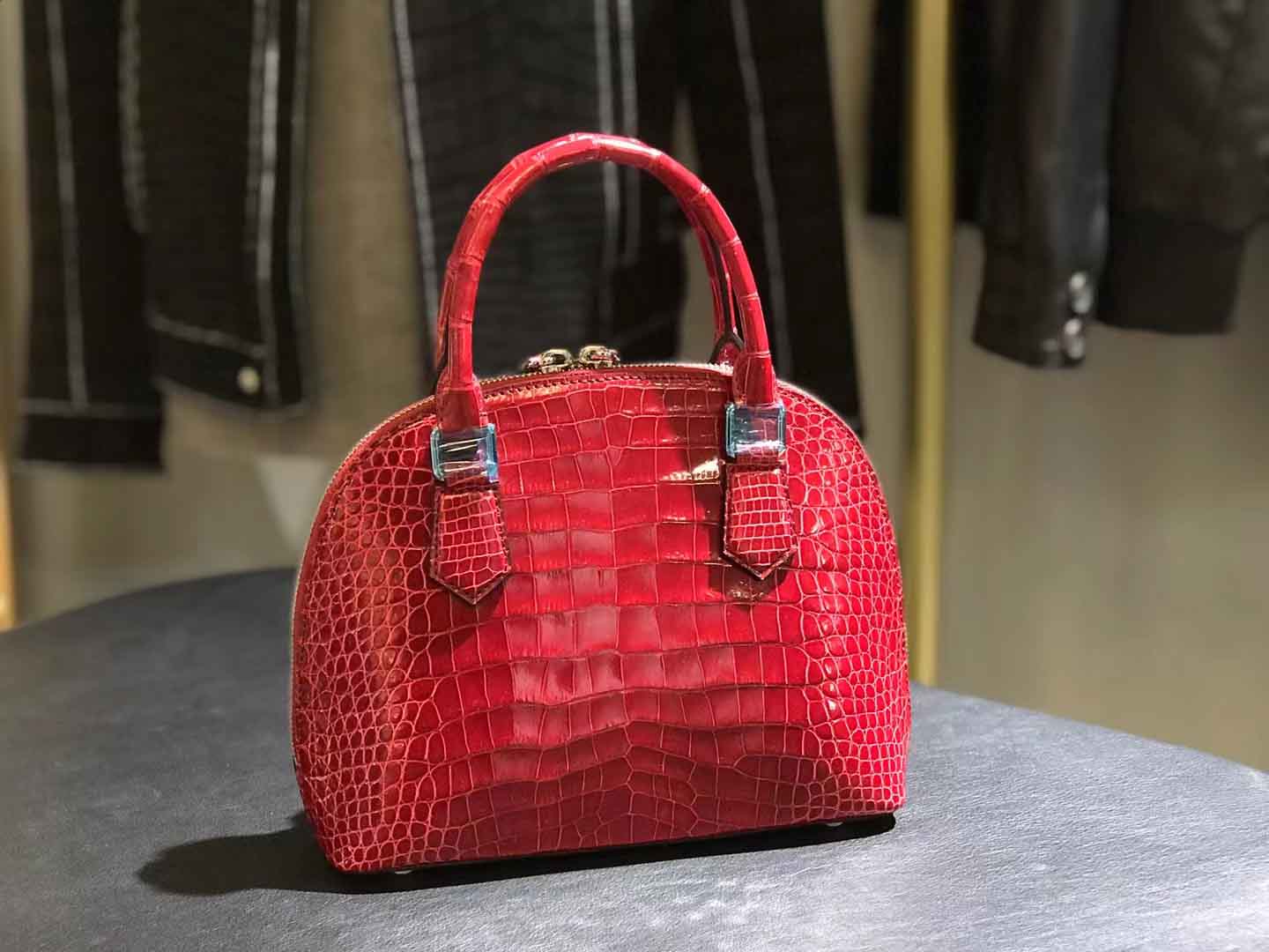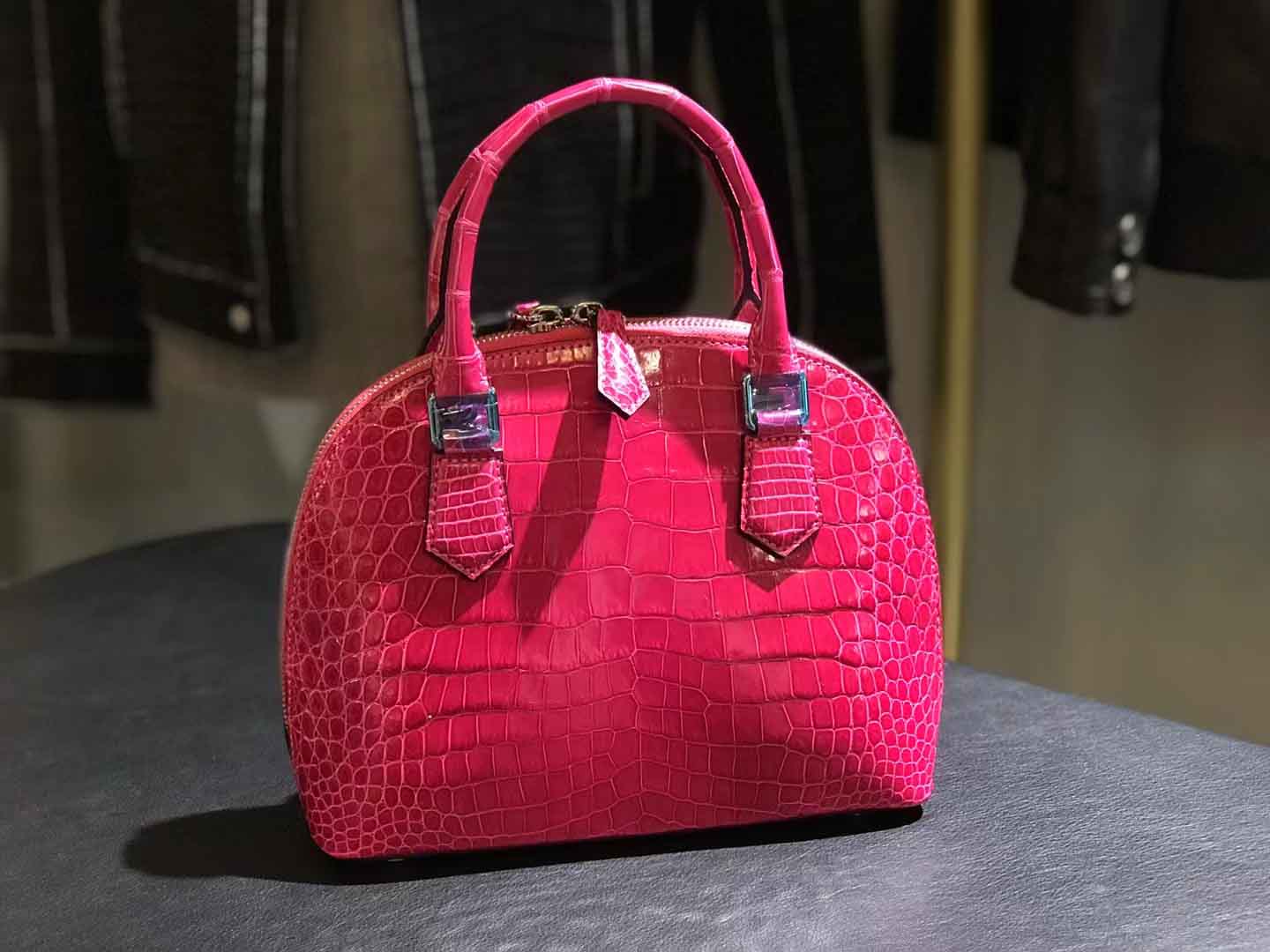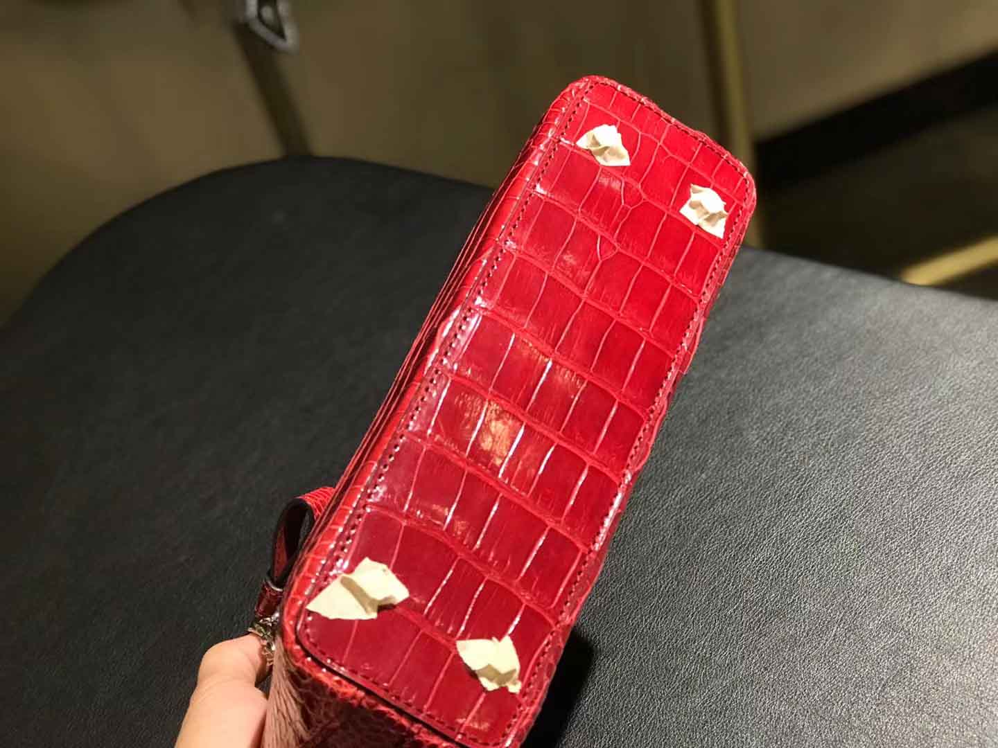 高光鳄鱼皮 女士贝壳包/手拎斜挎,鳄鱼皮牌蝴蝶结挂坠很可爱