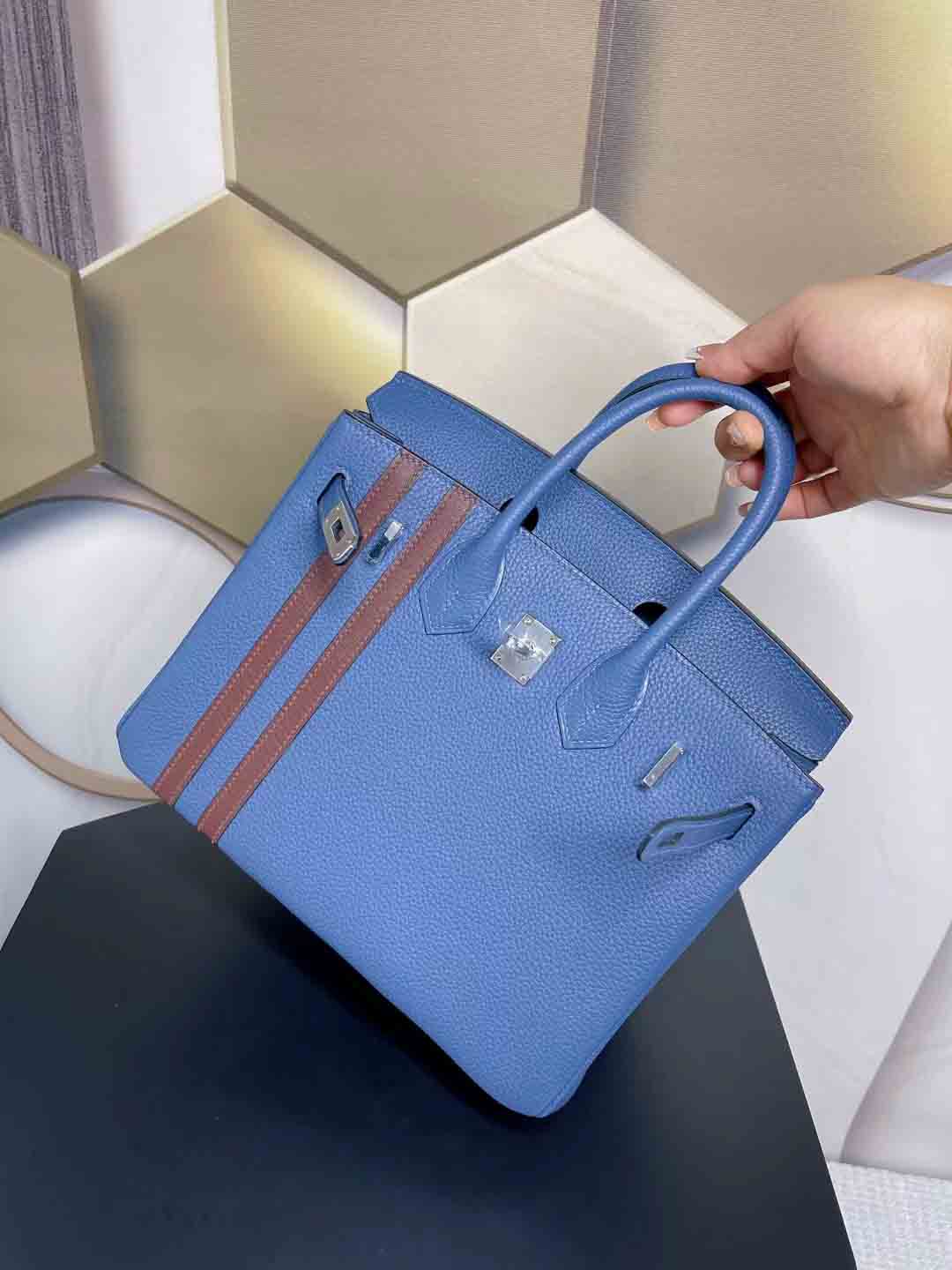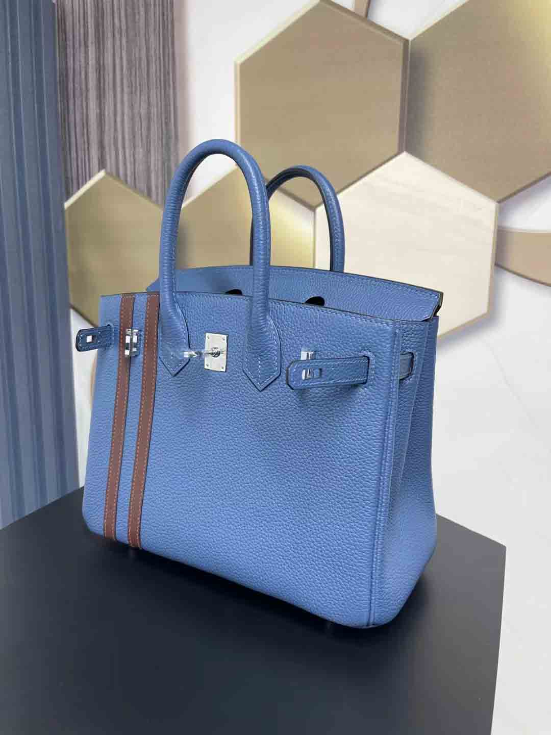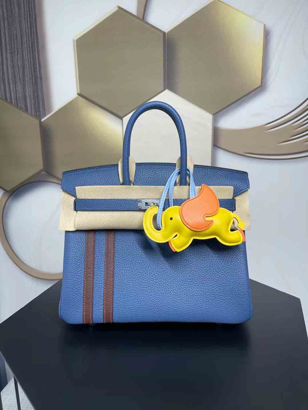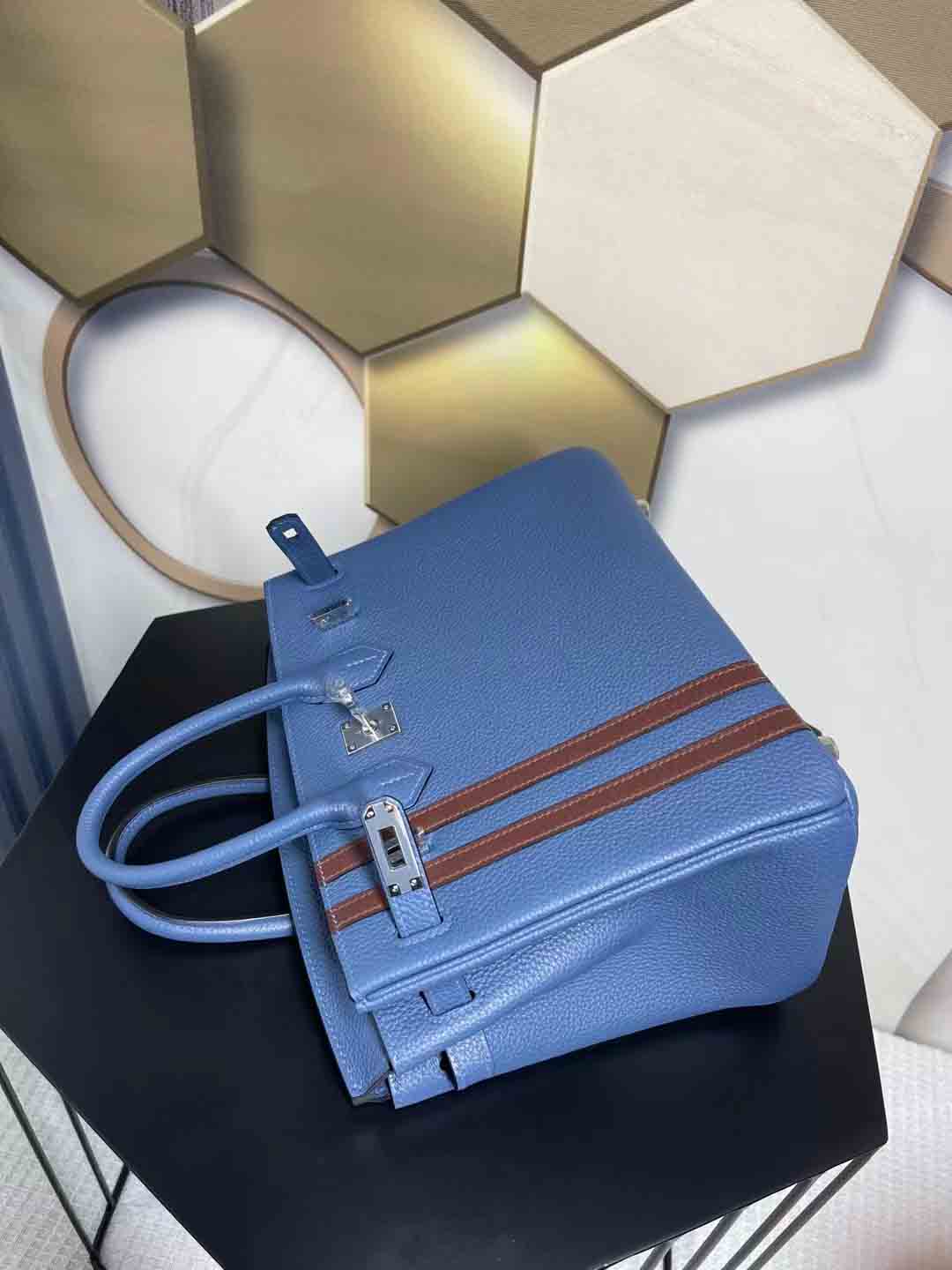 Birkin officier 限量版 双杠中队长。客定做多一只25cm 玛瑙蓝拼咖色