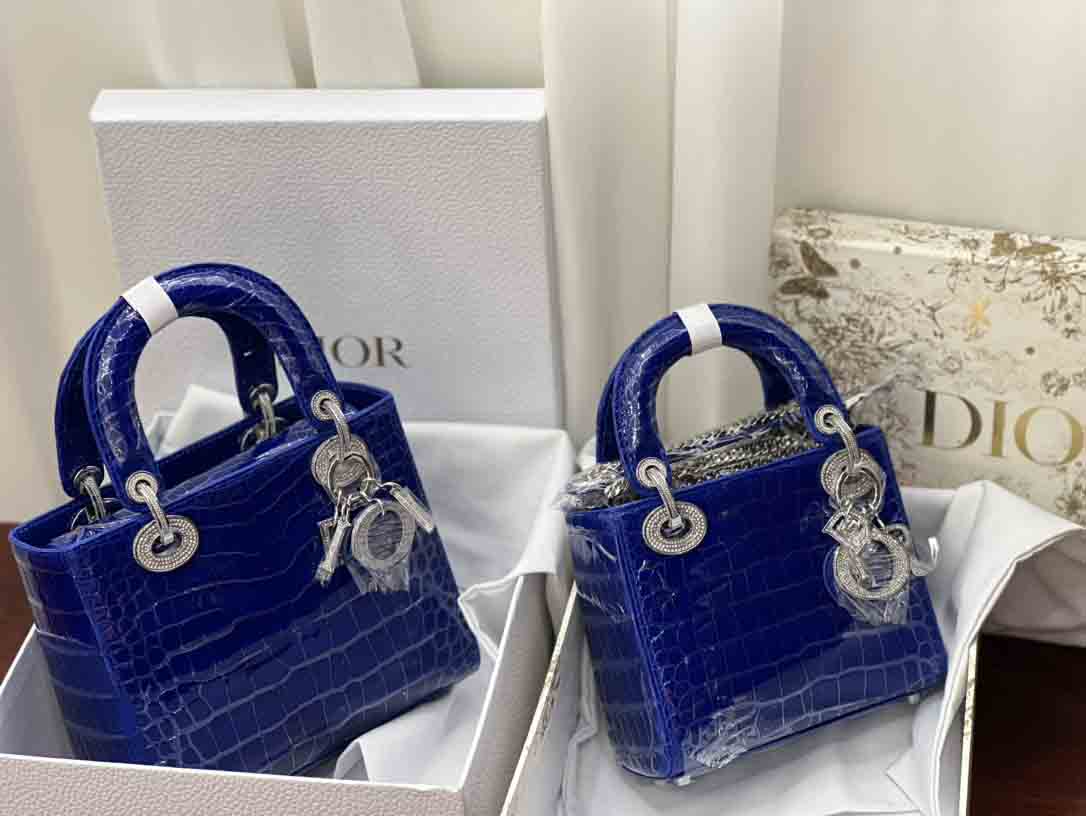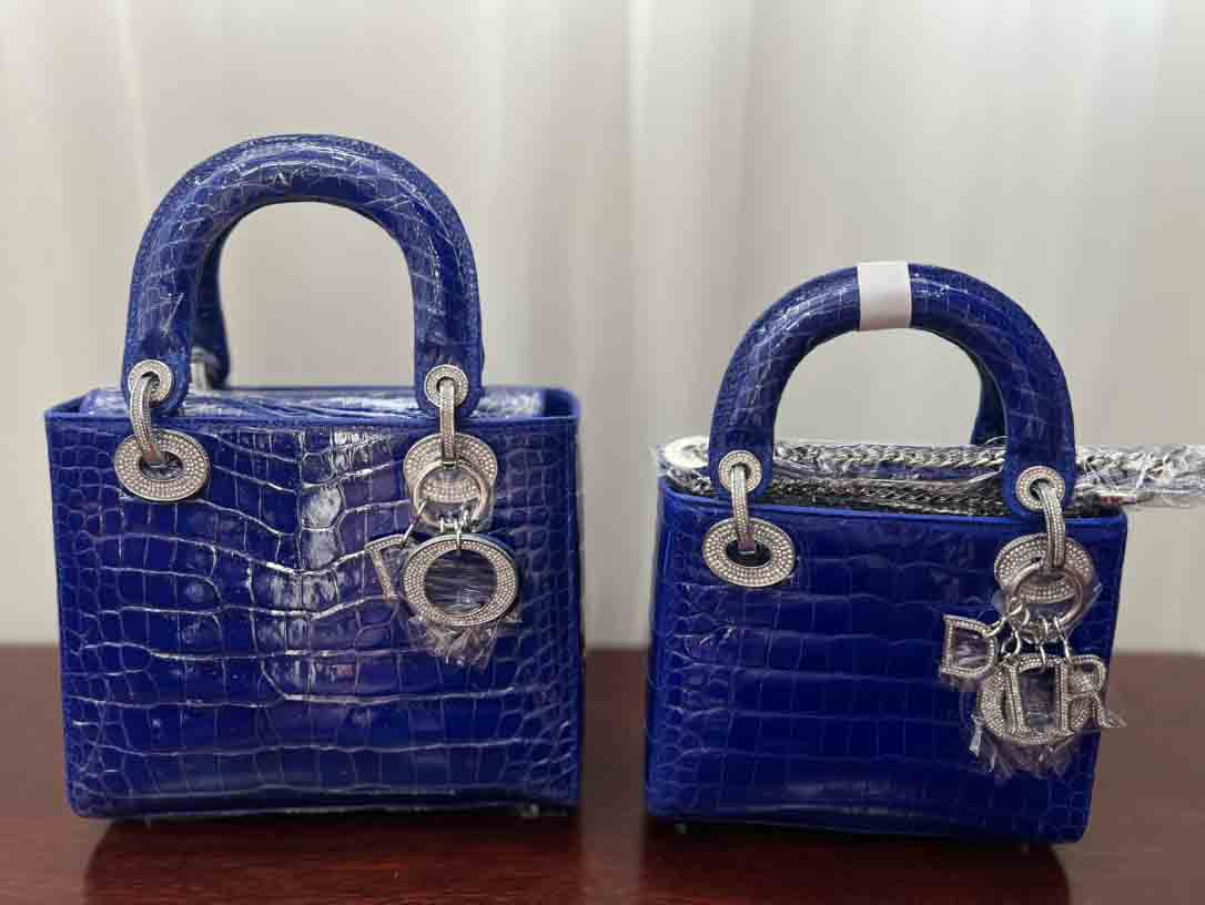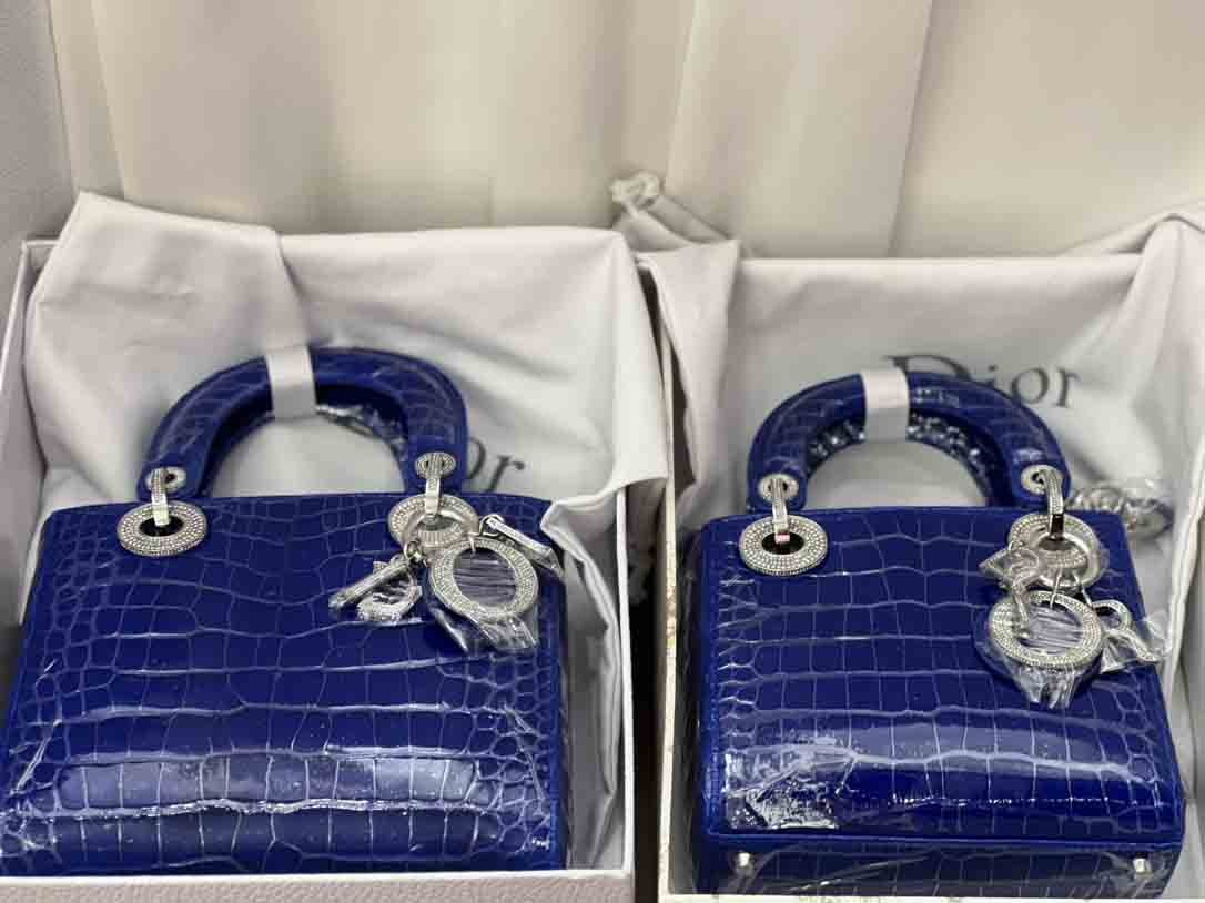 迪奥鳄鱼皮的亮面和雾面的戴妃包包的对比,两款都是水墨蓝。