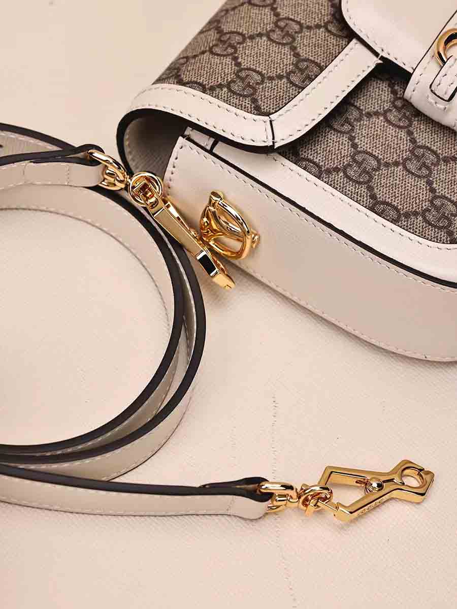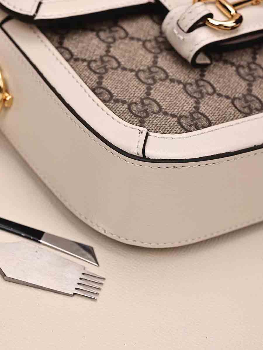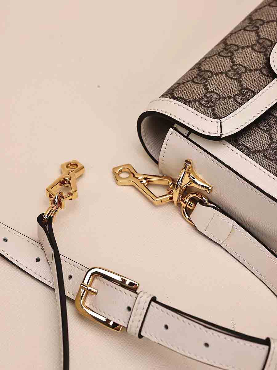 标志性的金属马衔扣搭配经典双G图案,结合棕色皮革滚边,把复古时髦感拿捏的恰到好处。有两根肩带,皮肩带+经典红绿肩带,单肩、斜挎都可以根据每天的OOTD搭配肩带,一包两用,超级贴心。是一种对古老范典的刻意效仿以性志标元素马衔扣设计配搭肩挎式手袋型造向50代年古驰经典包款致敬。