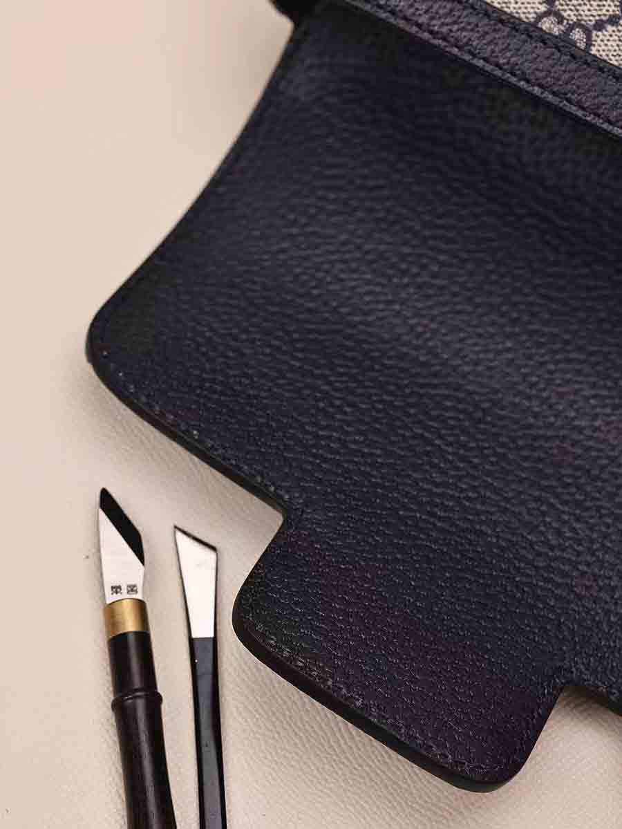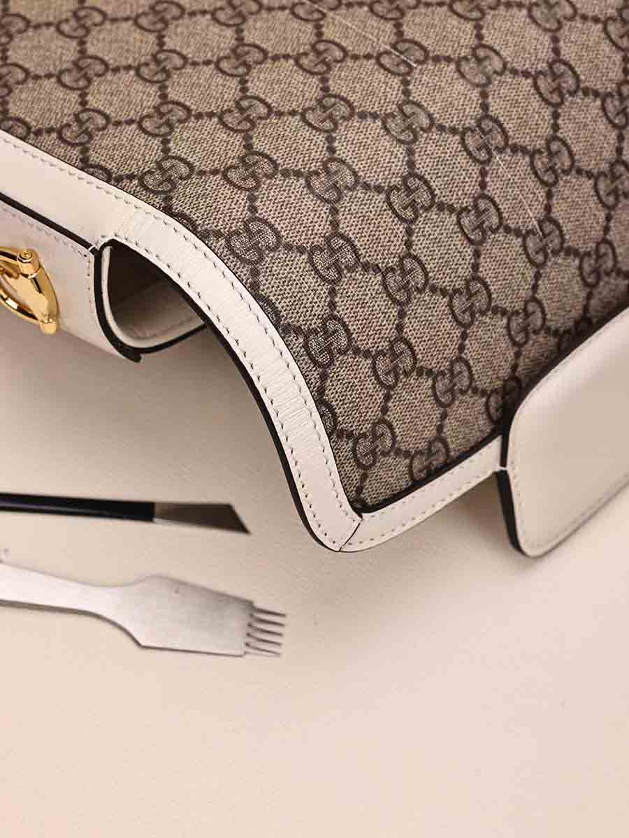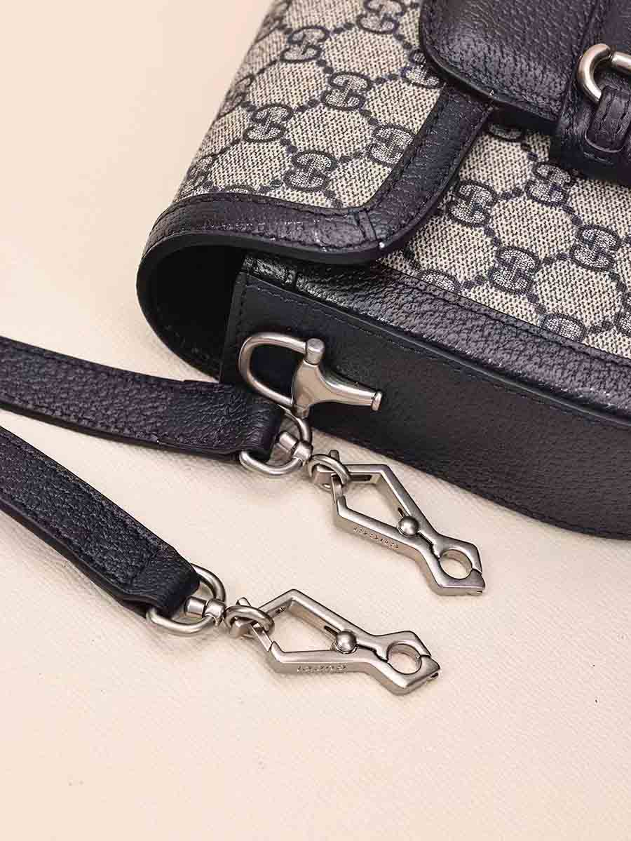 标志性的金属马衔扣搭配经典双G图案,结合棕色皮革滚边,把复古时髦感拿捏的恰到好处。有两根肩带,皮肩带+经典红绿肩带,单肩、斜挎都可以根据每天的OOTD搭配肩带,一包两用,超级贴心。是一种对古老范典的刻意效仿以性志标元素马衔扣设计配搭肩挎式手袋型造向50代年古驰经典包款致敬。