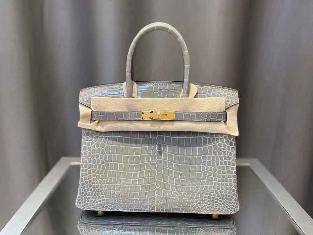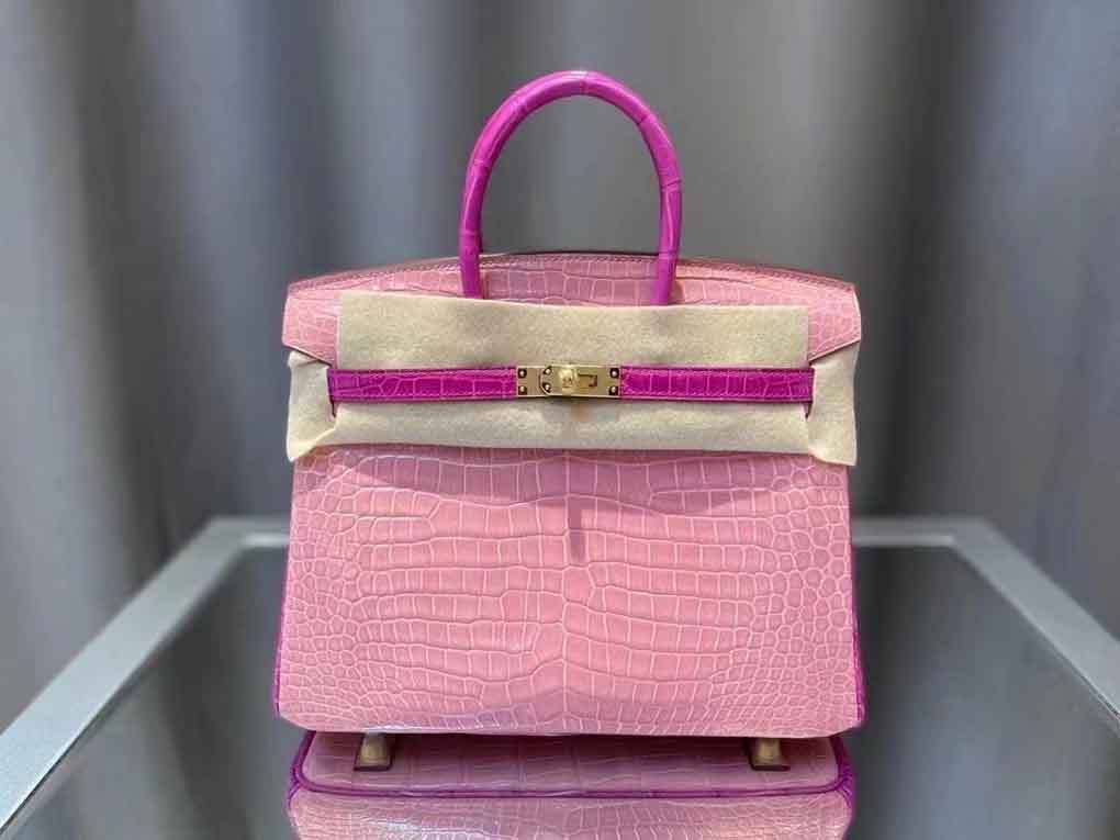 手工定制进口真鳄鱼皮铂金包25cm手提包。鳄鱼皮中最顶级的倒V鳄鱼皮黑金铂金包!拎上它,穿个破背心都是女王陛下 倒v鳄鱼皮是皮革中的黄金,顶级而奢华。