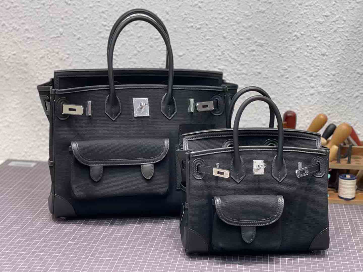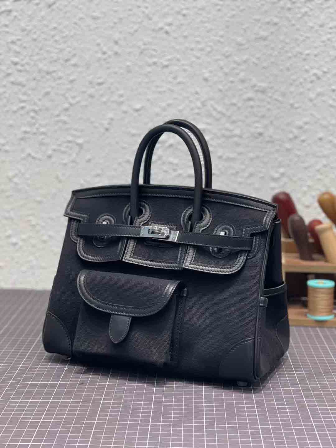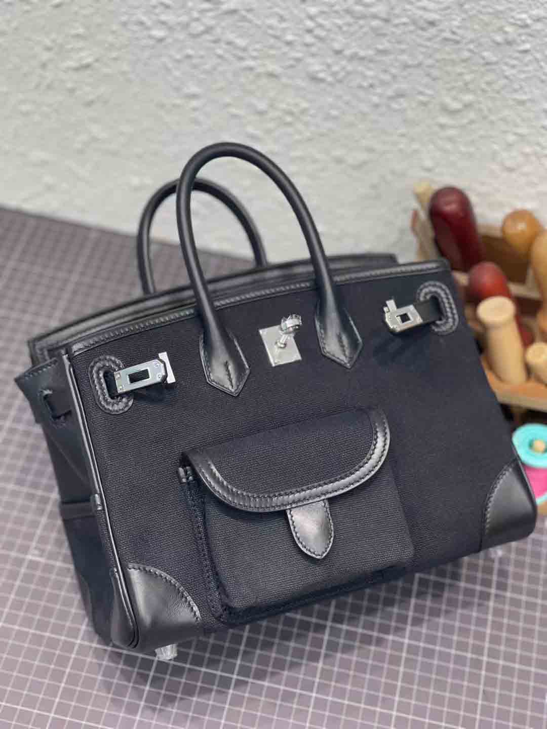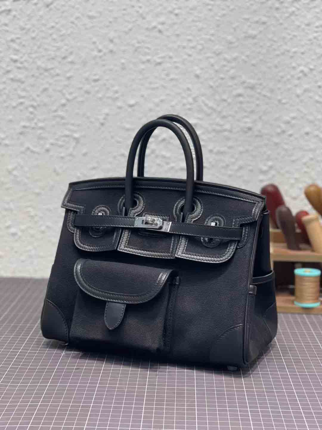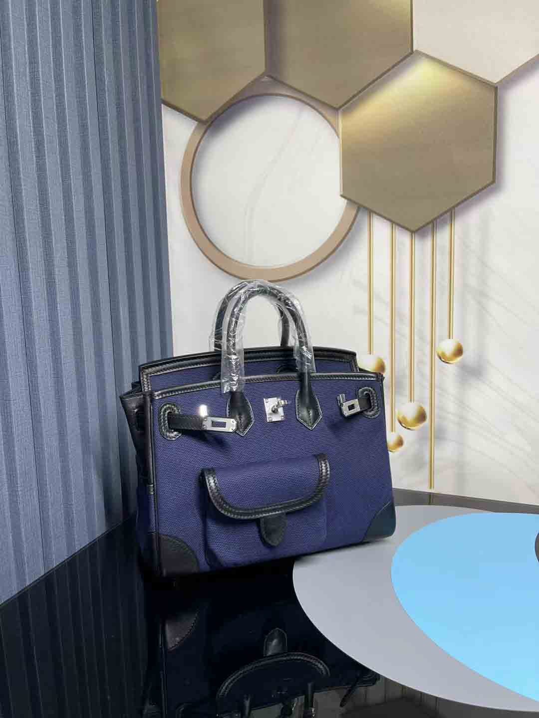 H Birkin 铂金包在2023春夏推出全新 Cargo 25 包型,从军装中汲取灵感,采用海军蓝色 Goéland 帆布搭配黑色 Swift 小牛皮缝制而成,并以25厘米小巧尺寸登场,包身增设功能性口袋细节是最独特之处。