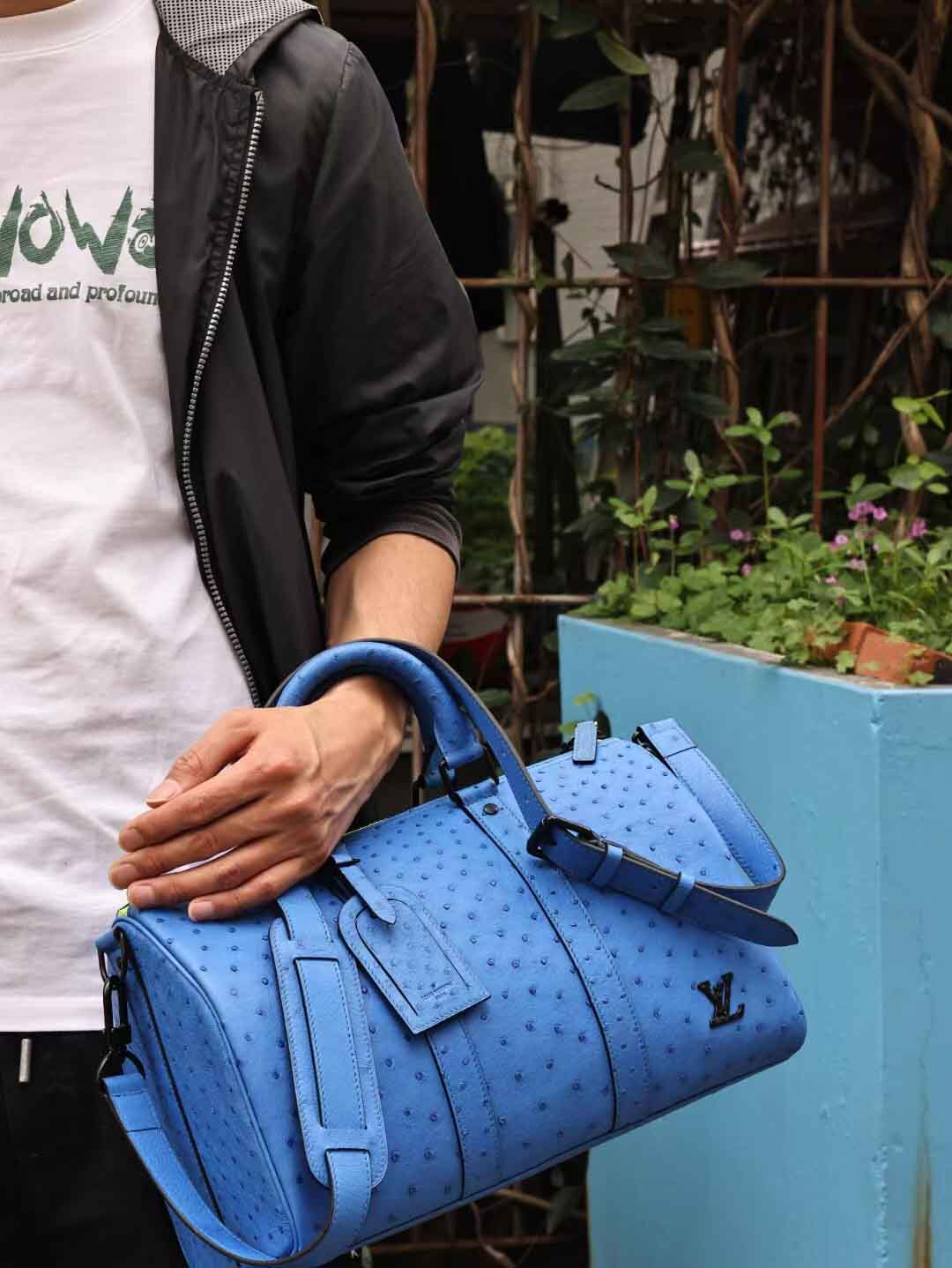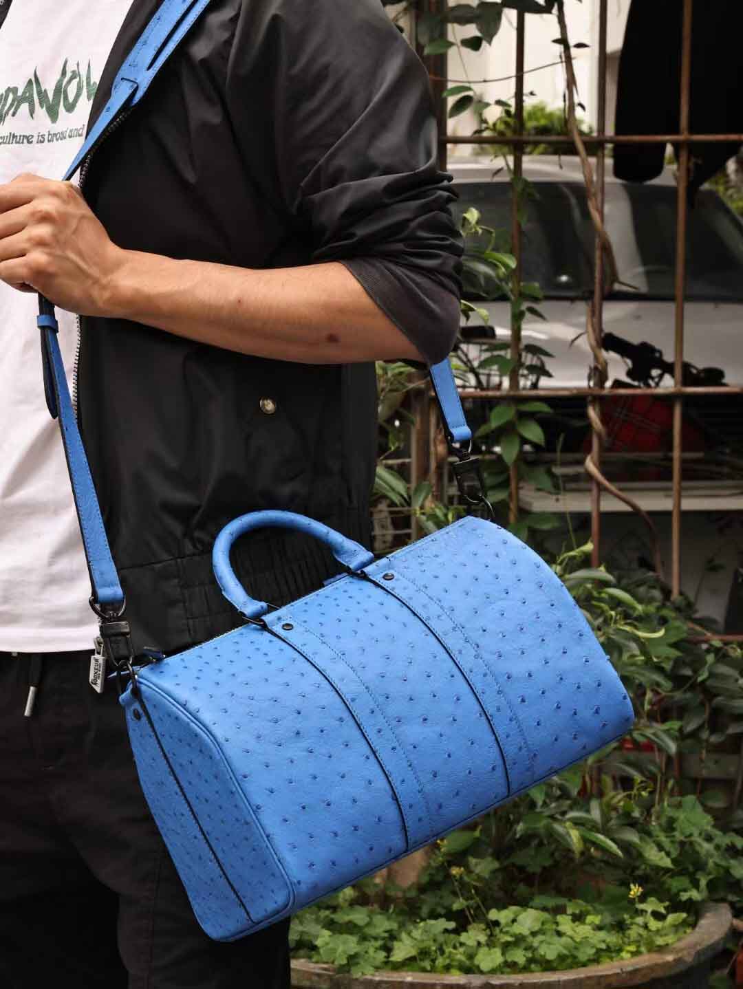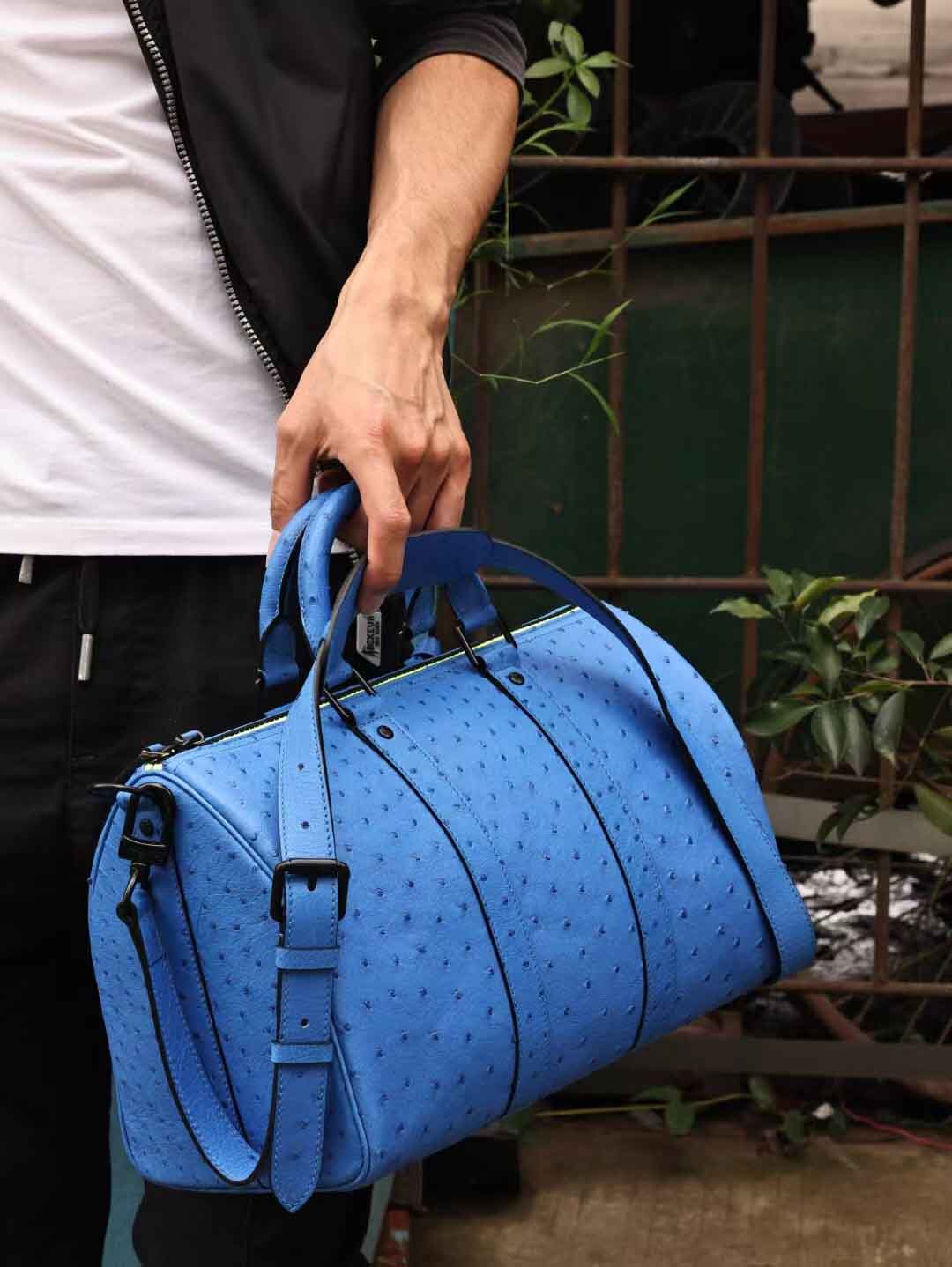 Keepall35,电蓝色鸵鸟皮,实拍现货。