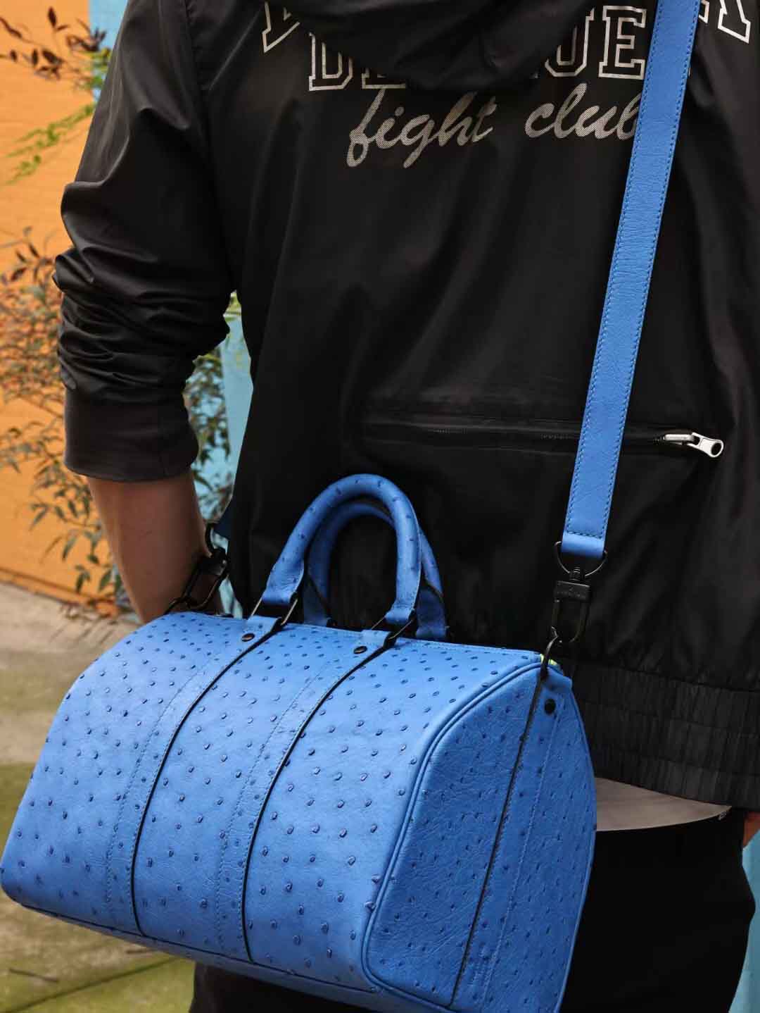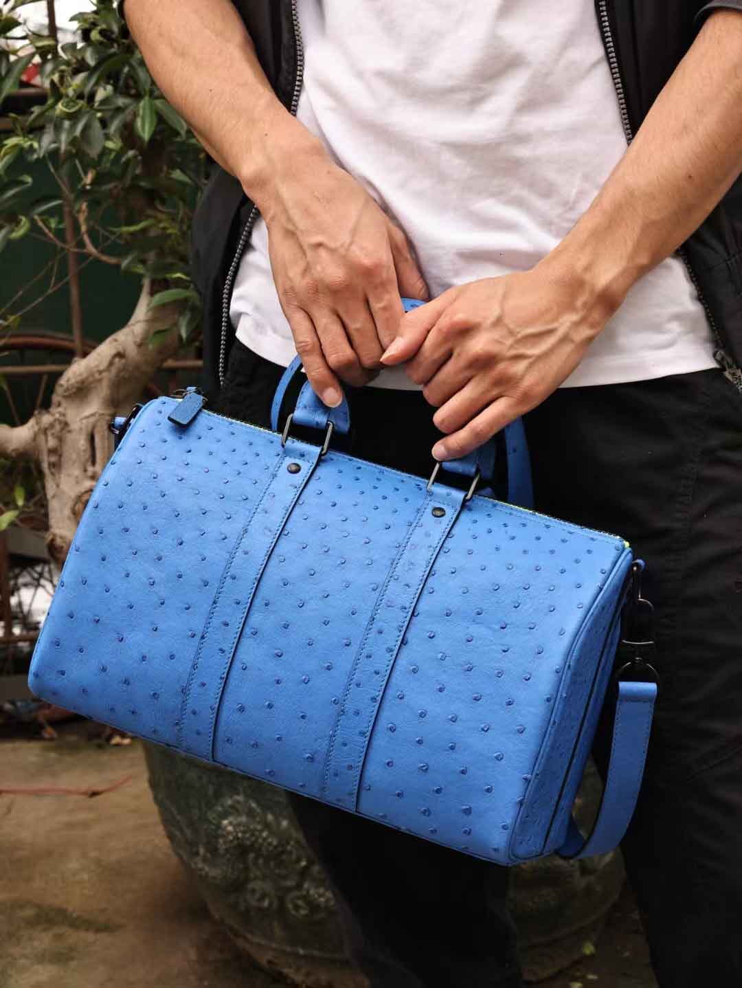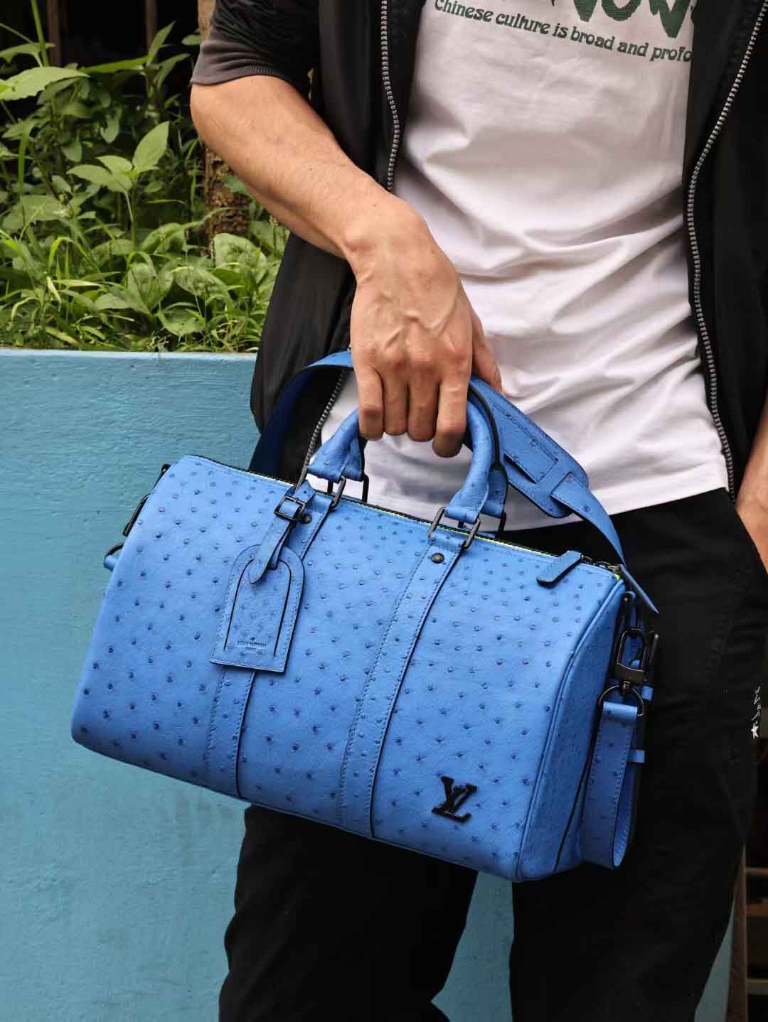 Keepall35,电蓝色鸵鸟皮,实拍现货。