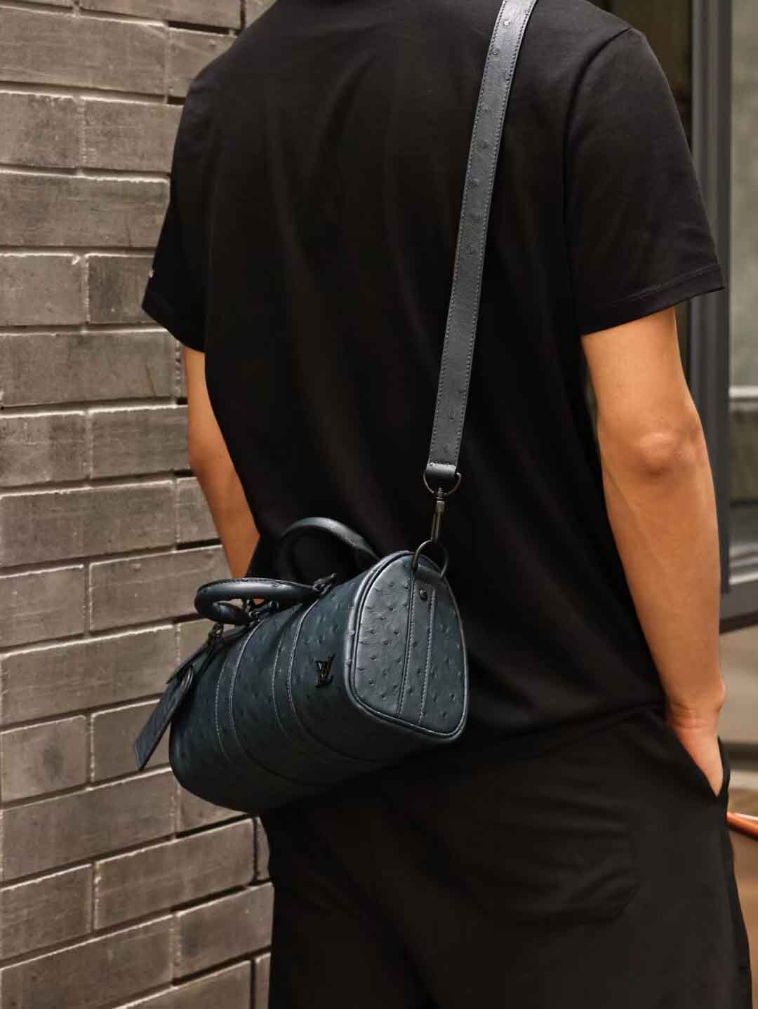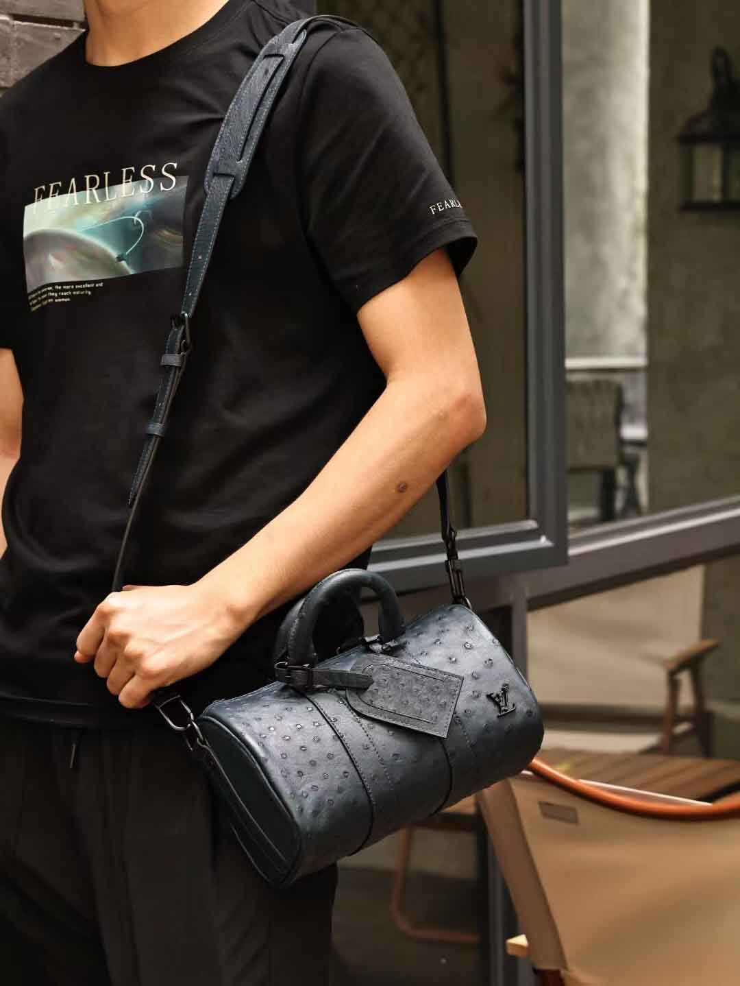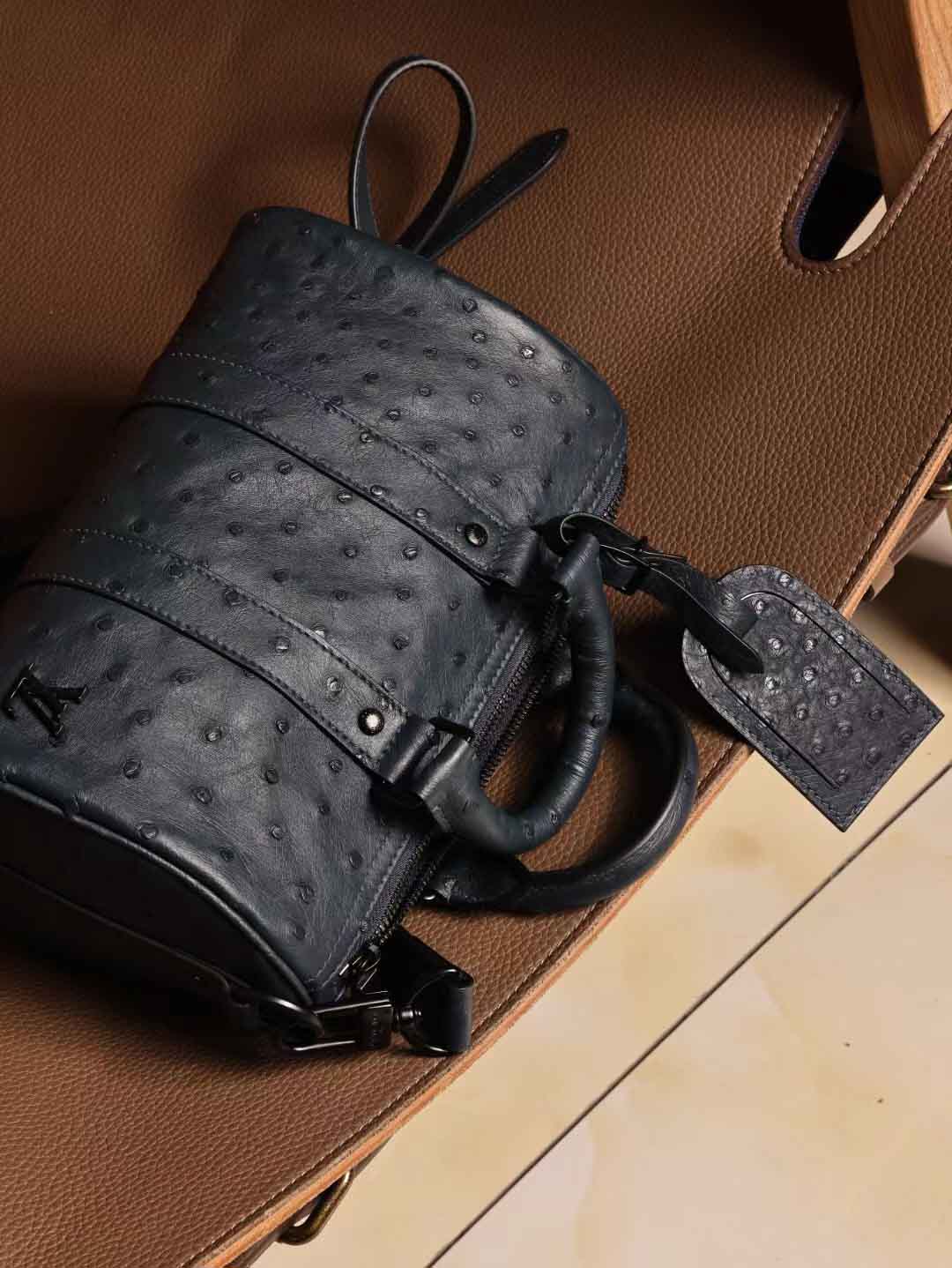 Keepall 25, 午夜蓝鸵鸟皮,实物拍摄