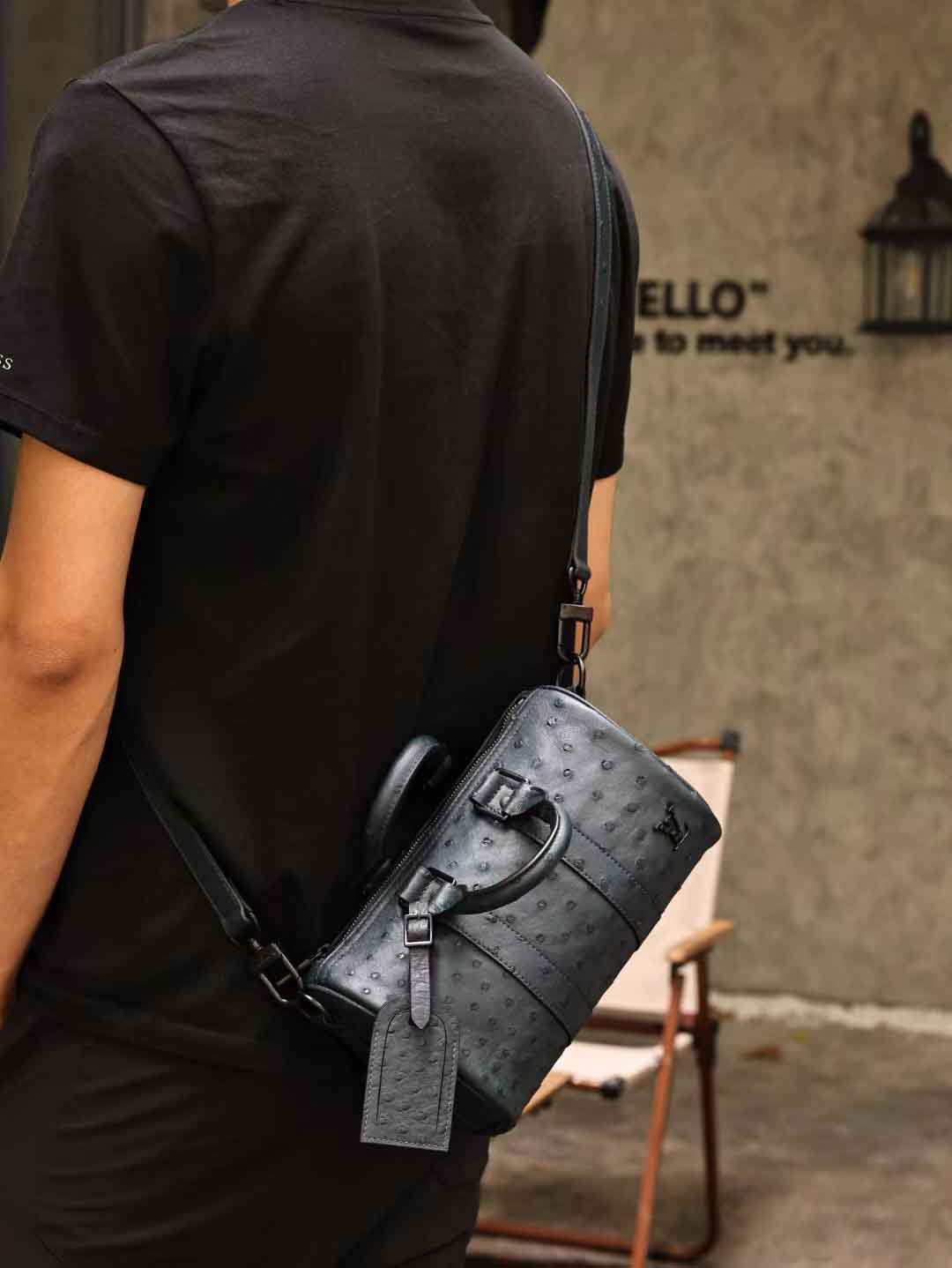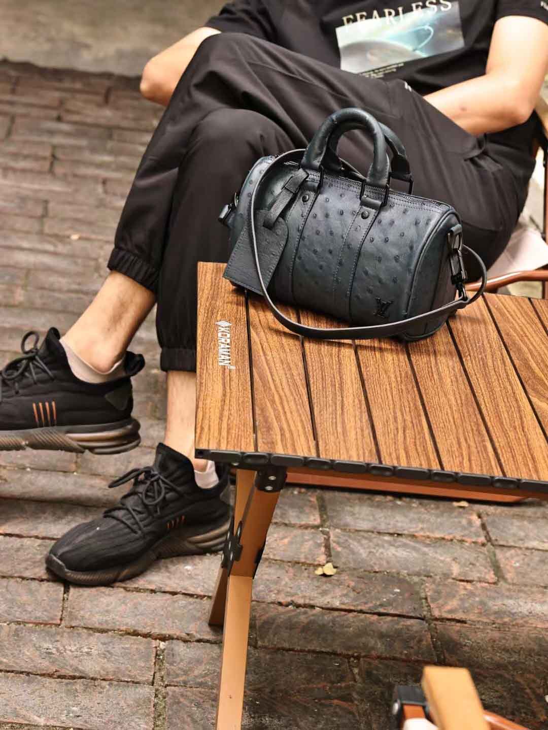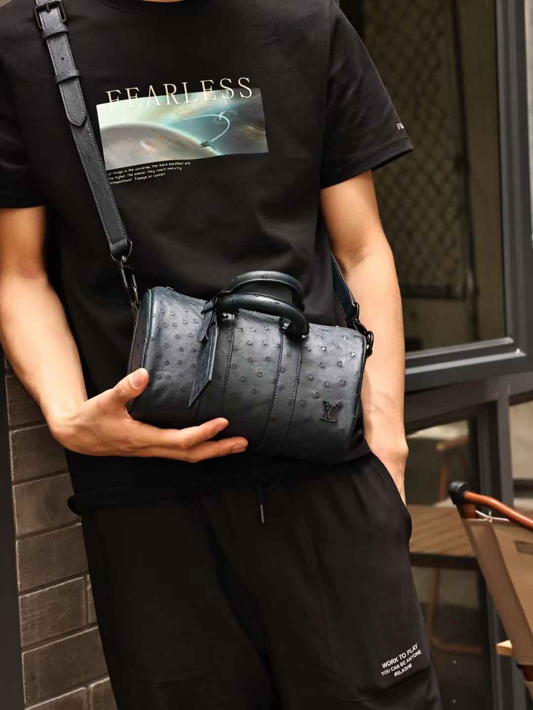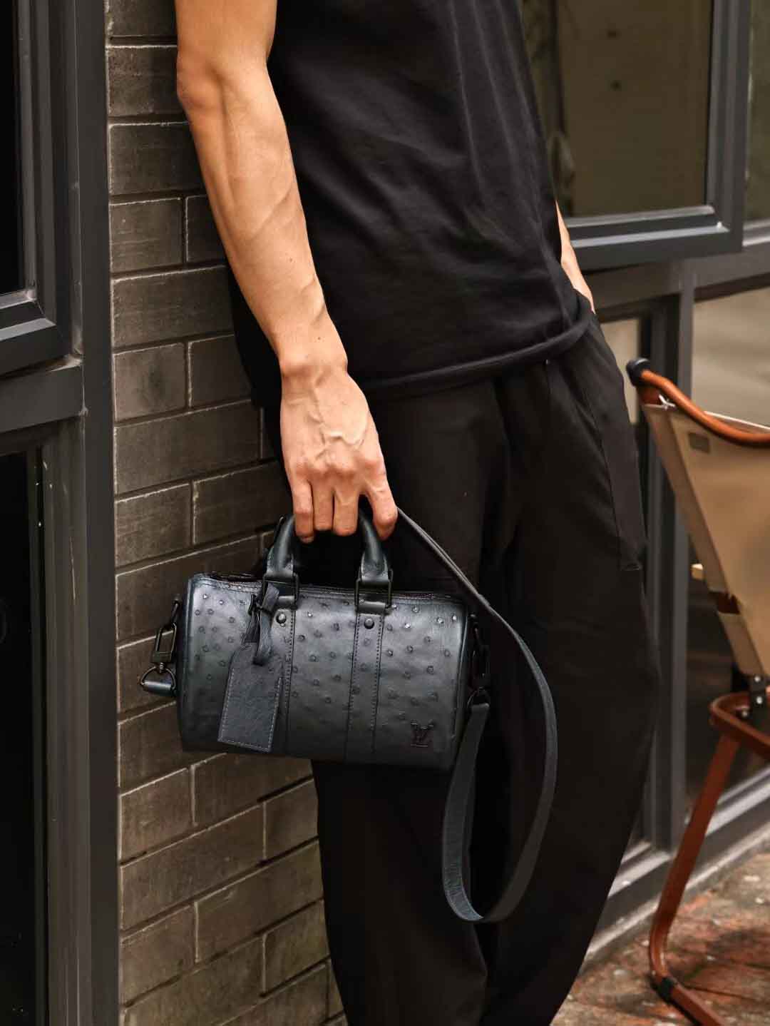 Keepall 25, 午夜蓝鸵鸟皮,实物拍摄