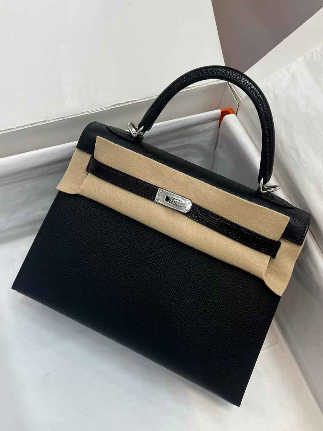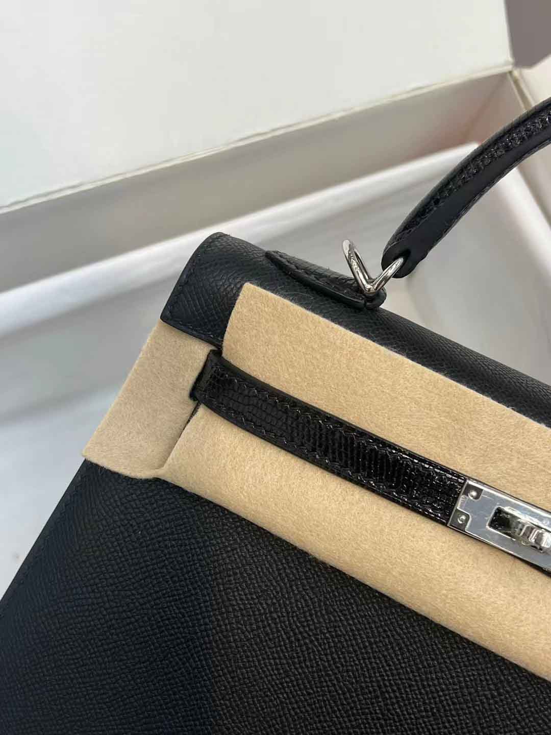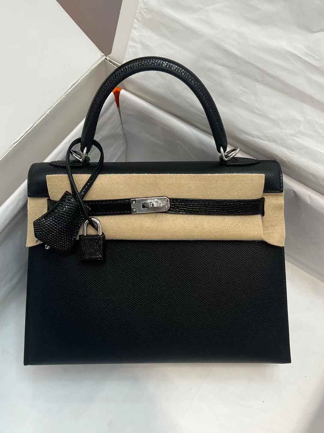 凯莉25CM. 金扣 掌纹皮皮配蜥蜴皮 现货供应!蜡线手缝