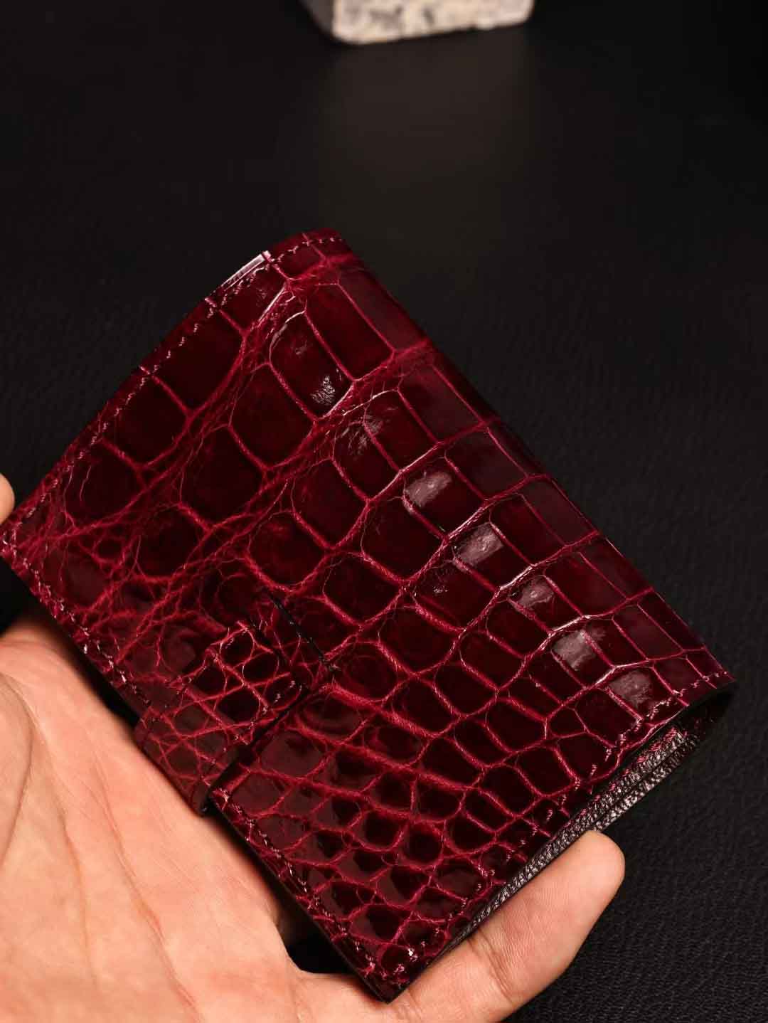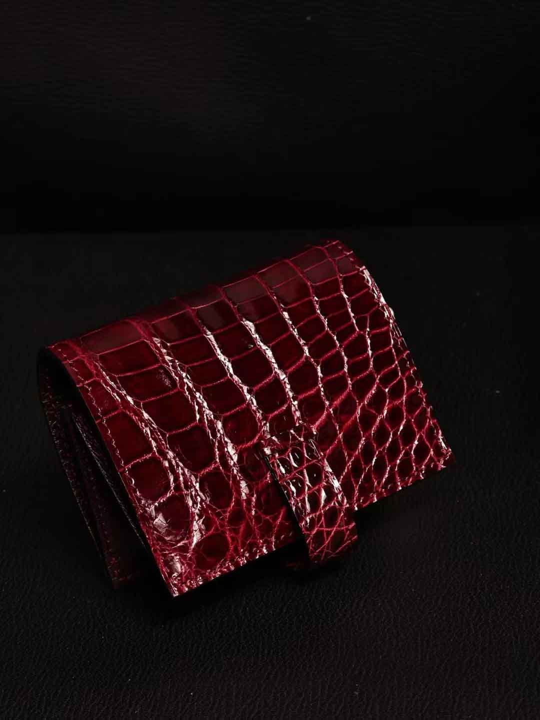Bearn卡包,酒红色亮面鳄鱼皮,实拍现货。