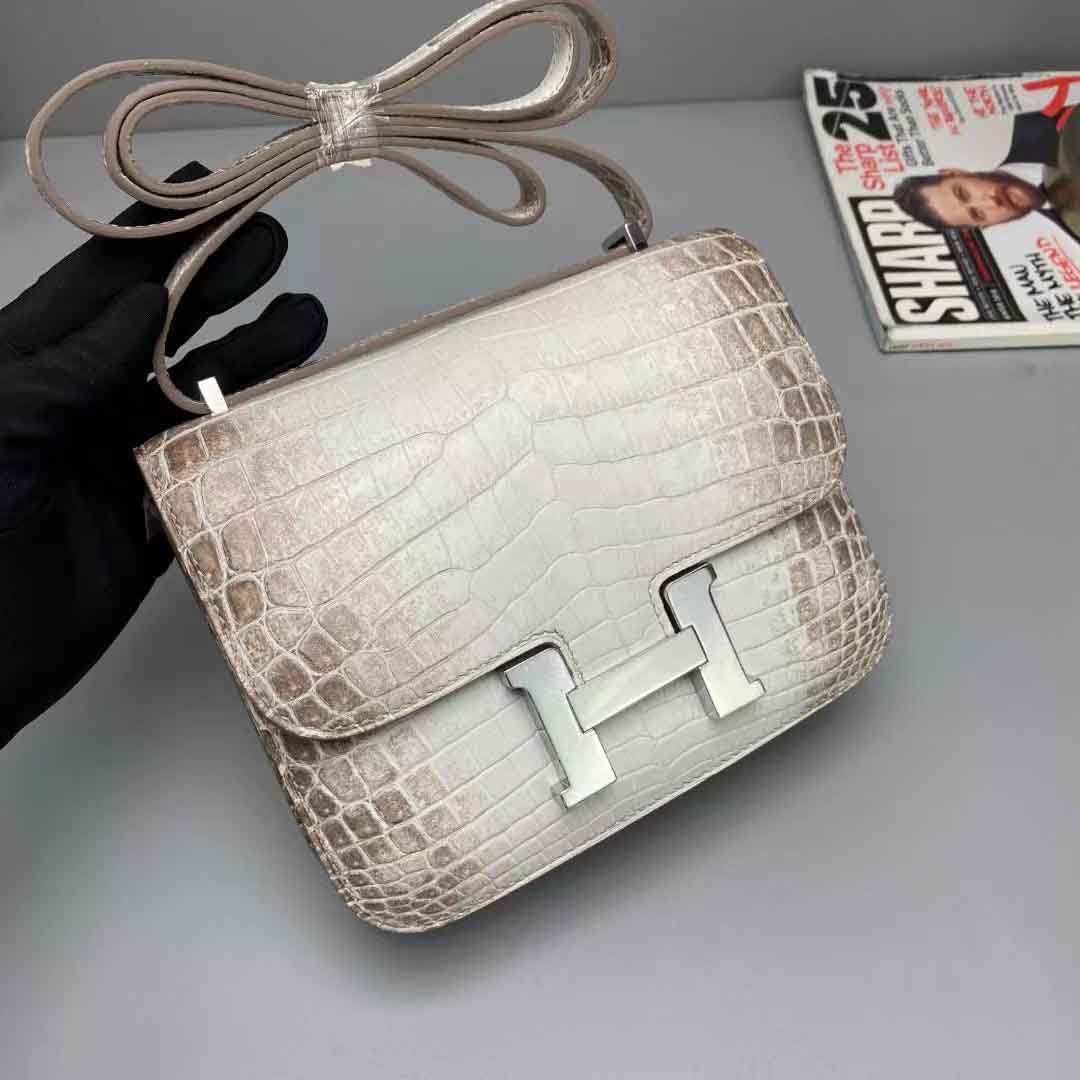 constance 19cm 喜马拉雅白尼罗鳄 手工缝制 现货银扣空姐包定做工作工厂