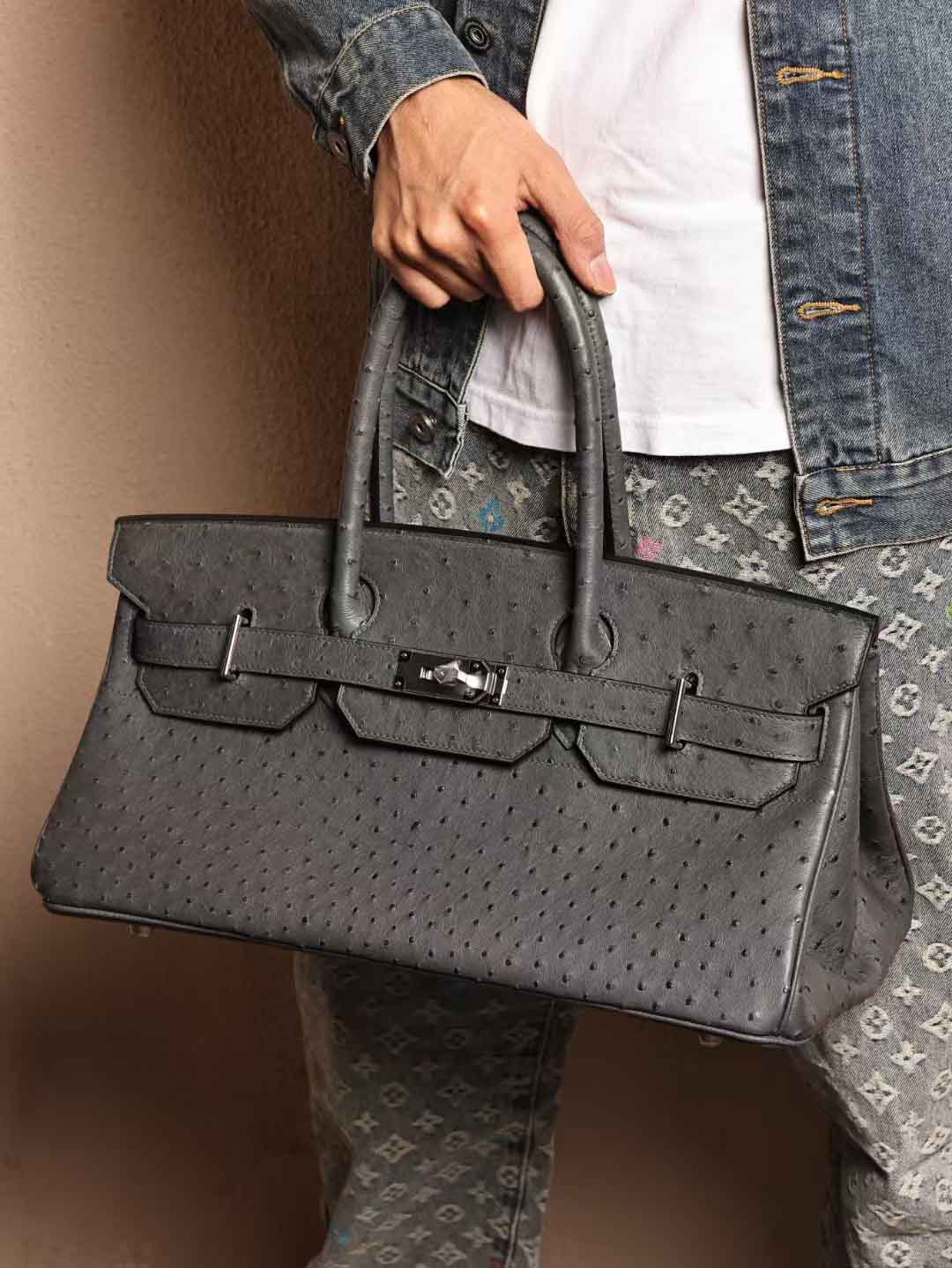 Shoulder Hac42,南非KK石墨灰鸵鸟皮,客订出货。
