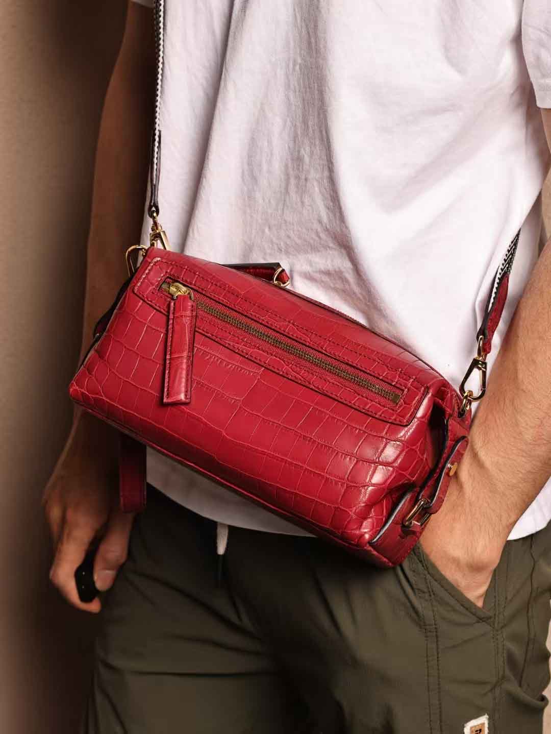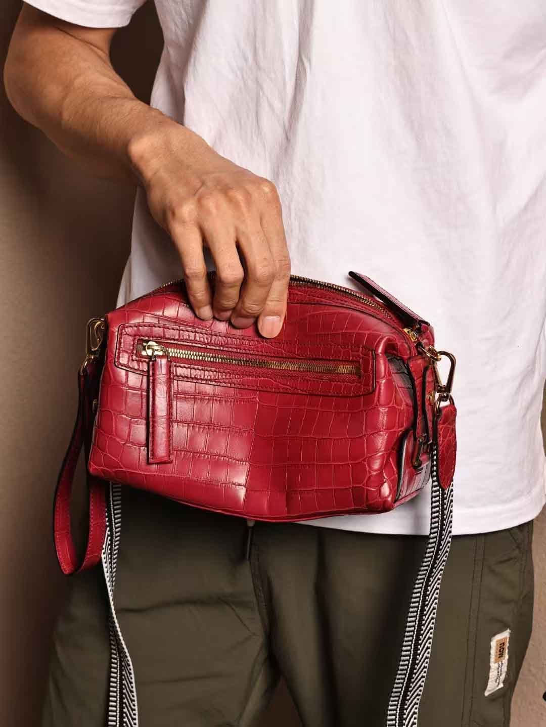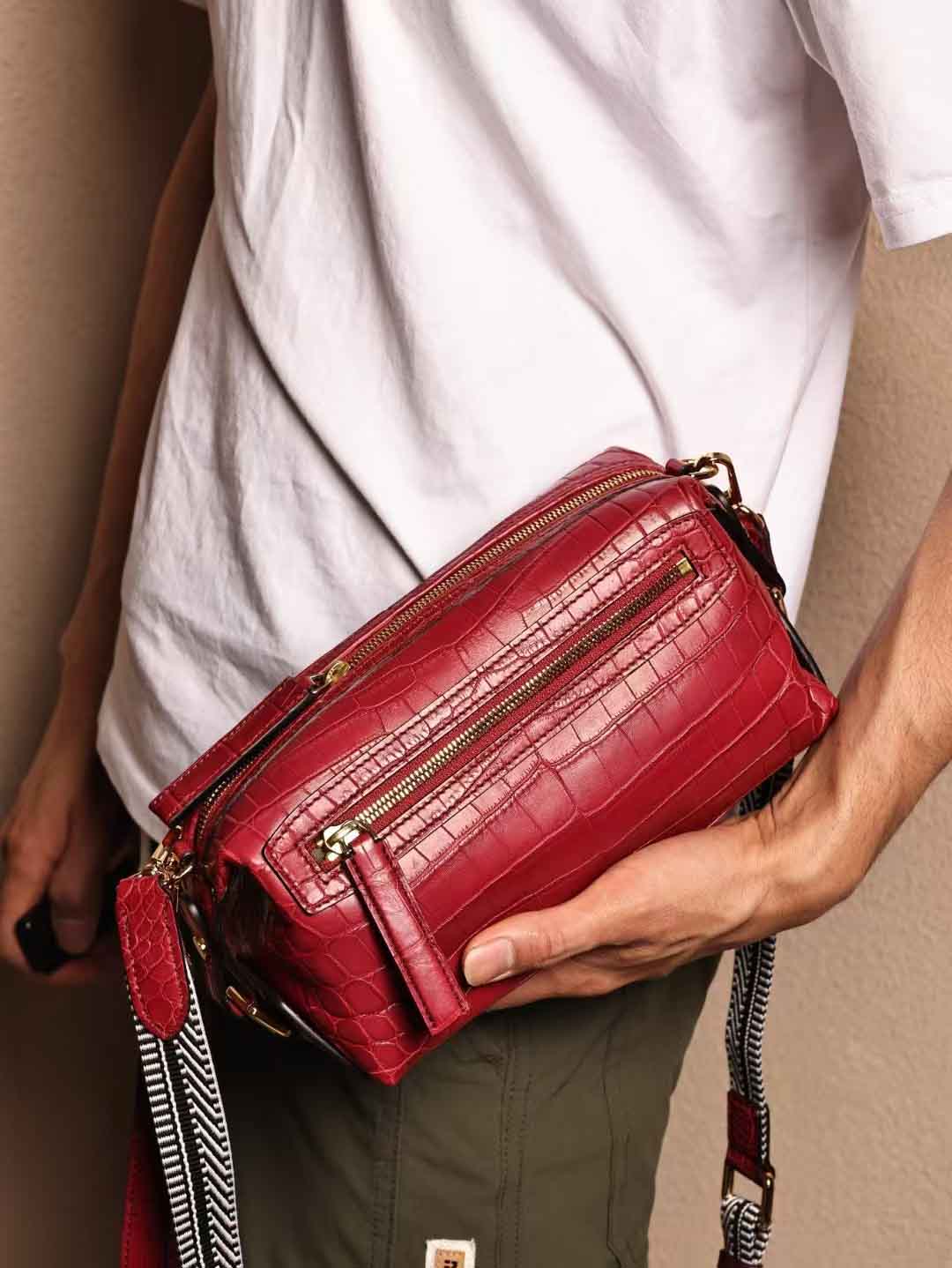 爆款多功能收纳包,酒红色哑光尼罗鳄单肩包,实拍现货