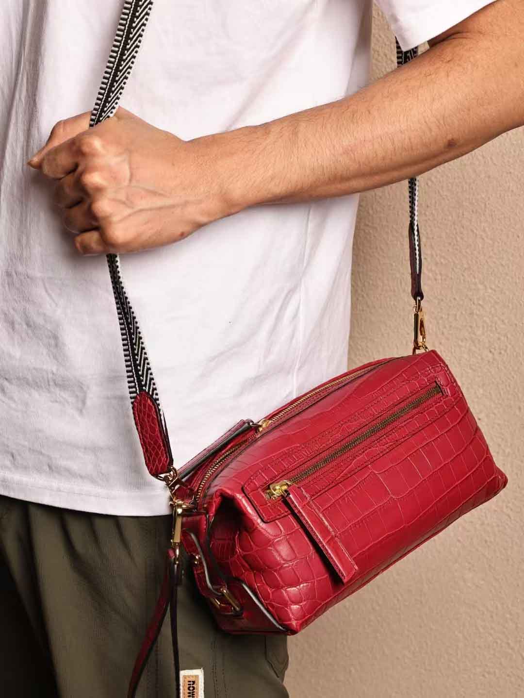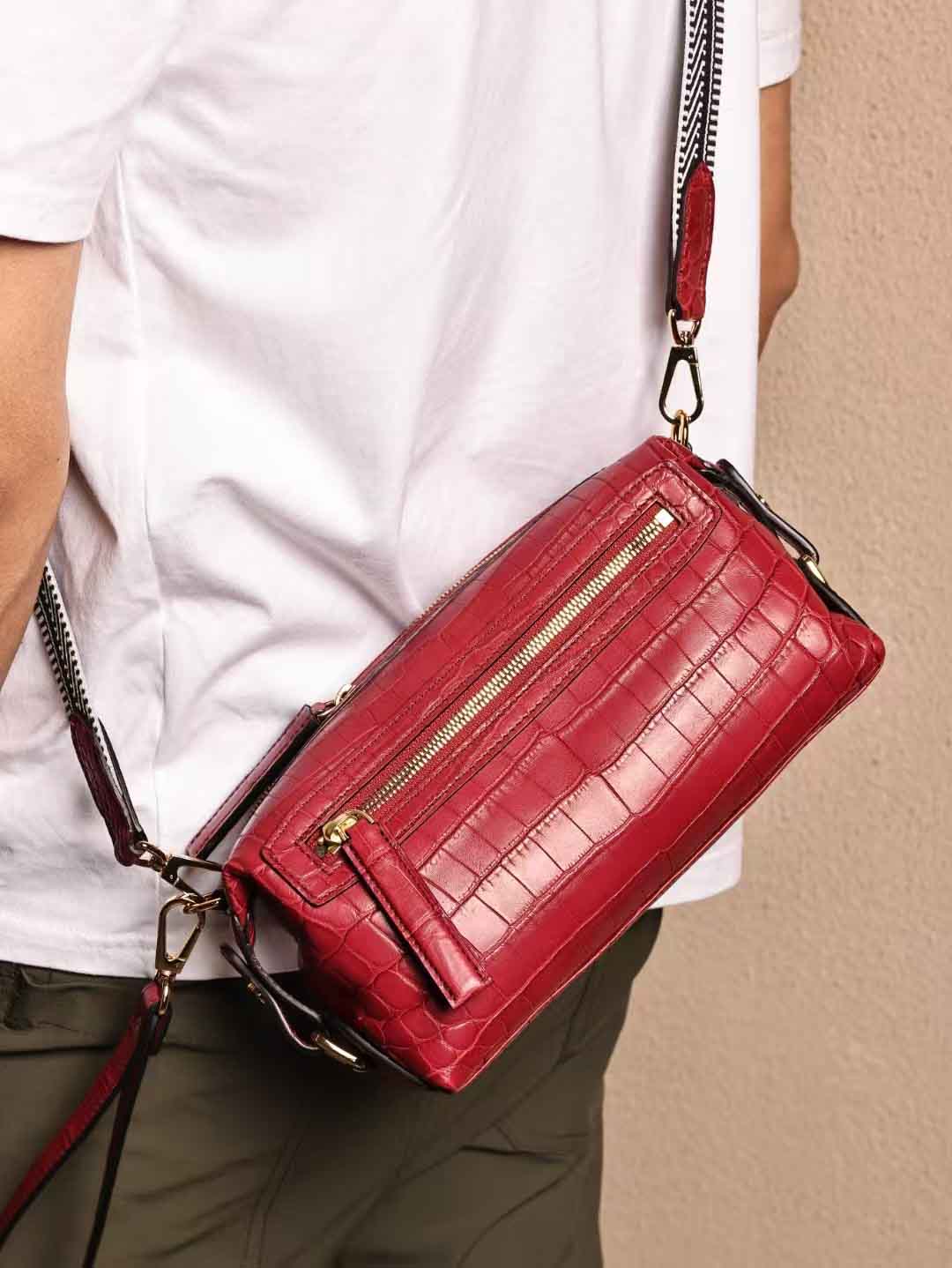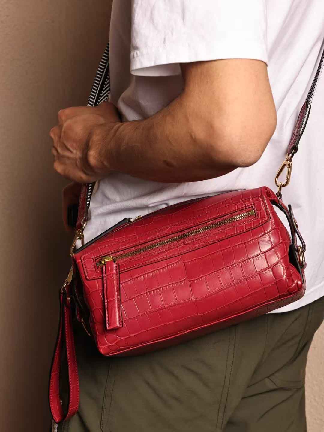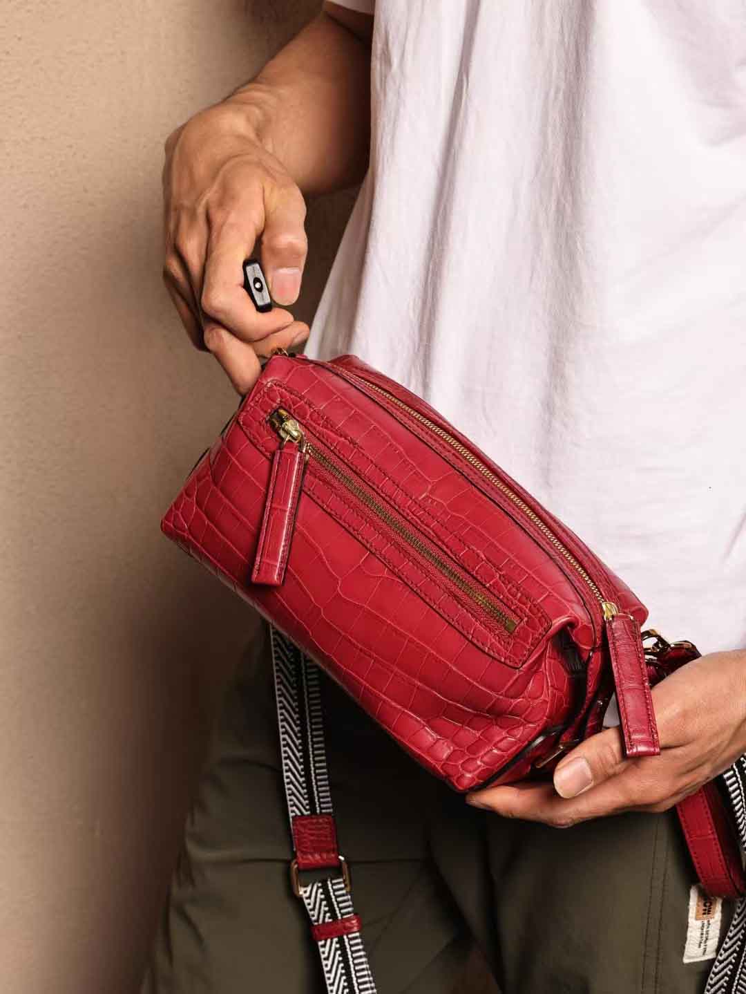爆款多功能收纳包,酒红色哑光尼罗鳄单肩包,实拍现货