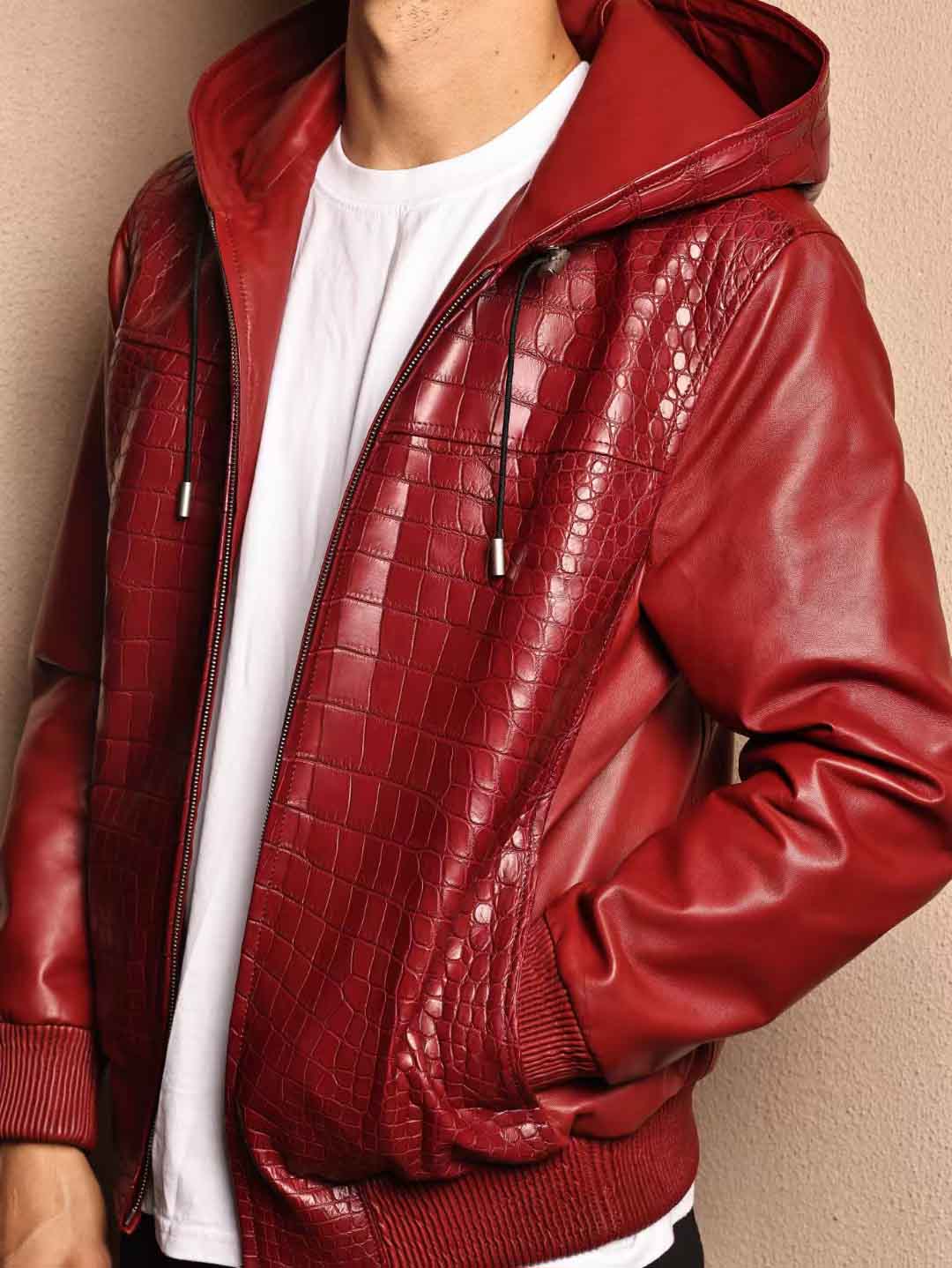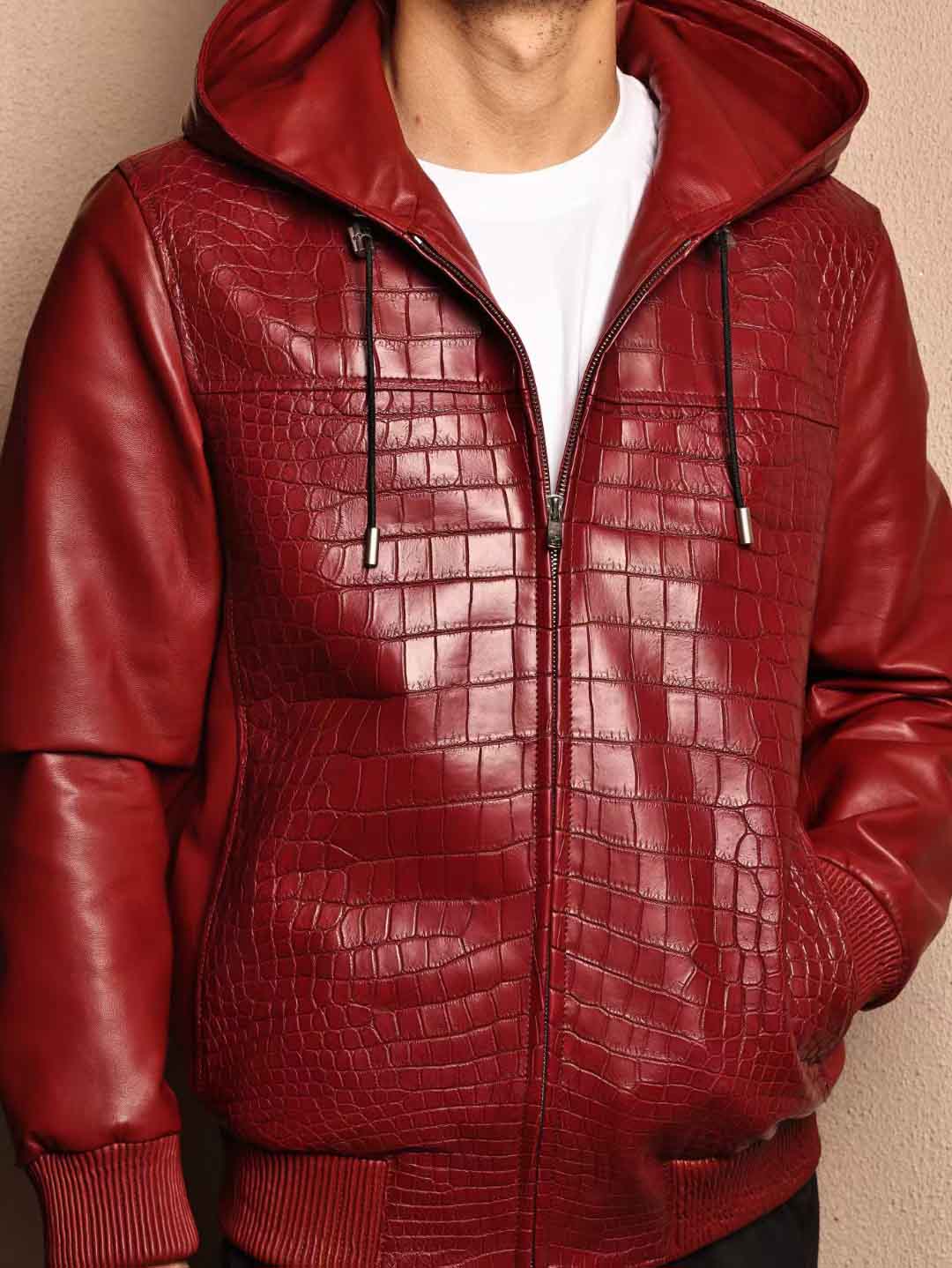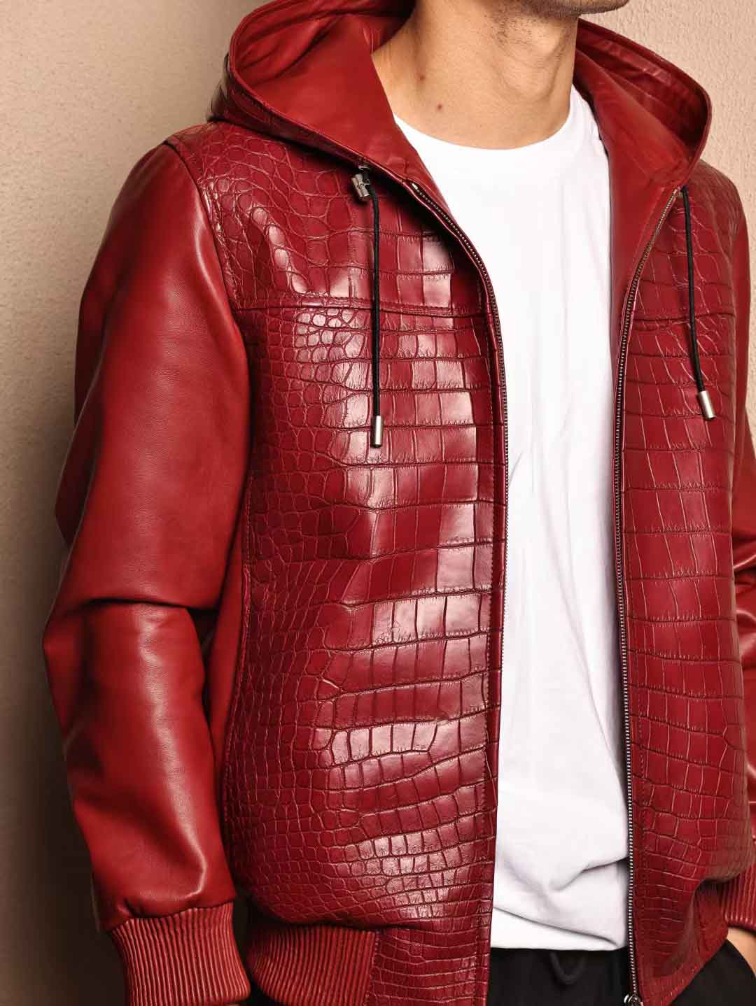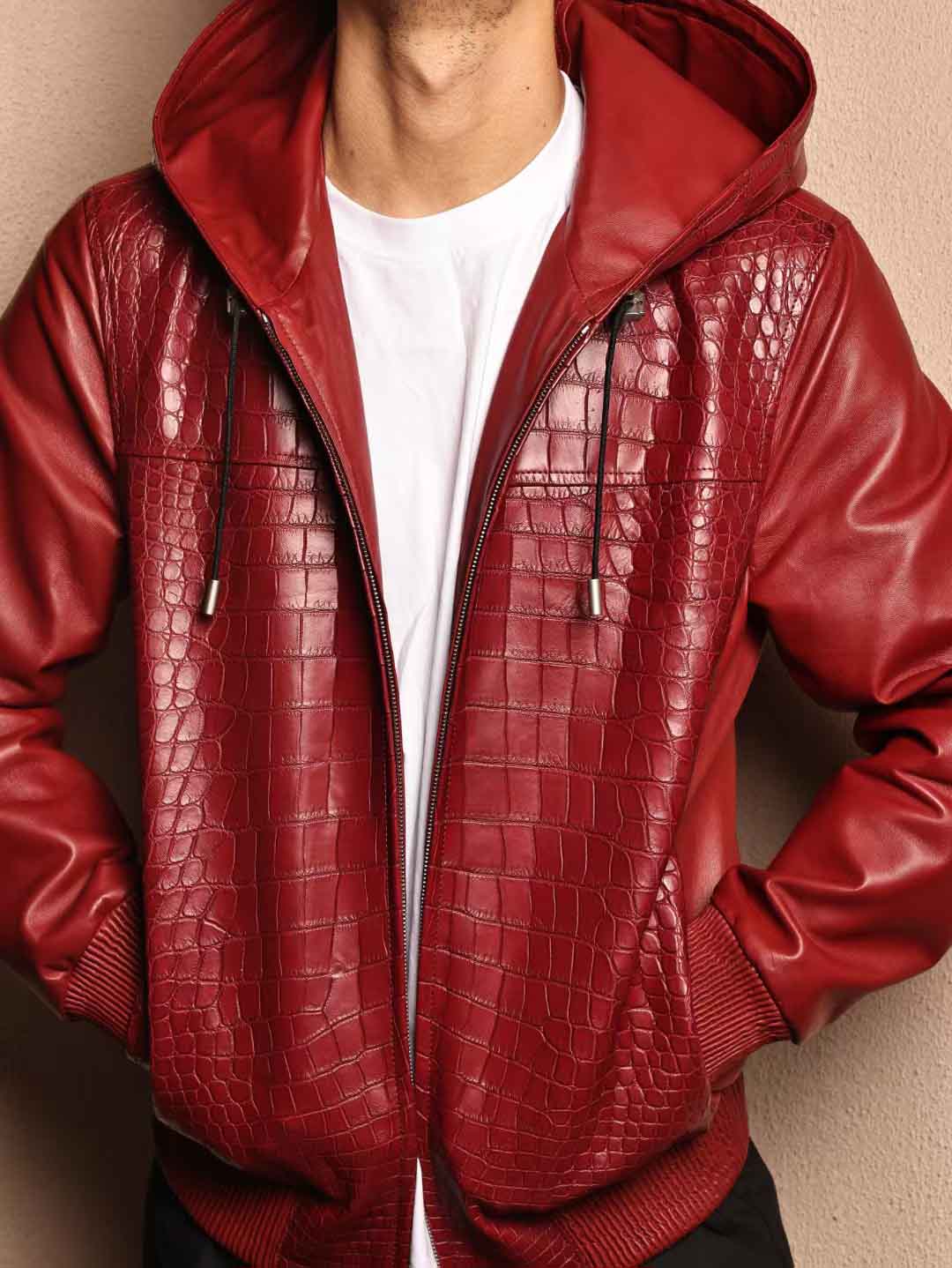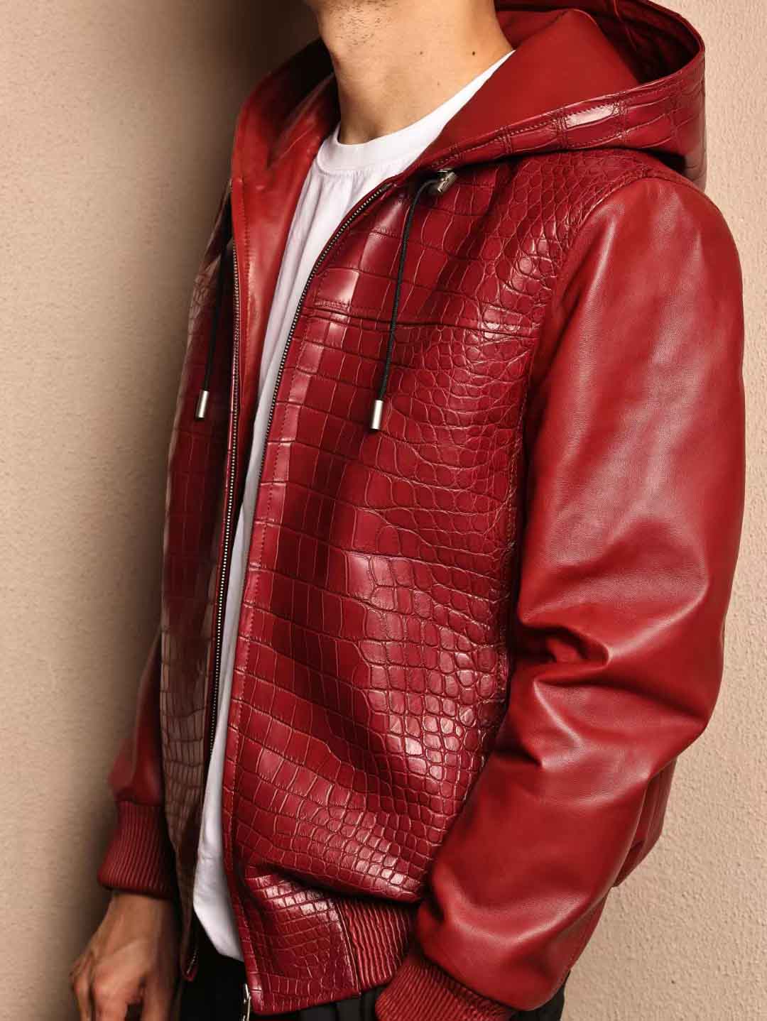 红色鳄鱼皮帽衫新配色风衣,48码B版,实拍现货