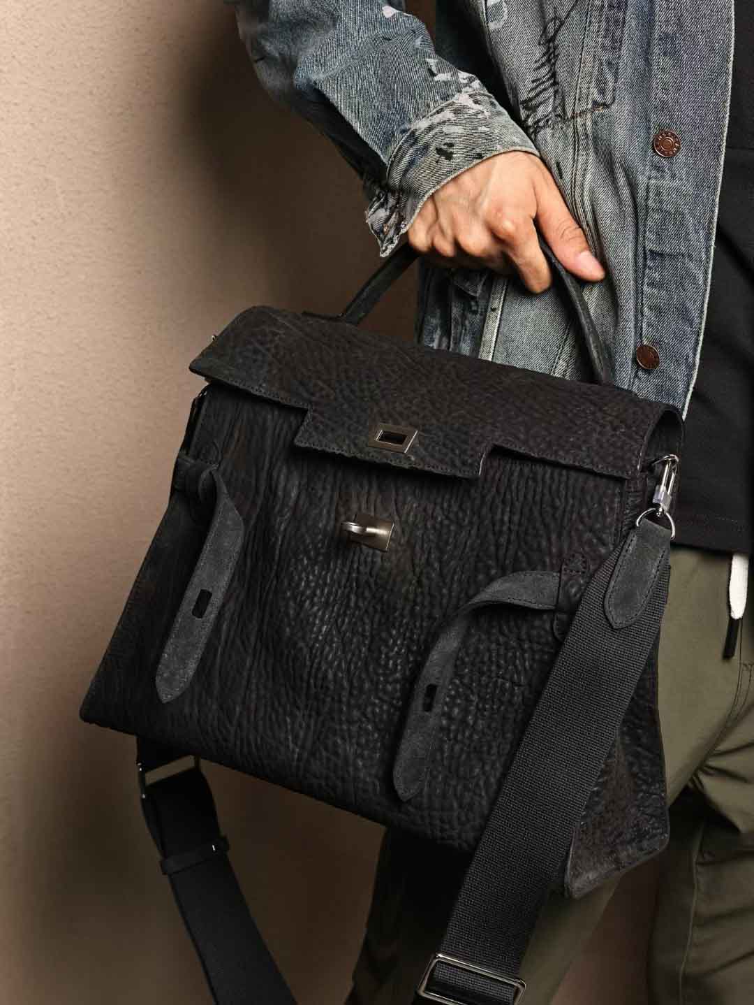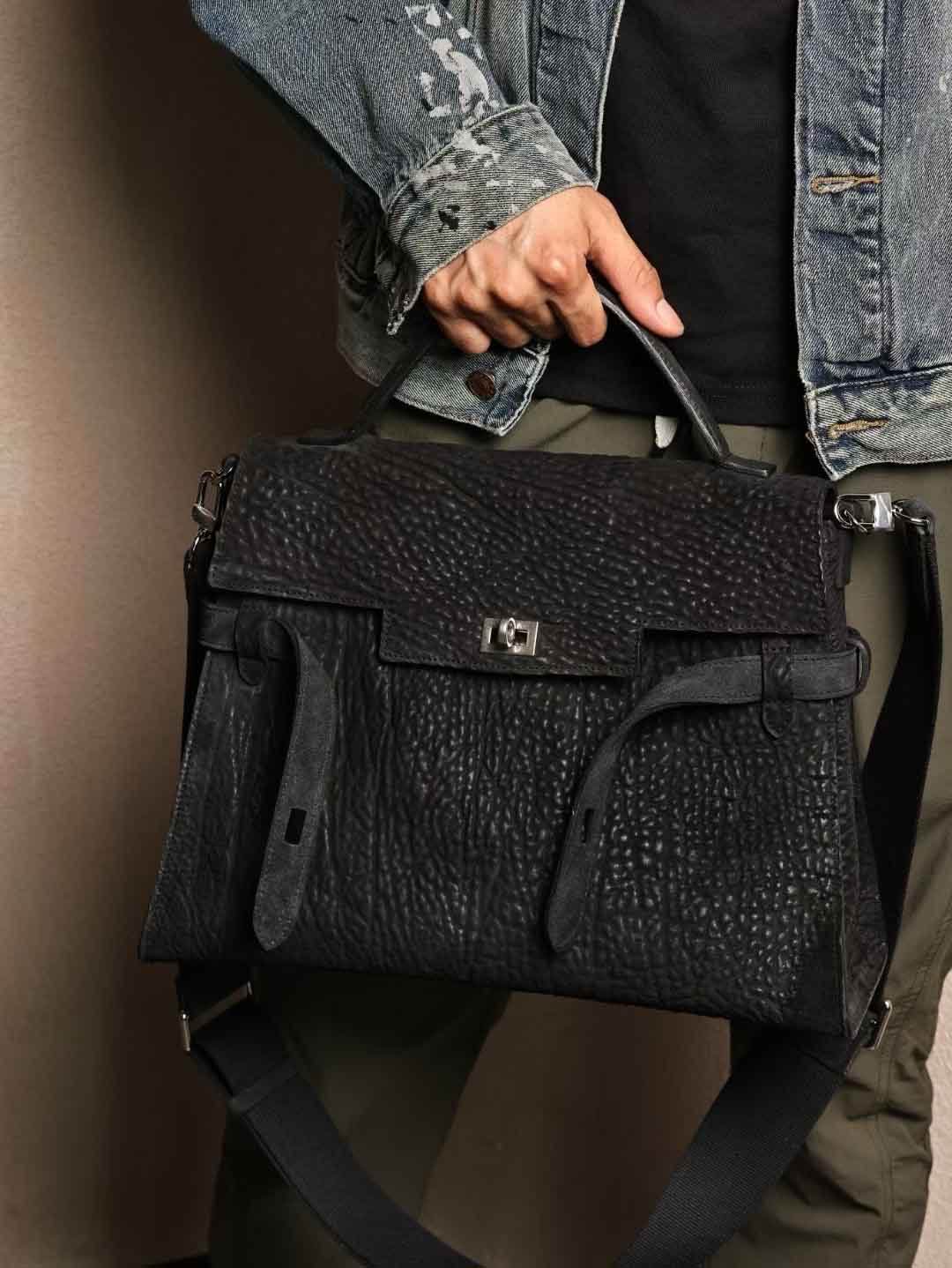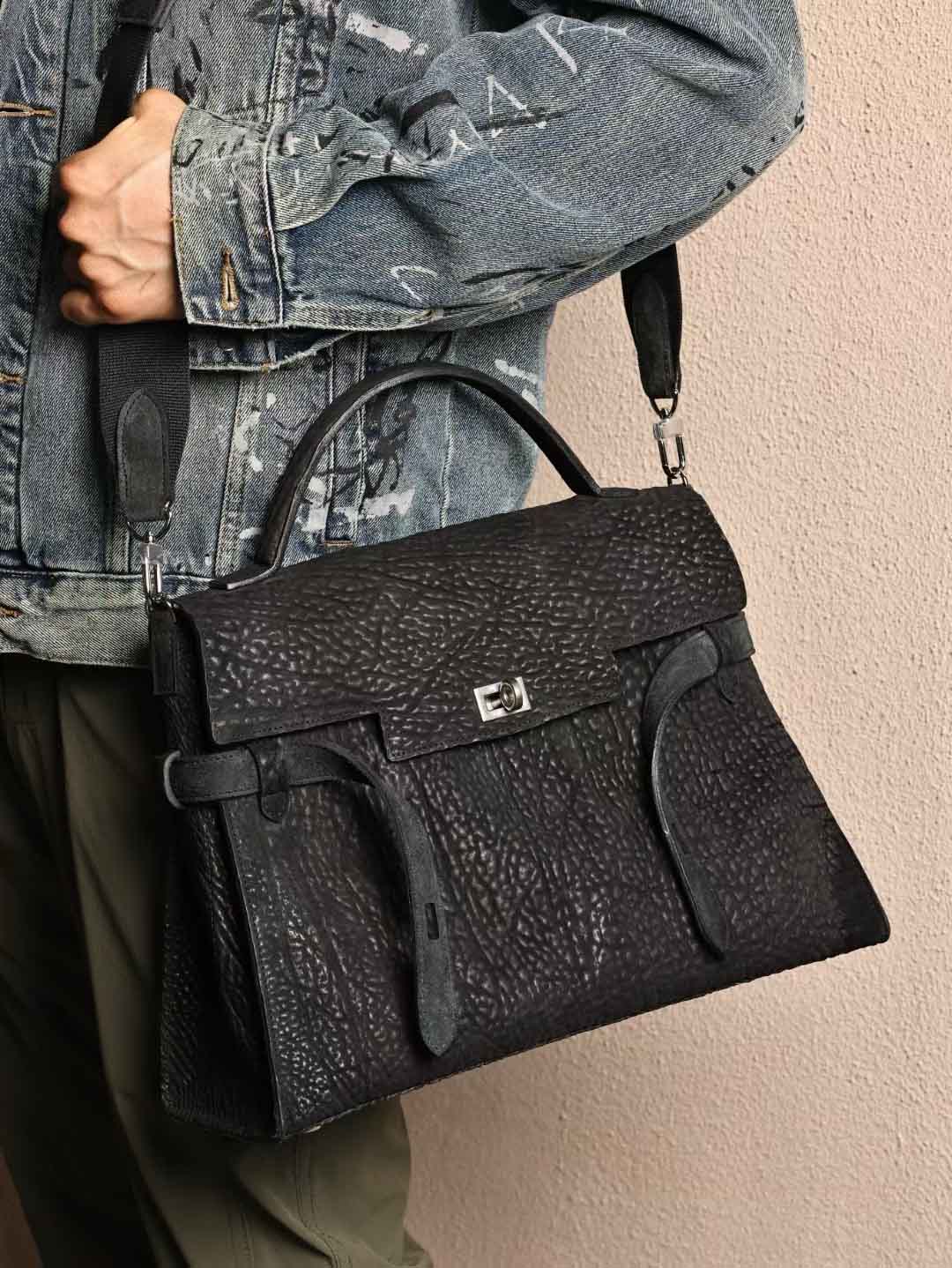 新款Tempete37休闲手提包,暗黑风水洗马臀皮,实拍现货。规格:37*26*13
