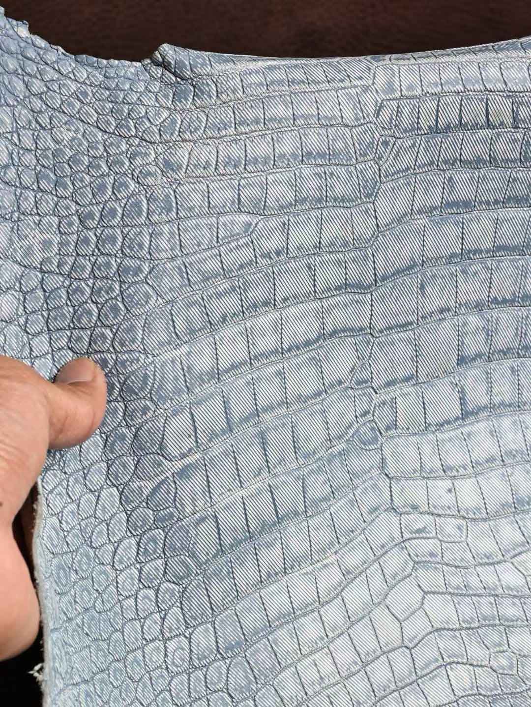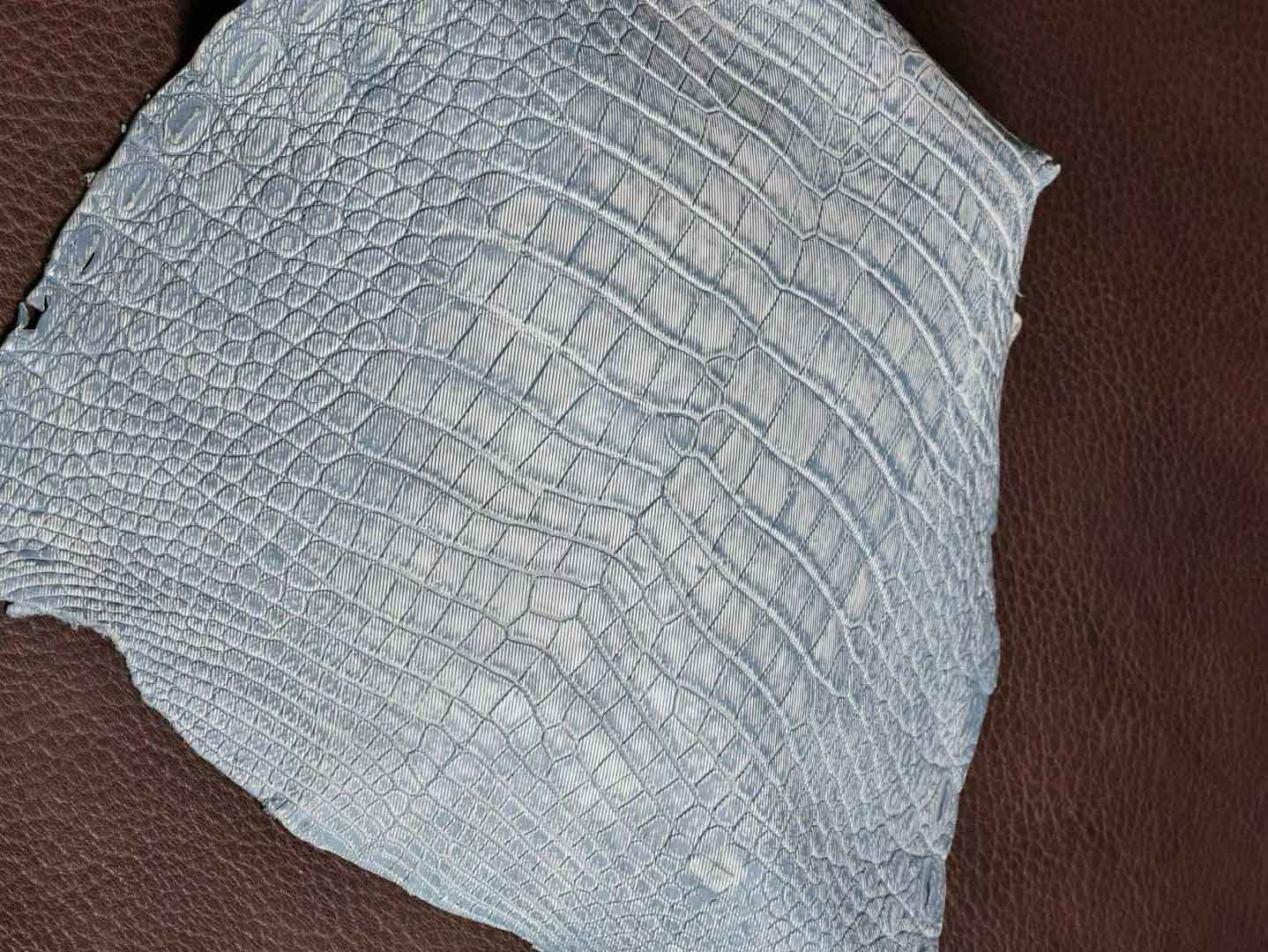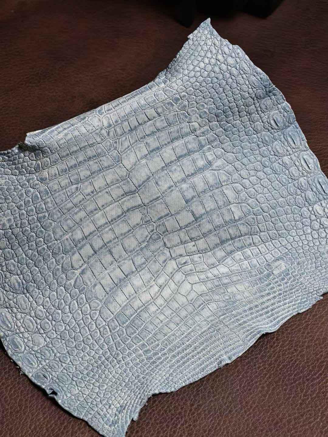 驴家新品材料研发,牛仔布纹呈现在鳄鱼皮上。
