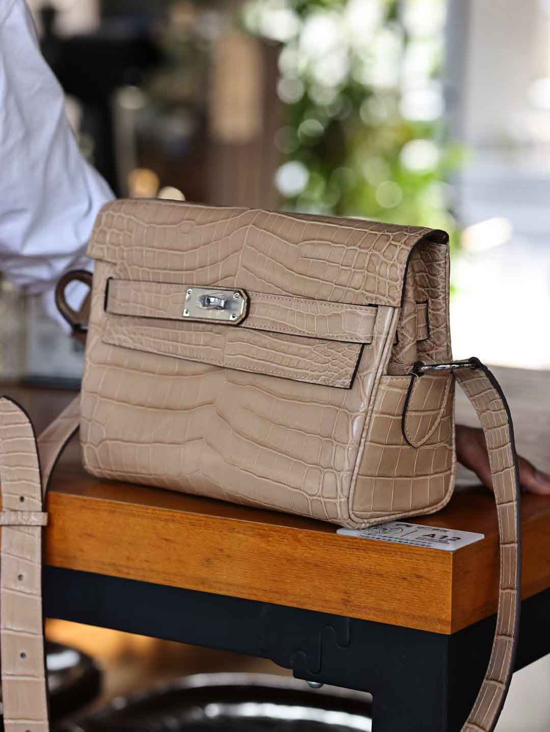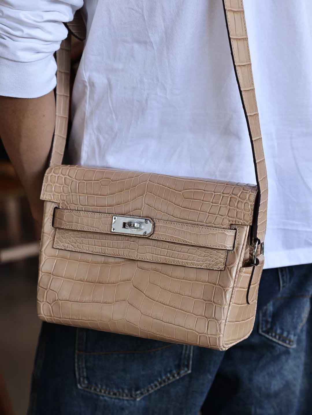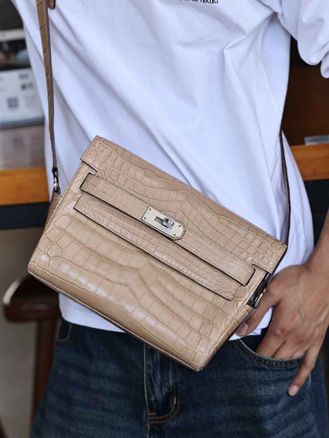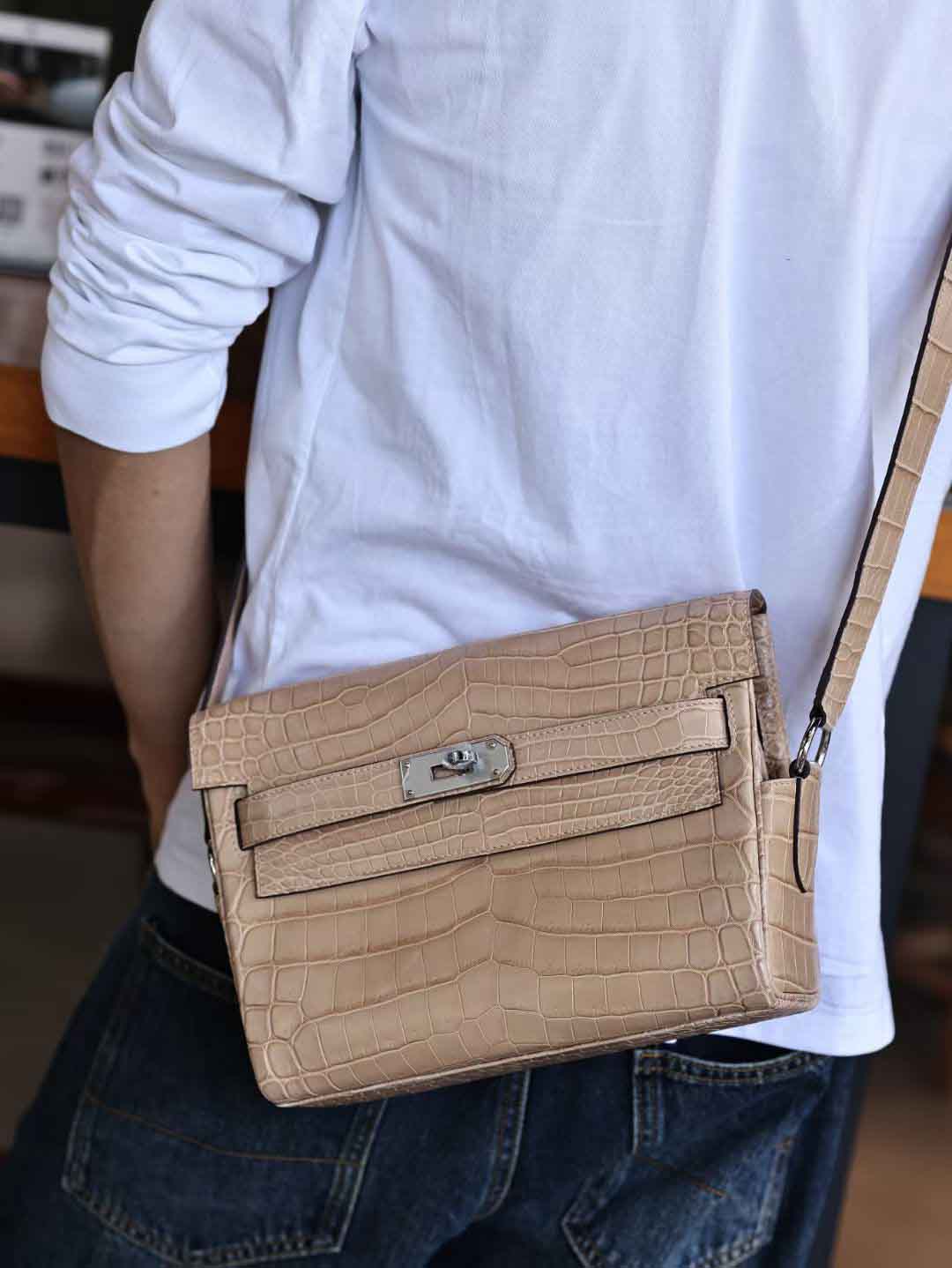Kelly Messenger小号邮差包,奶茶色HCP尼罗鳄,银扣实拍现货。
