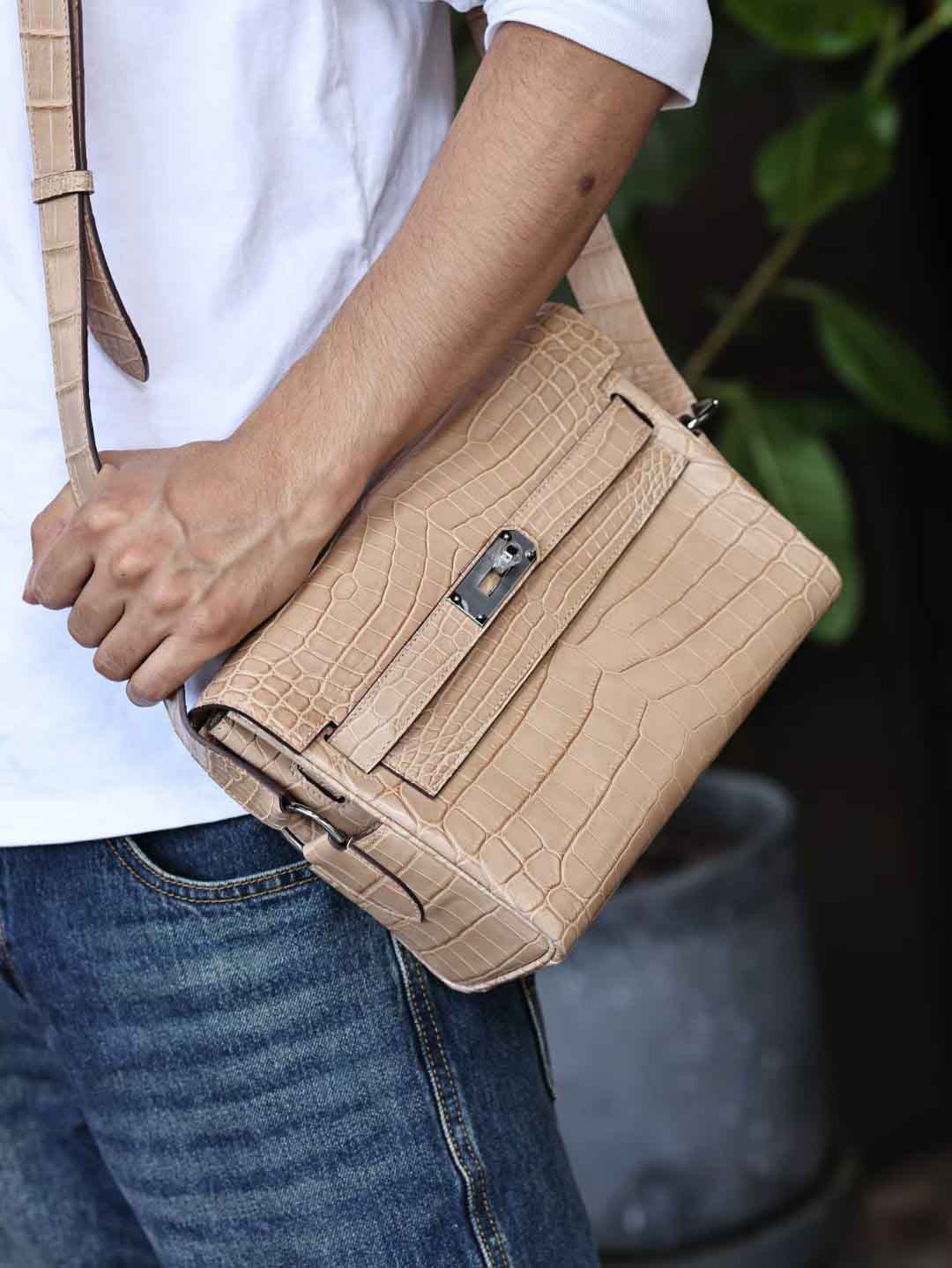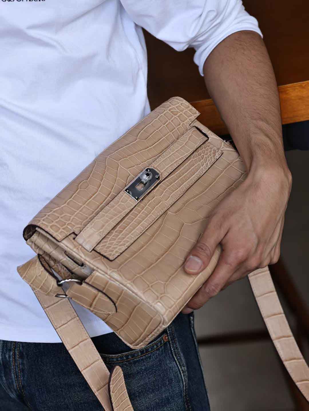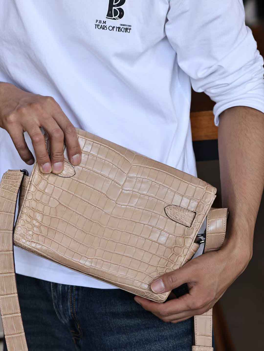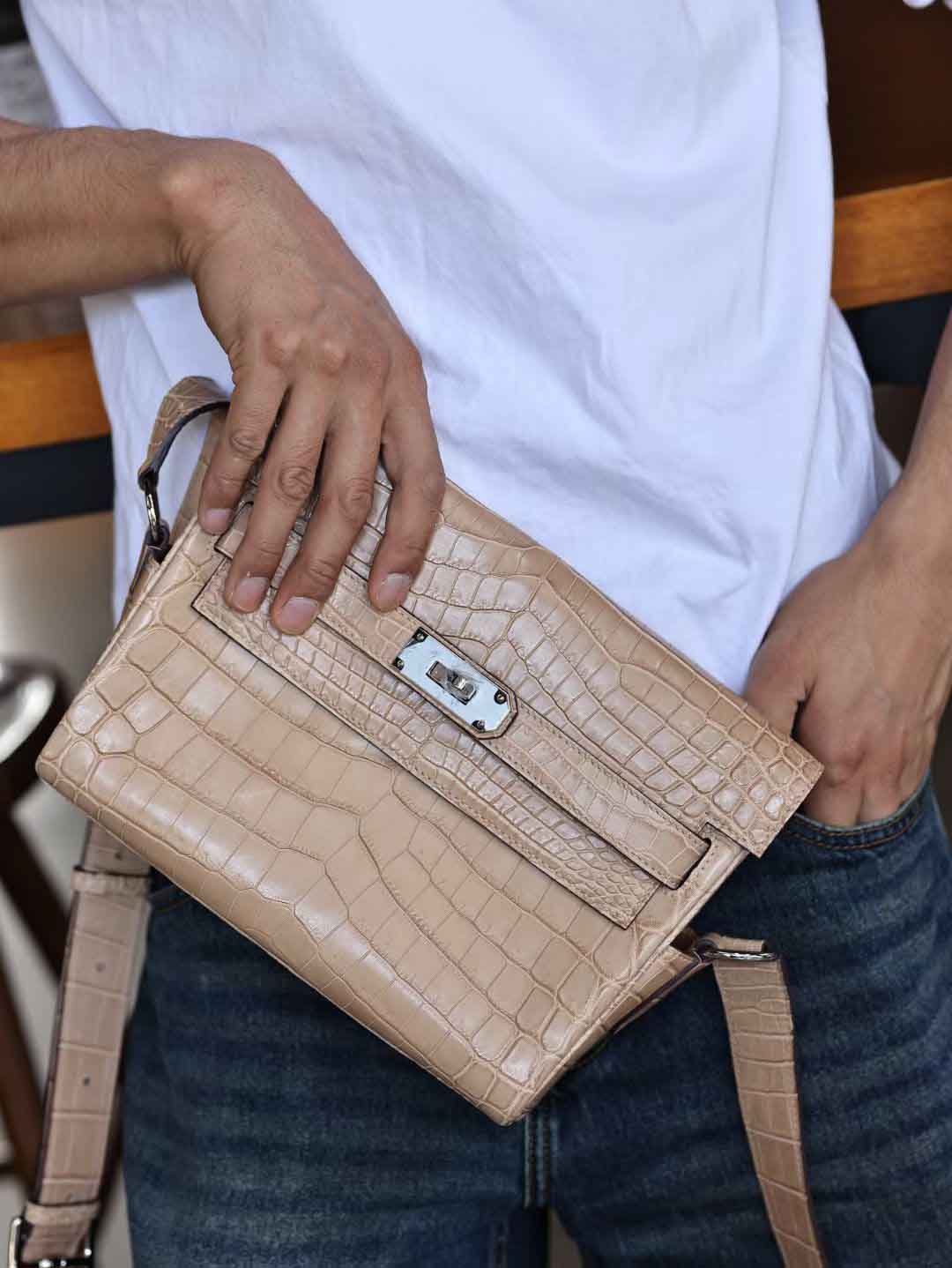 Kelly Messenger小号邮差包,奶茶色HCP尼罗鳄,银扣实拍现货。