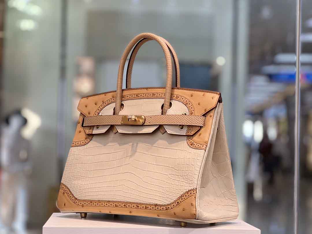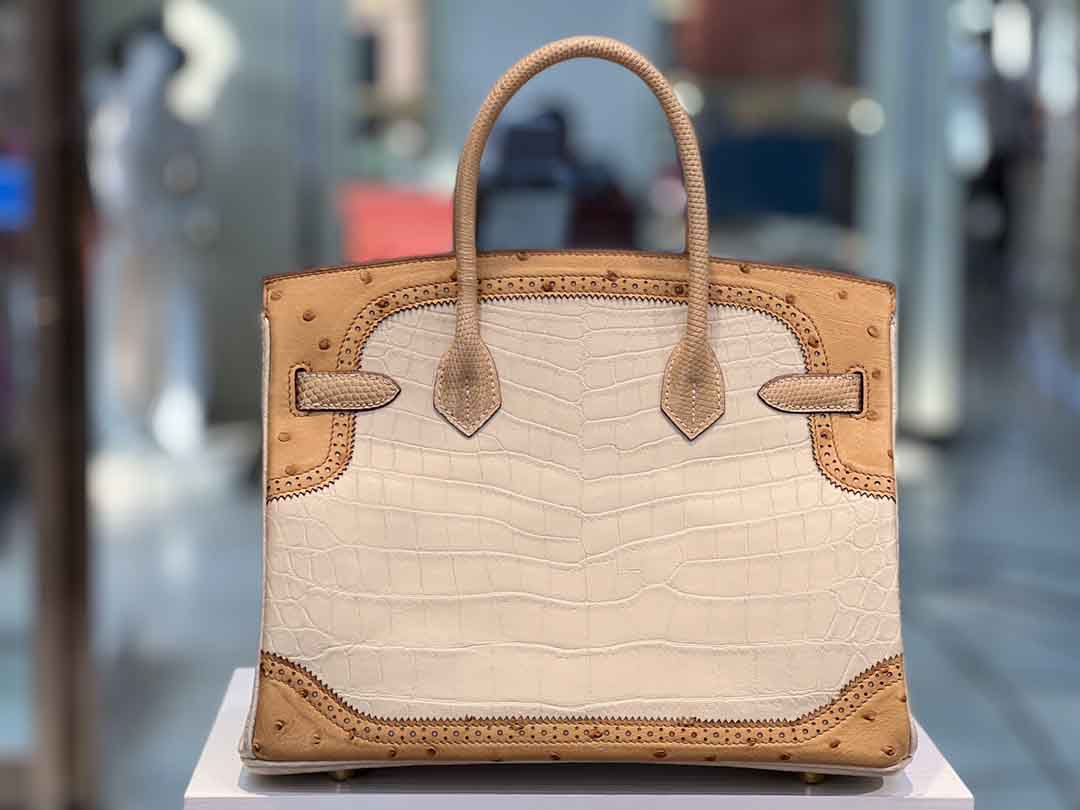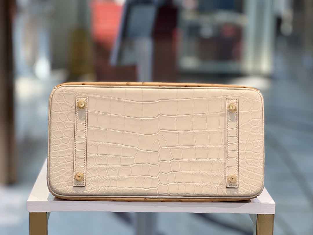 birkin30cm 蕾丝款 鳄鱼奶油白拼鸵鸟拼蜥蜴王品 现货